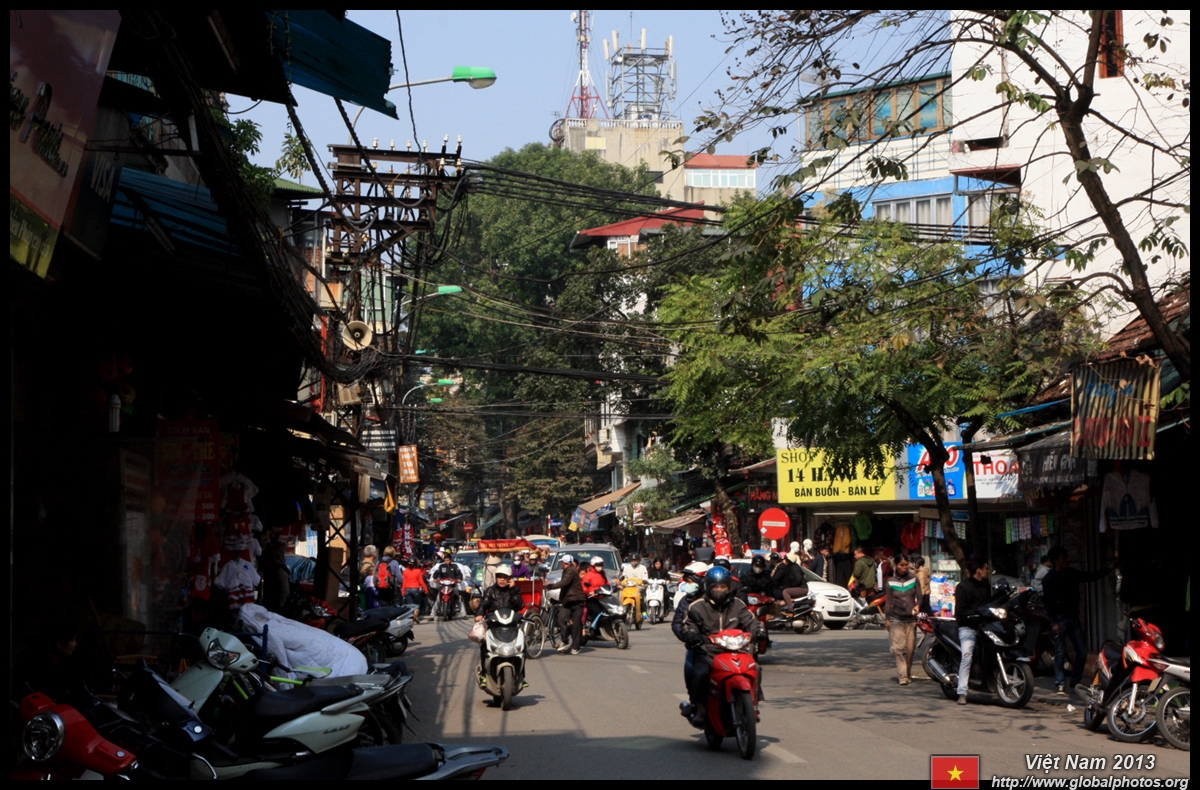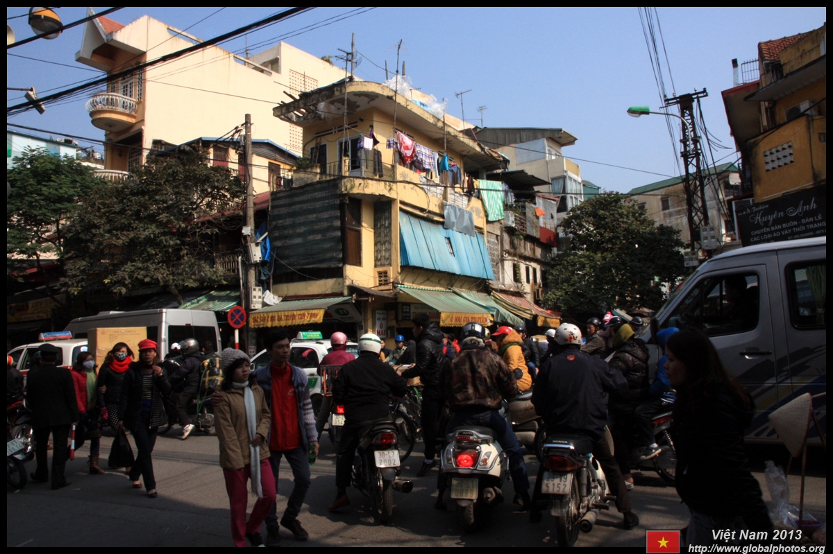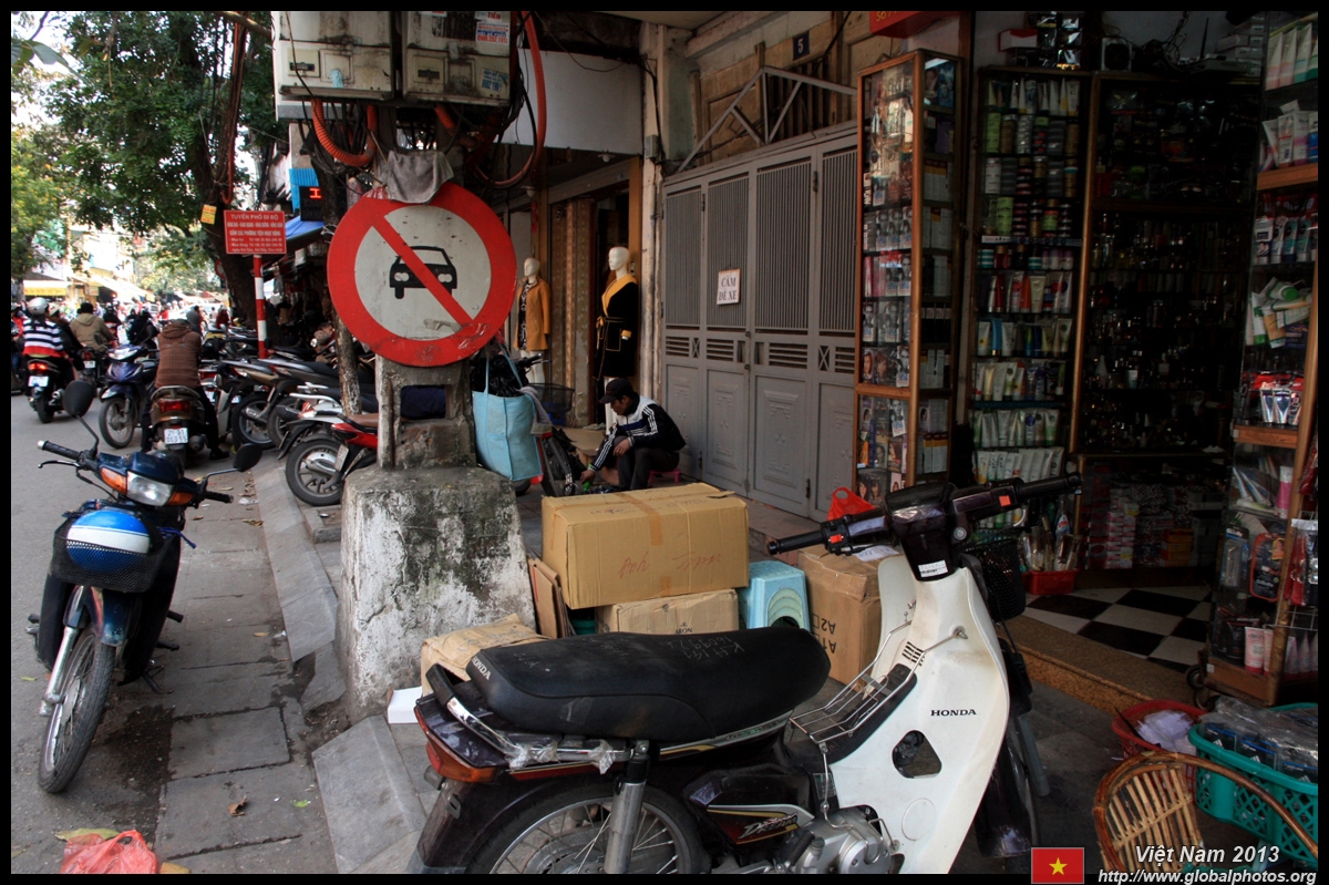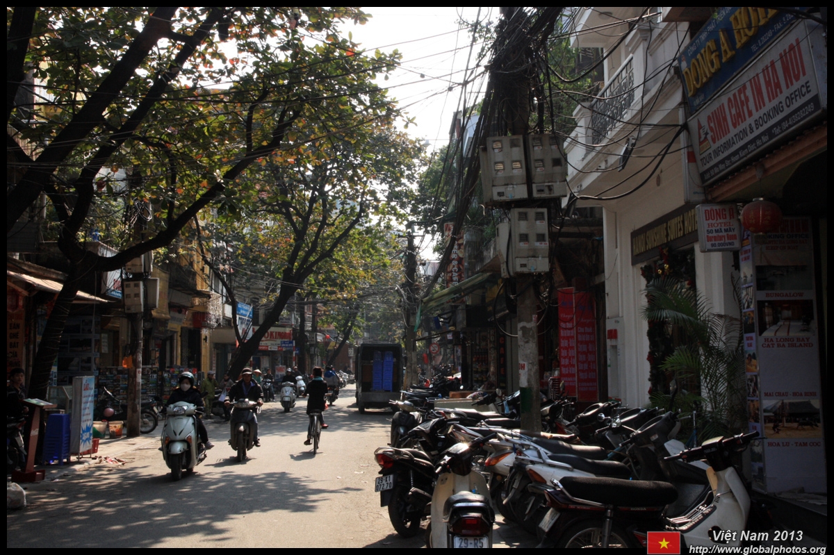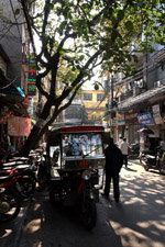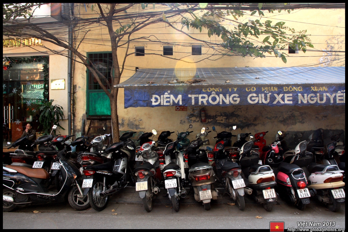 The area's streets are quite narrow, so riding a motorcycle seems sensible. For pedestrians, weaving through the traffic is quite a stressful experience.