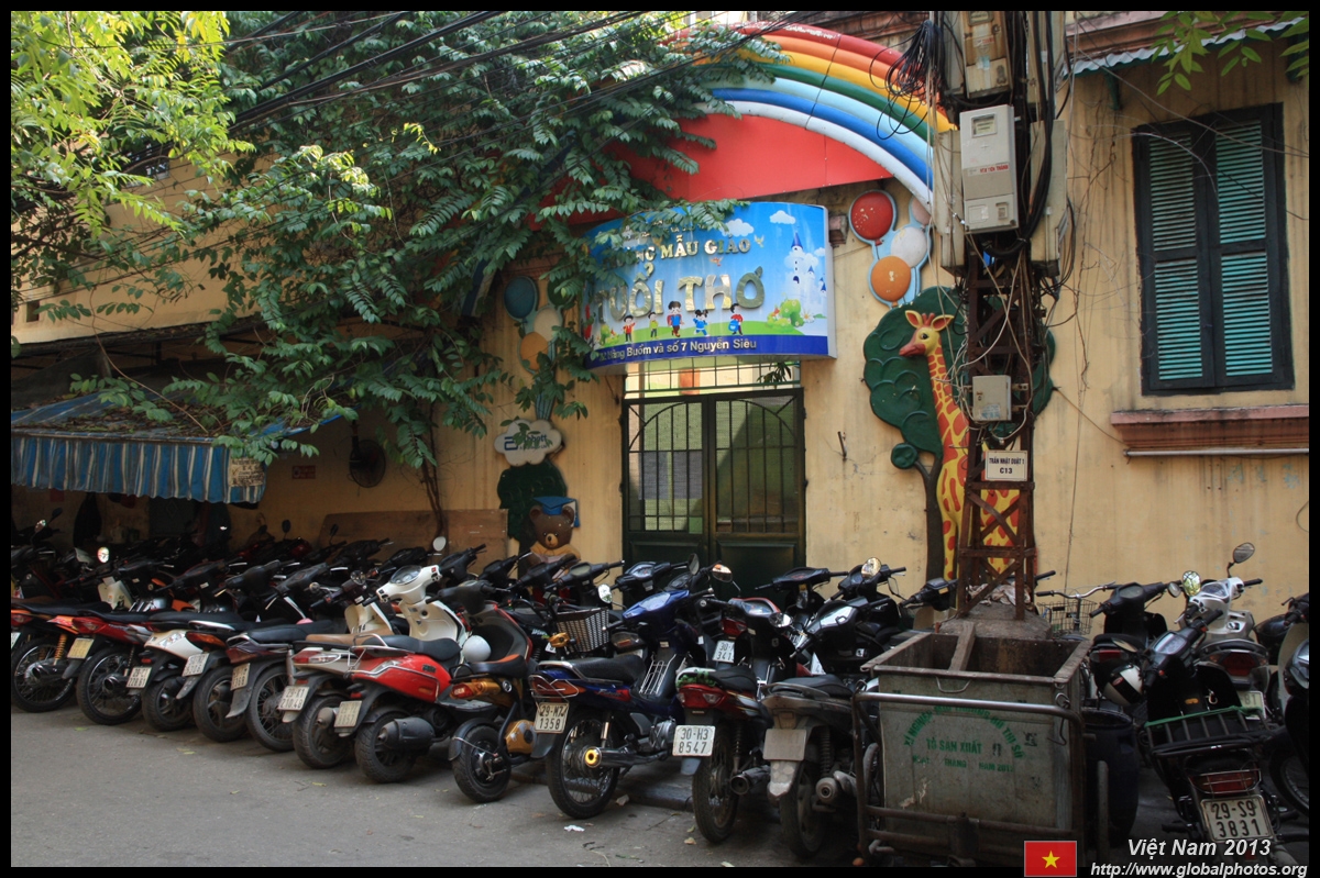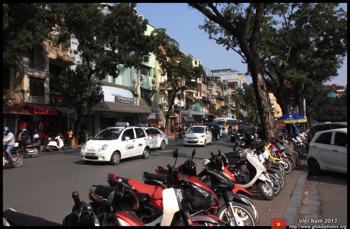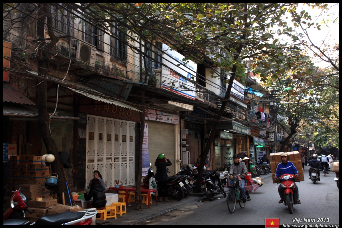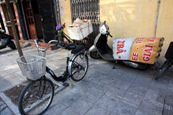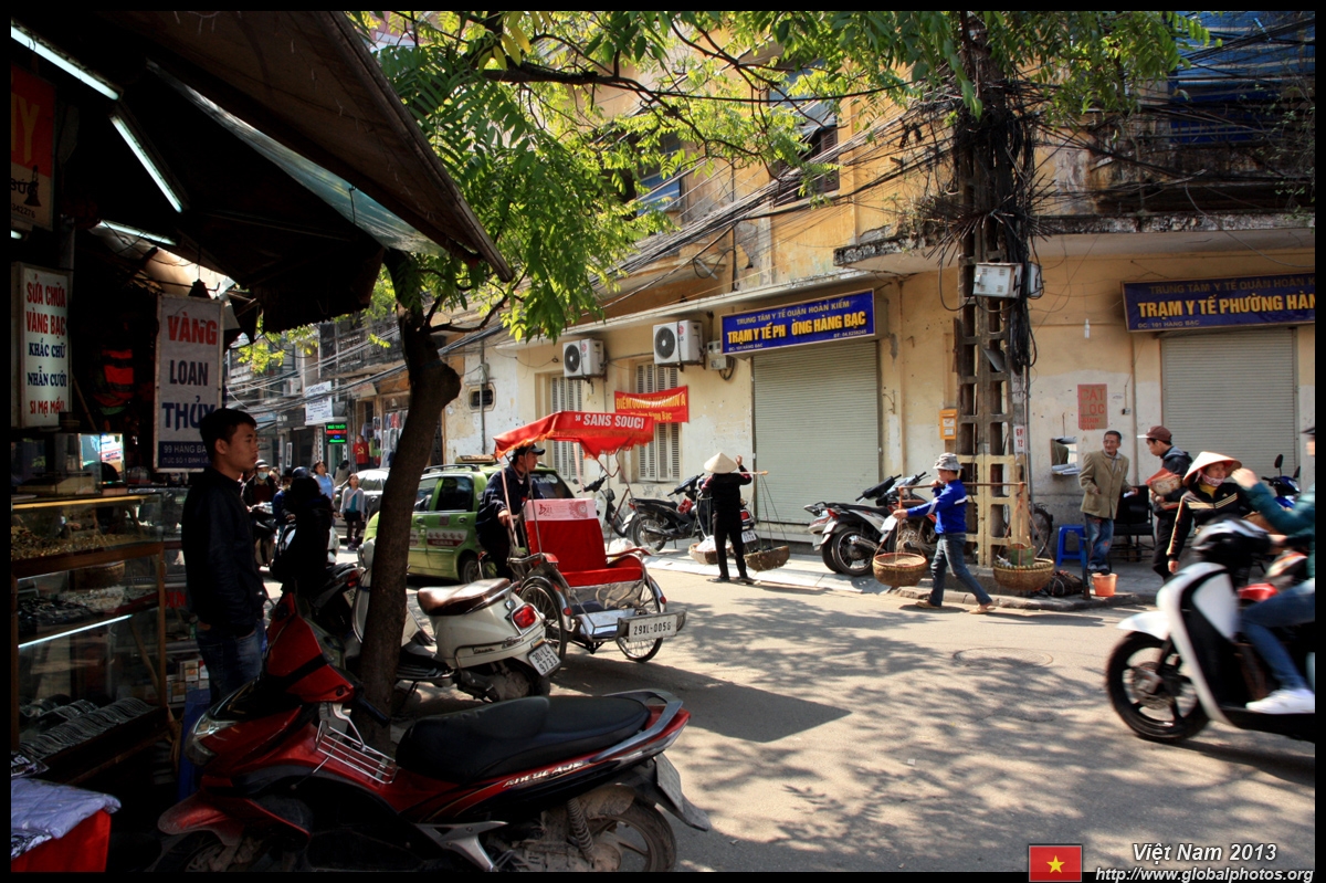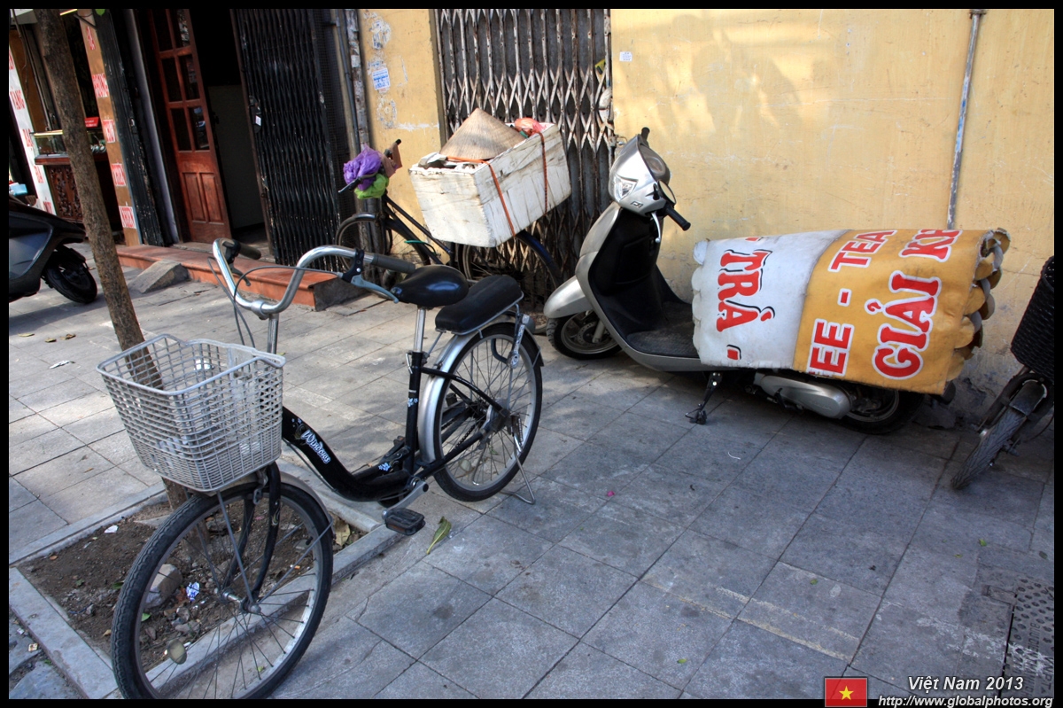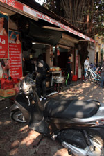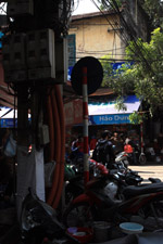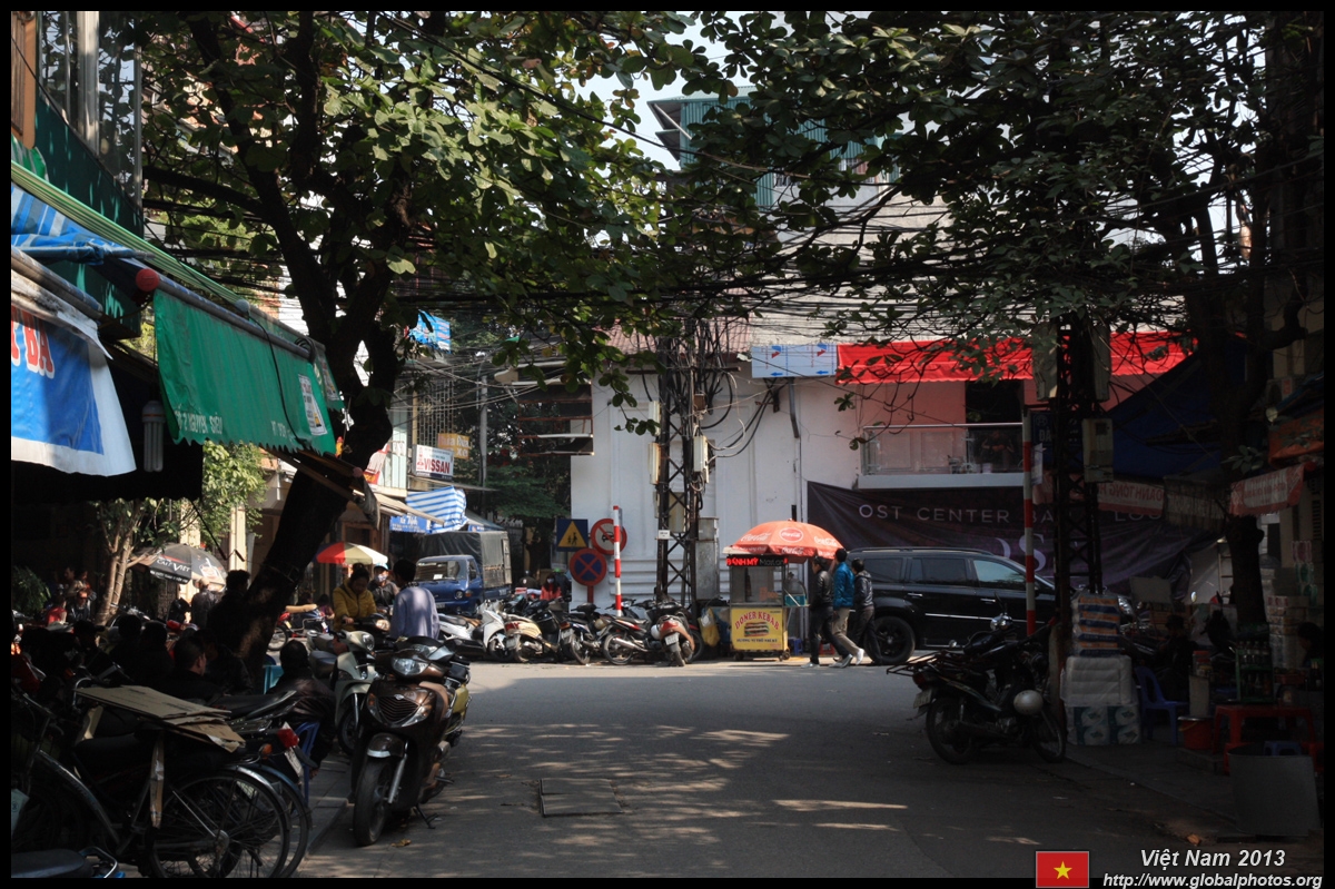 The area's streets are quite narrow, so riding a motorcycle seems sensible. For pedestrians, weaving through the traffic is quite a stressful experience.