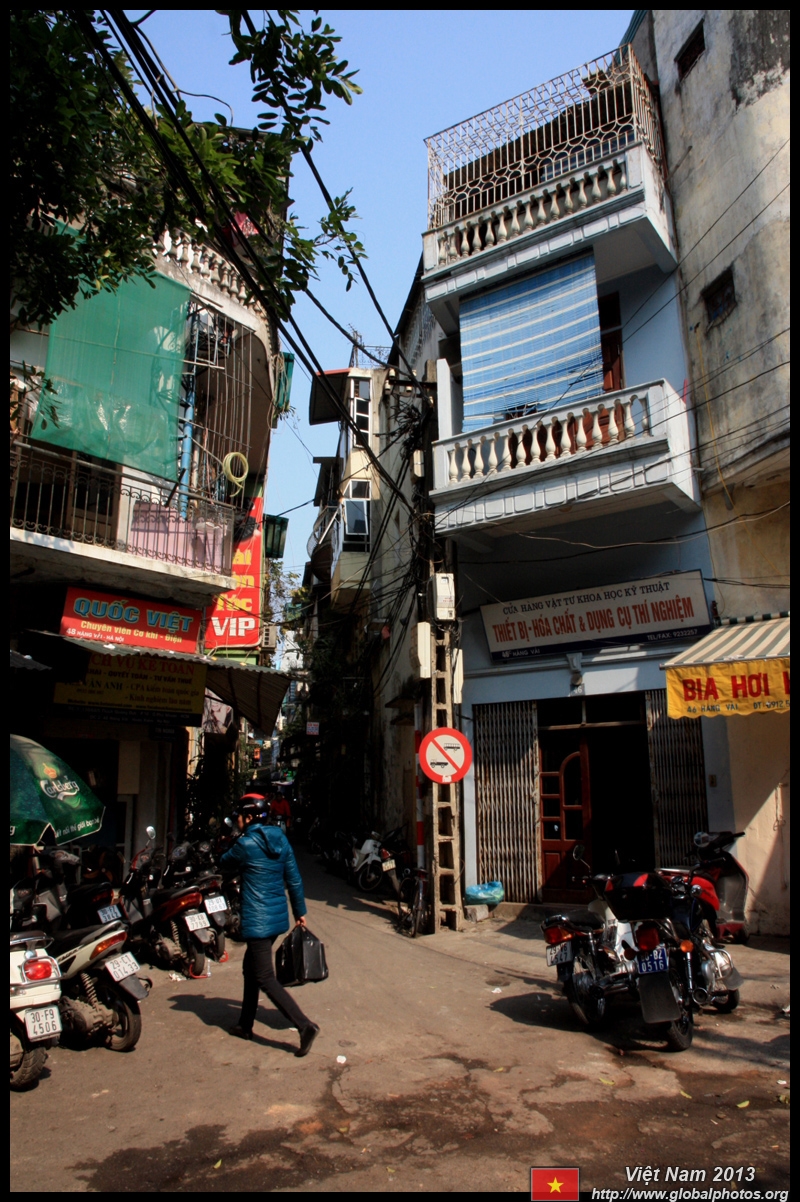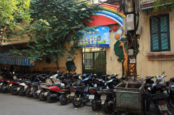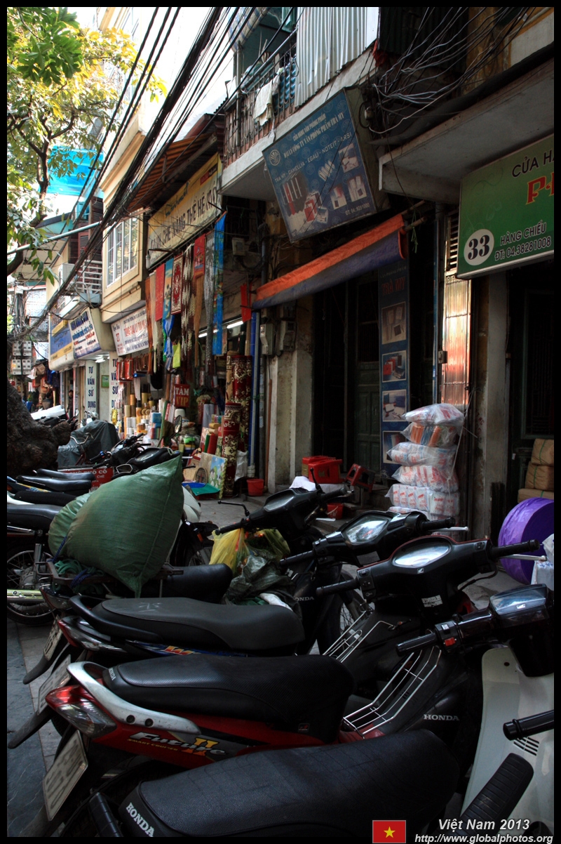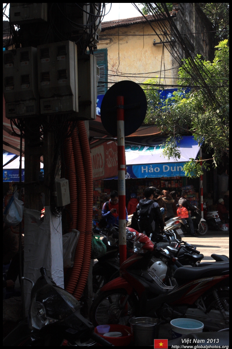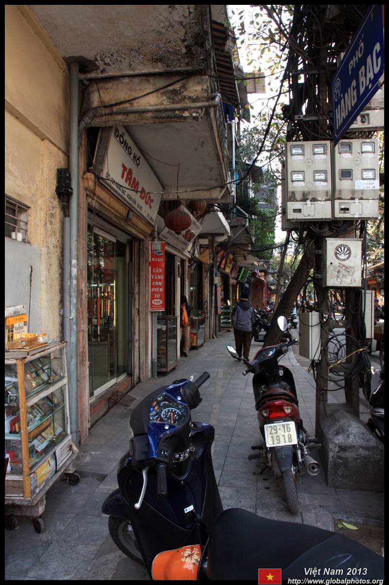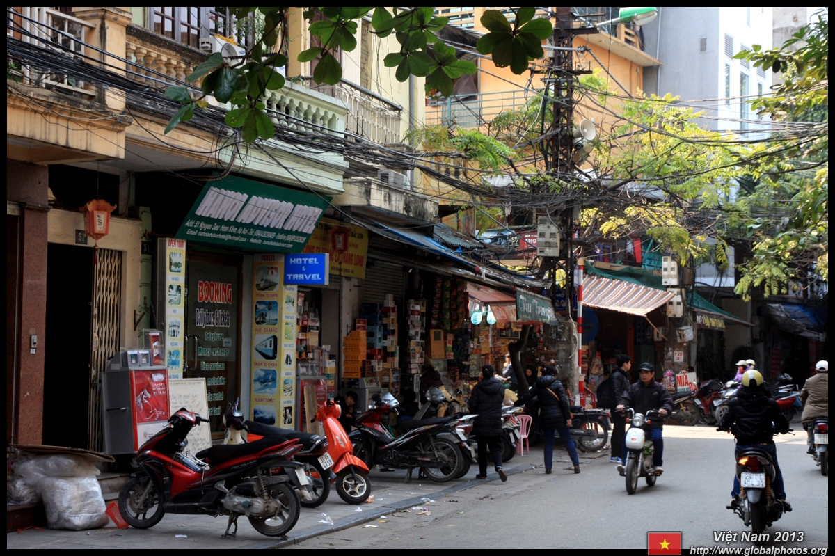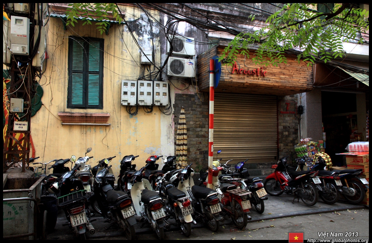 The area's streets are quite narrow, so riding a motorcycle seems sensible. For pedestrians, weaving through the traffic is quite a stressful experience.
