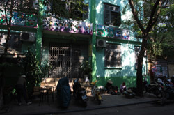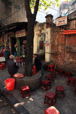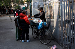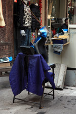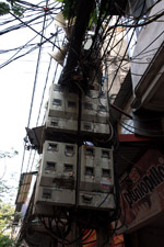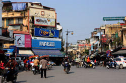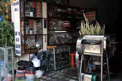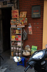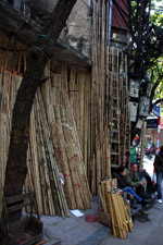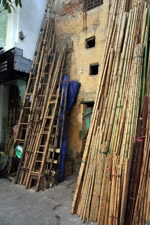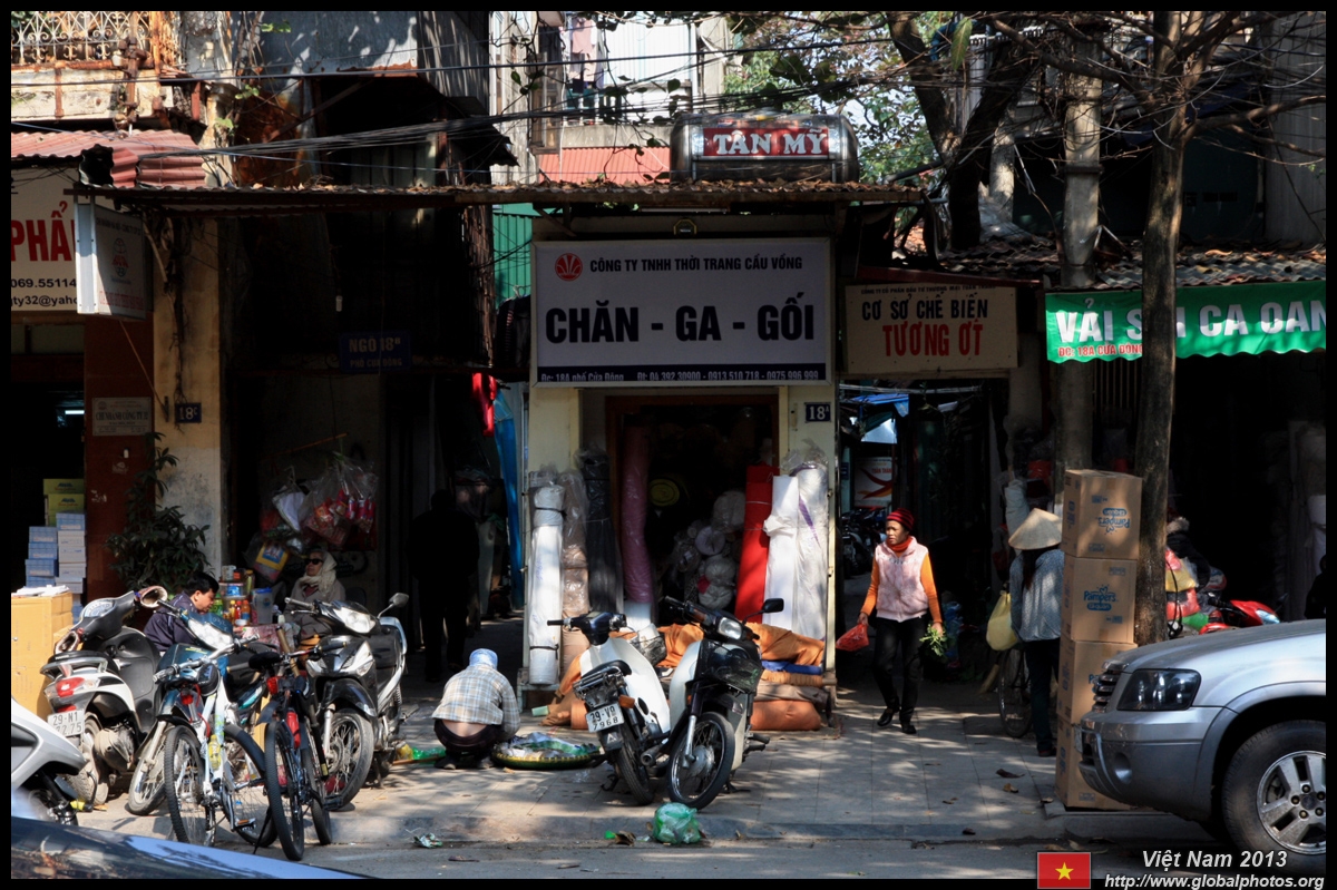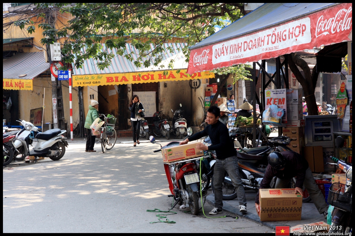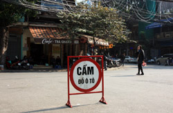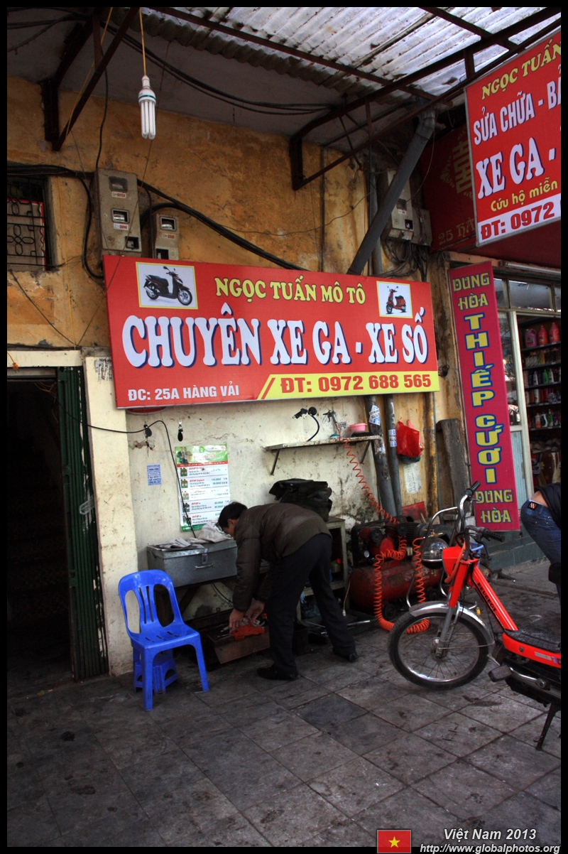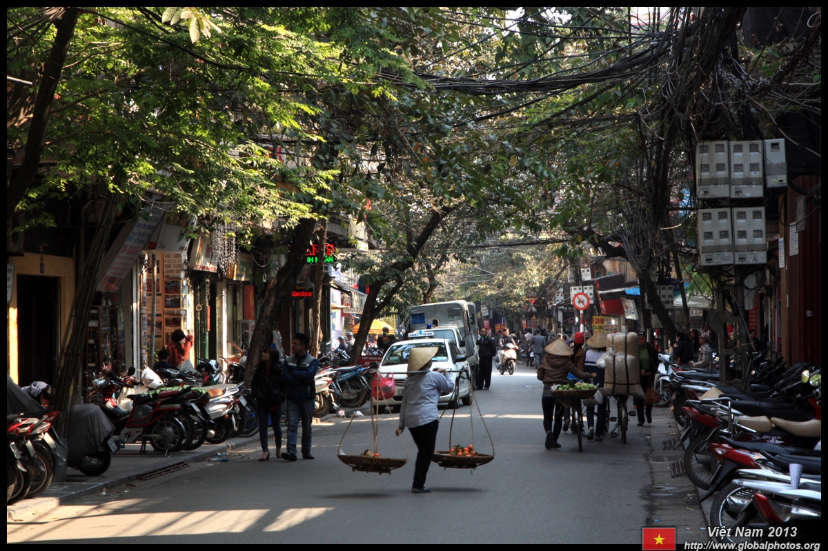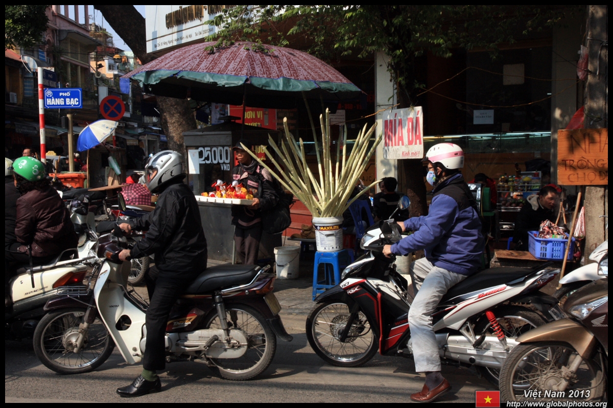 The area's streets are quite narrow, so riding a motorcycle seems sensible. For pedestrians, weaving through the traffic is quite a stressful experience.