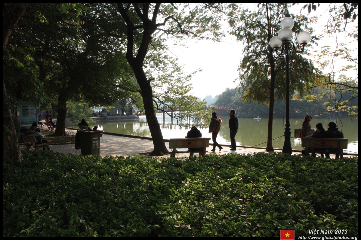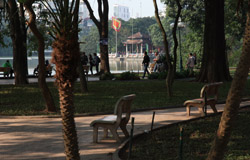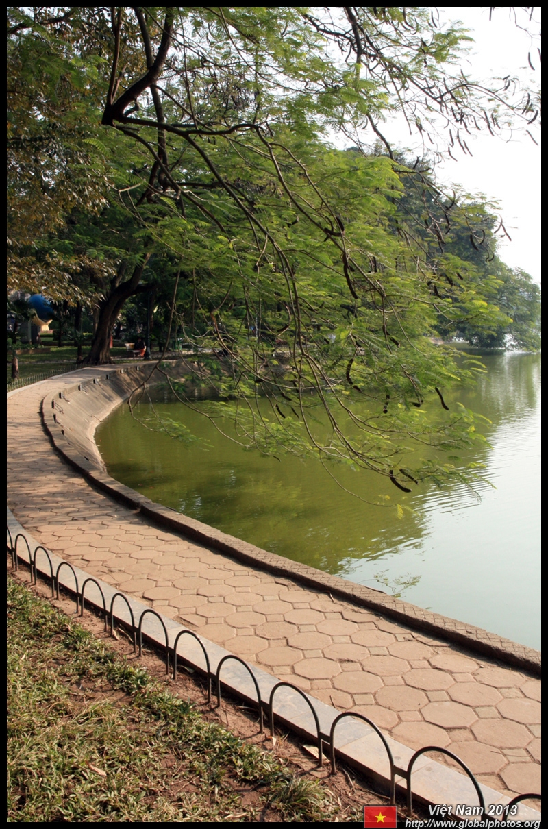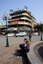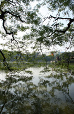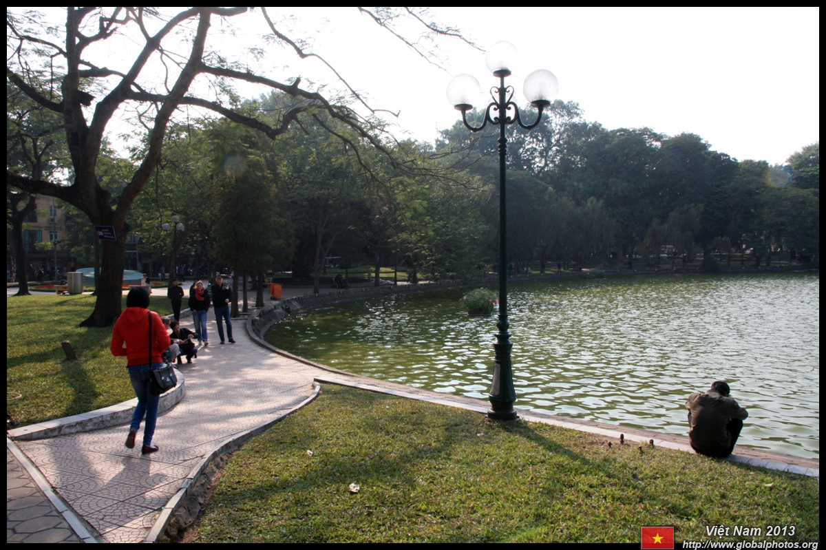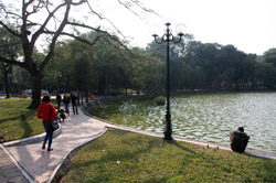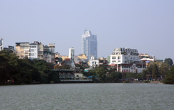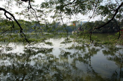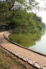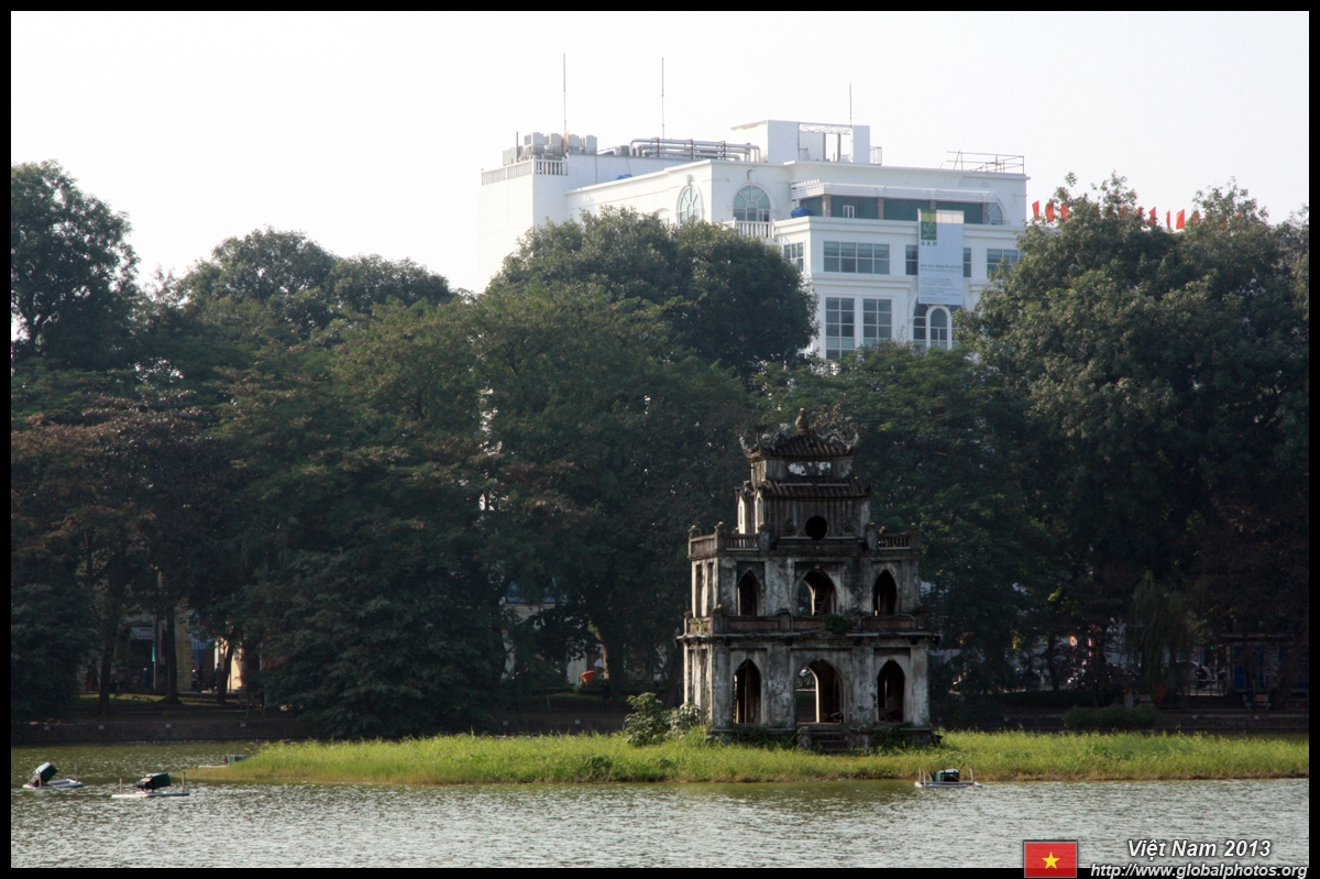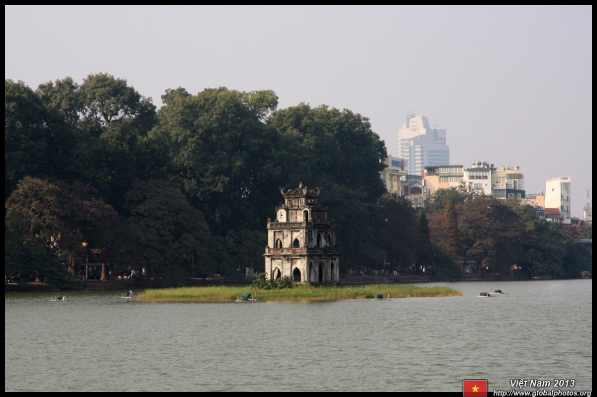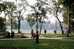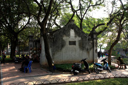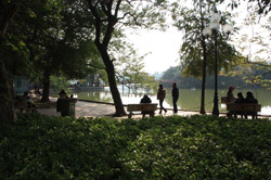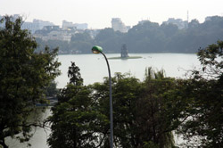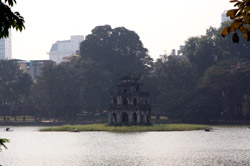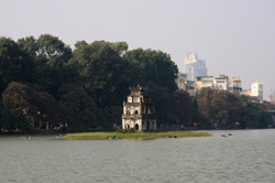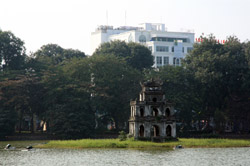 Hoan Kiem Lake is a major landmark in the Old Quarter. Turtle Tower is a bit lonely on its own island in the middle of the lake.