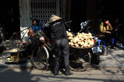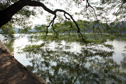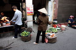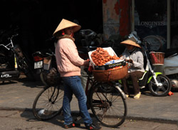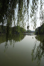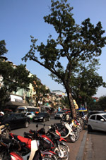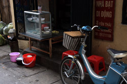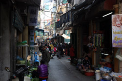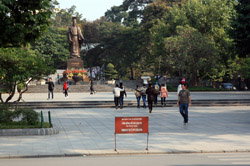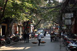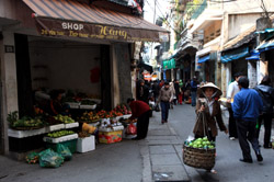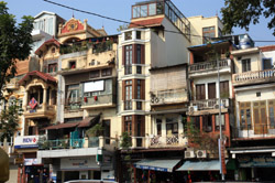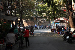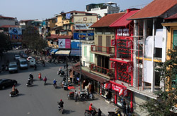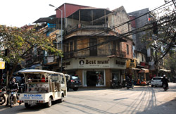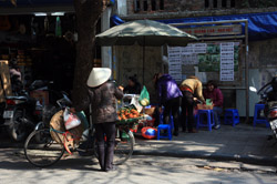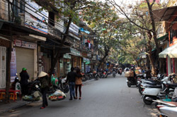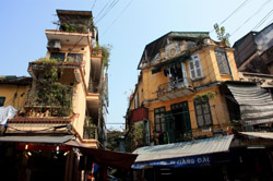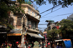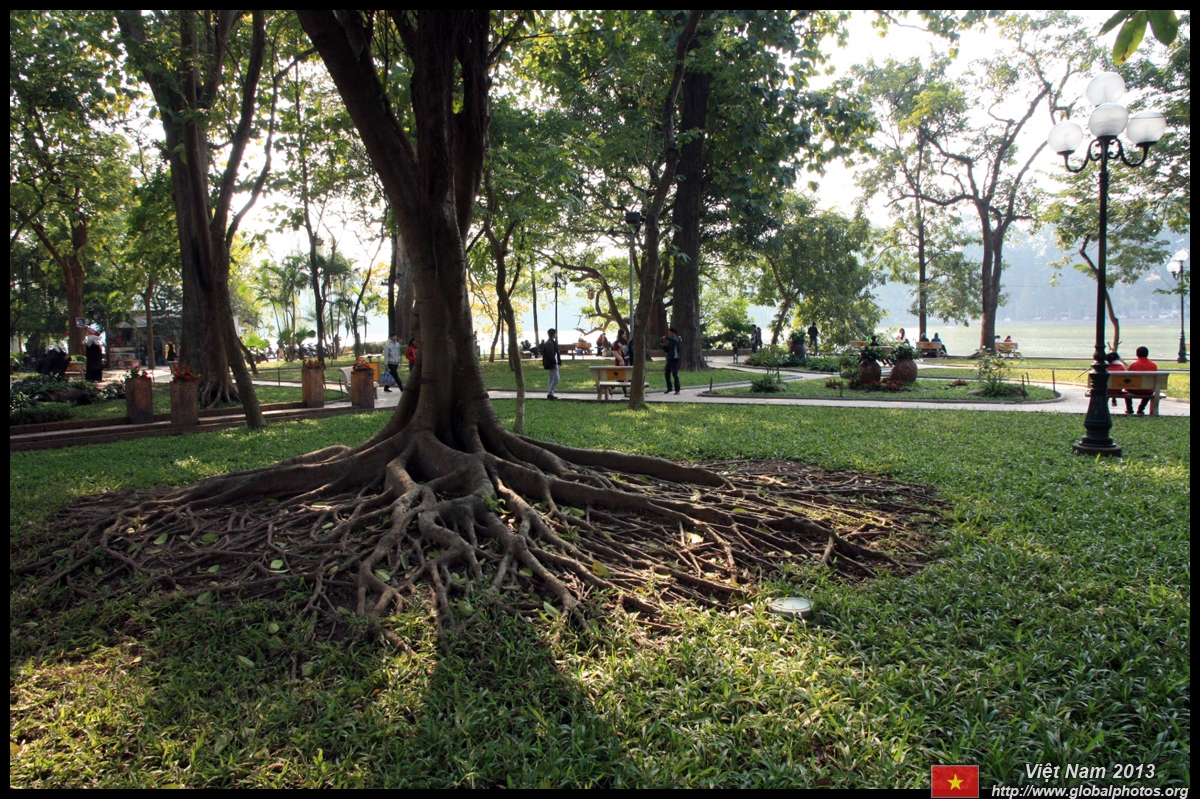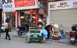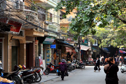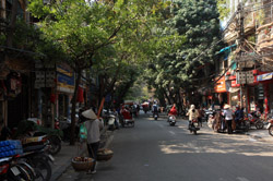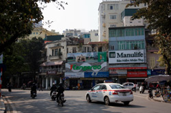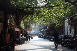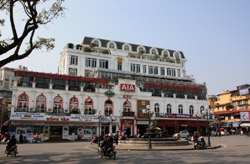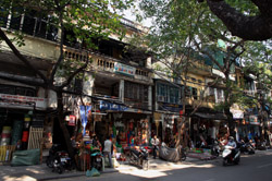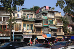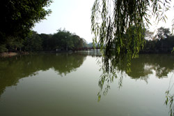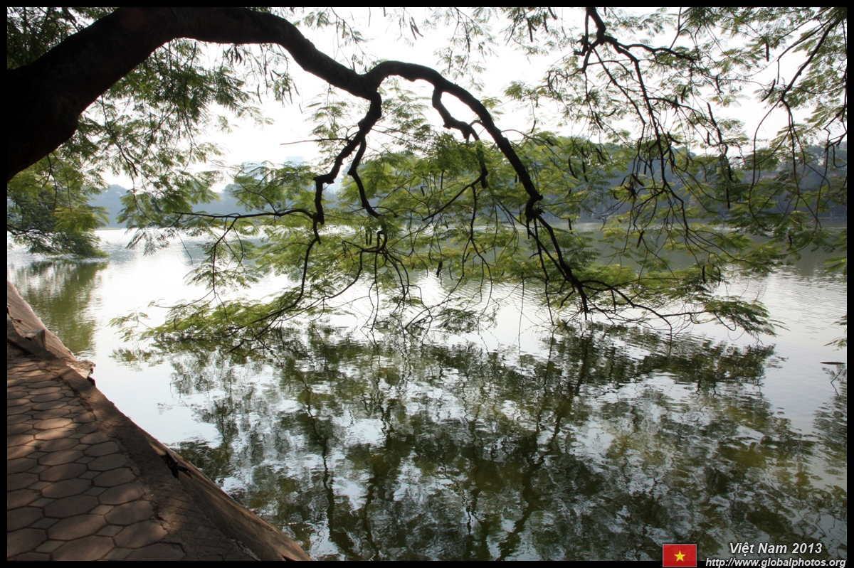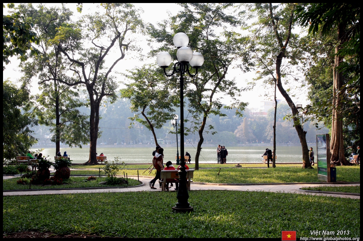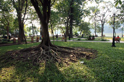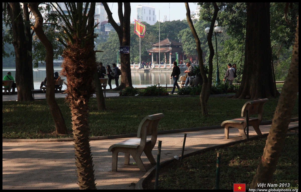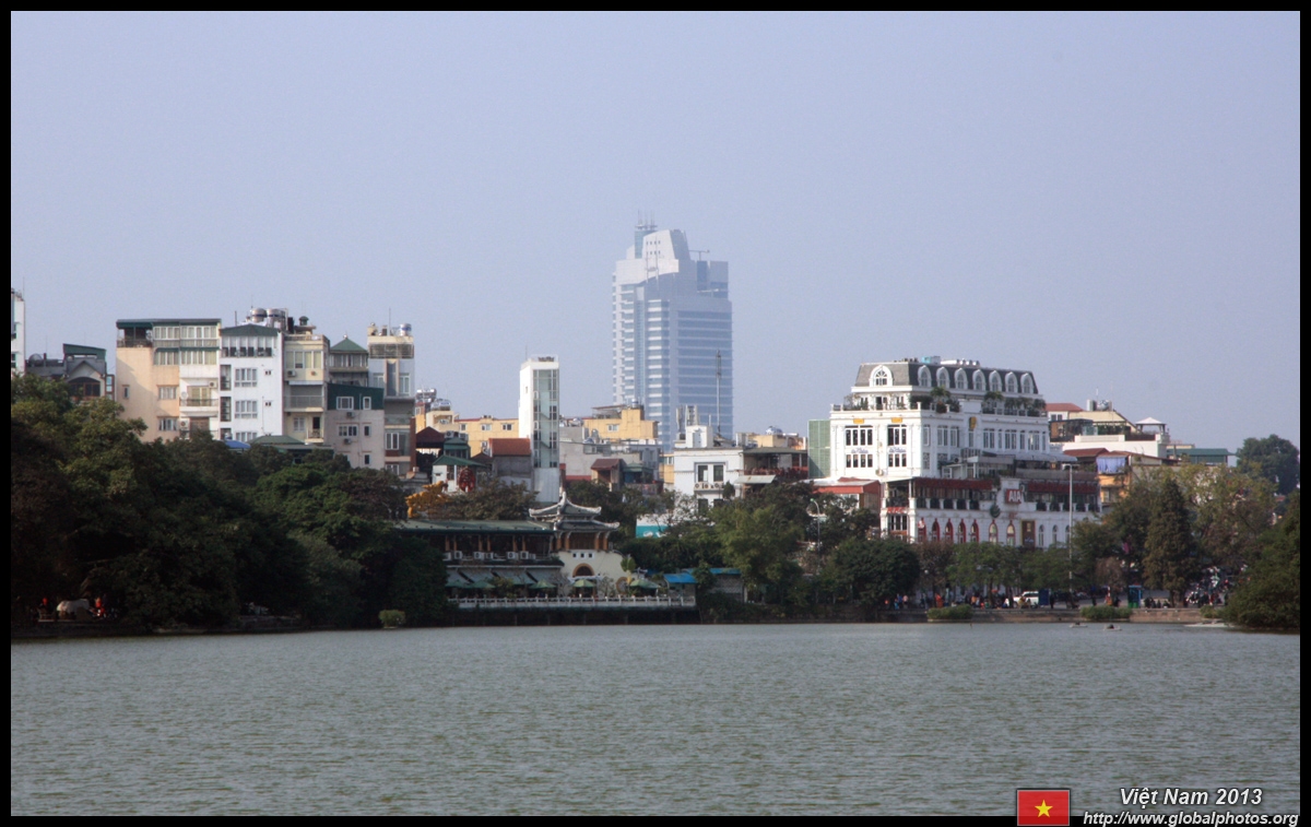 Hoan Kiem Lake is a major landmark in the Old Quarter. Turtle Tower is a bit lonely on its own island in the middle of the lake.