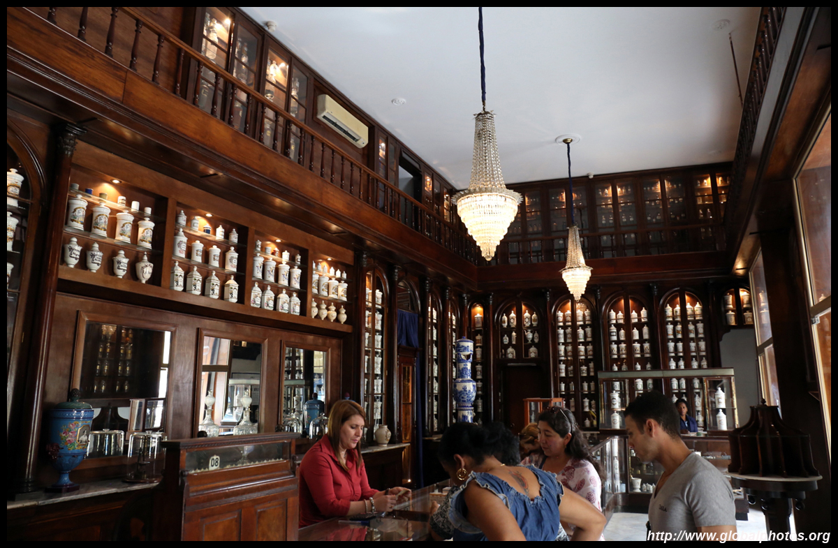 Several beautiful pharmacies dot the streets, with 2 on Obispo, the city's main shopping street. Drogueria Johnson was founded in 1886 and moved to the present location on Obispo in 1914. What we see today is a restoration after a devastating fire in 2006.