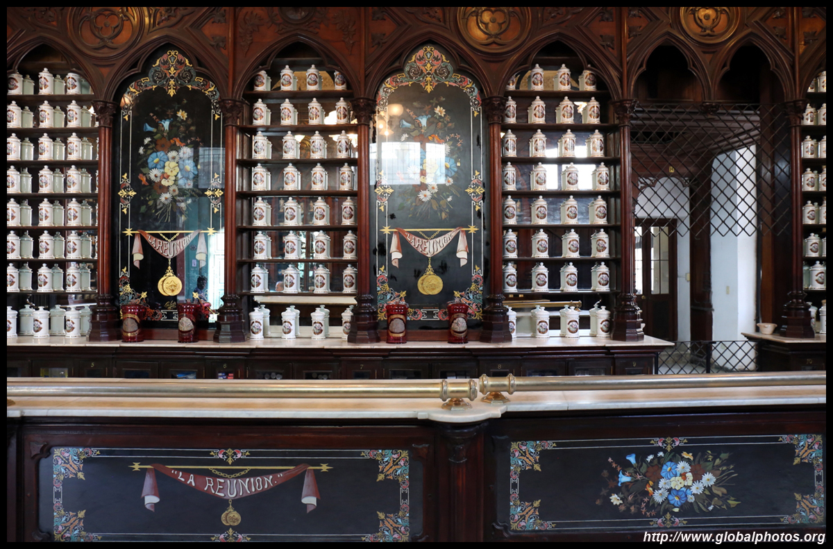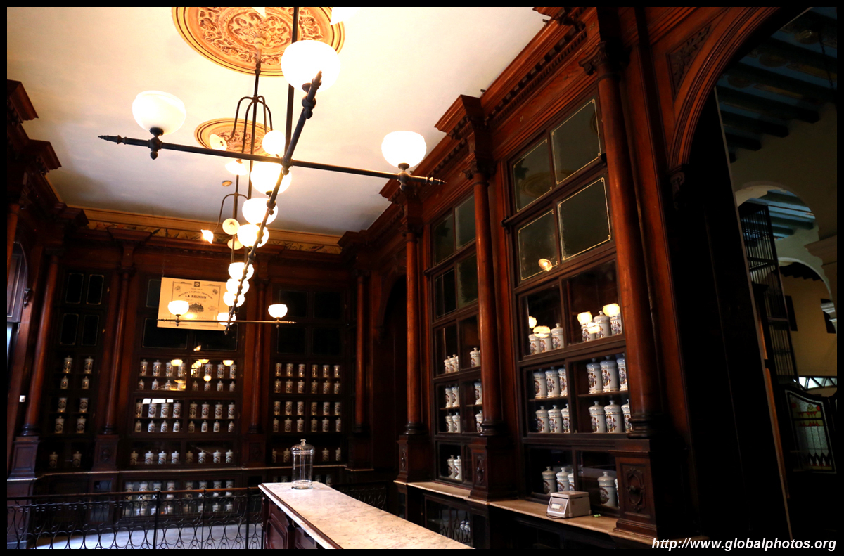 Not that far away is the next beautiful pharmacy in traditional decor. Farmacia Taquechel was founded in 1898 and was restored in 1996.