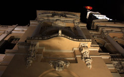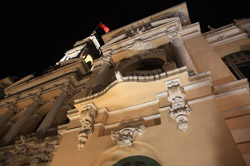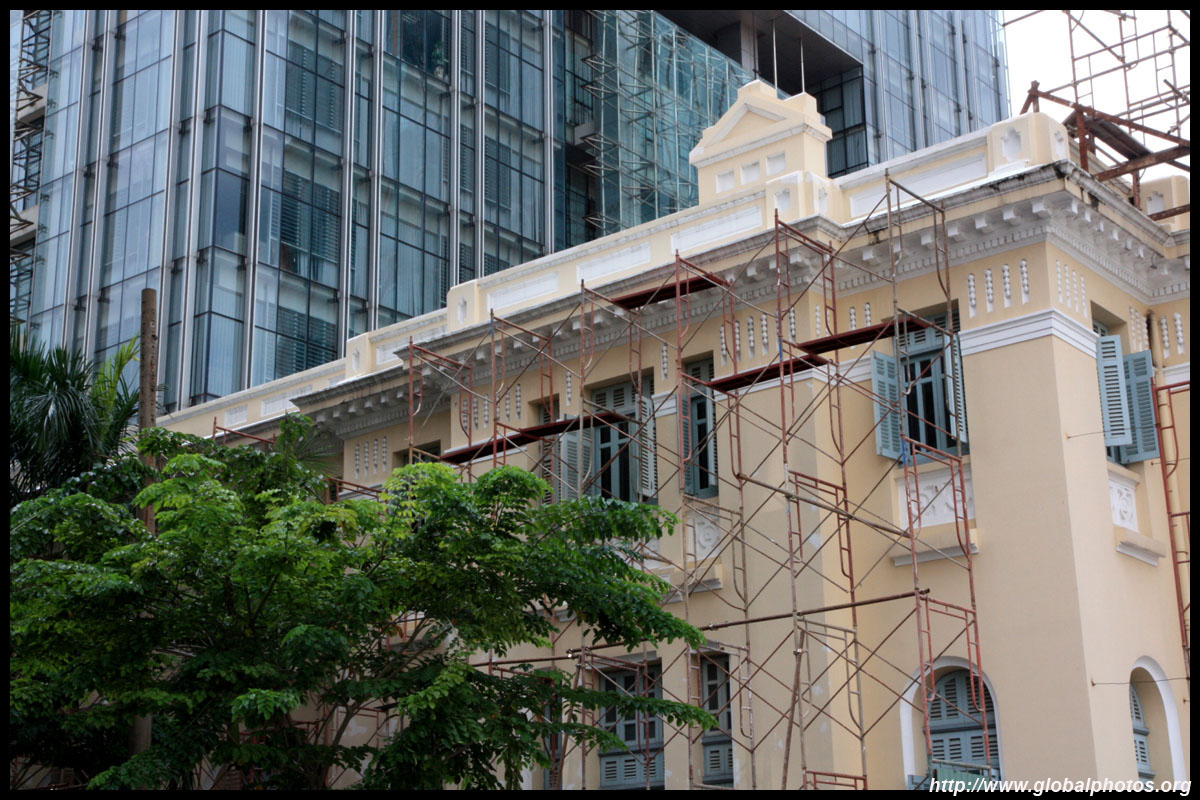 City Hall was previously a hotel completed in 1908. The public space outside is currently cordoned off as construction for the metro continues. |