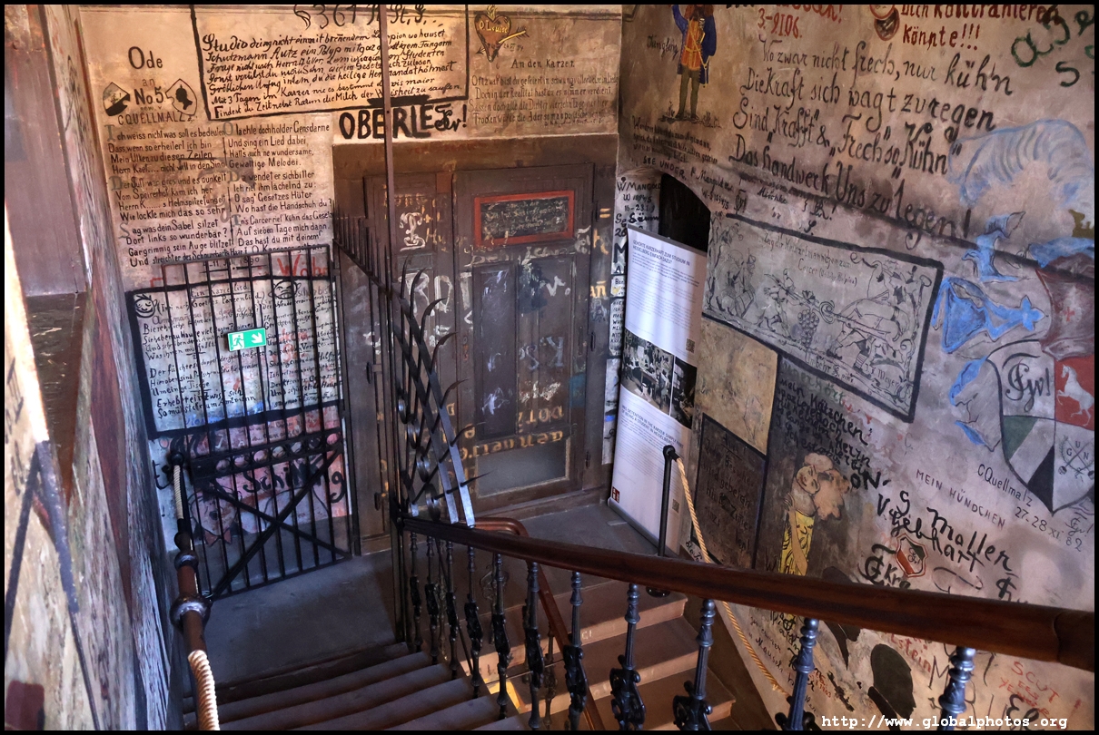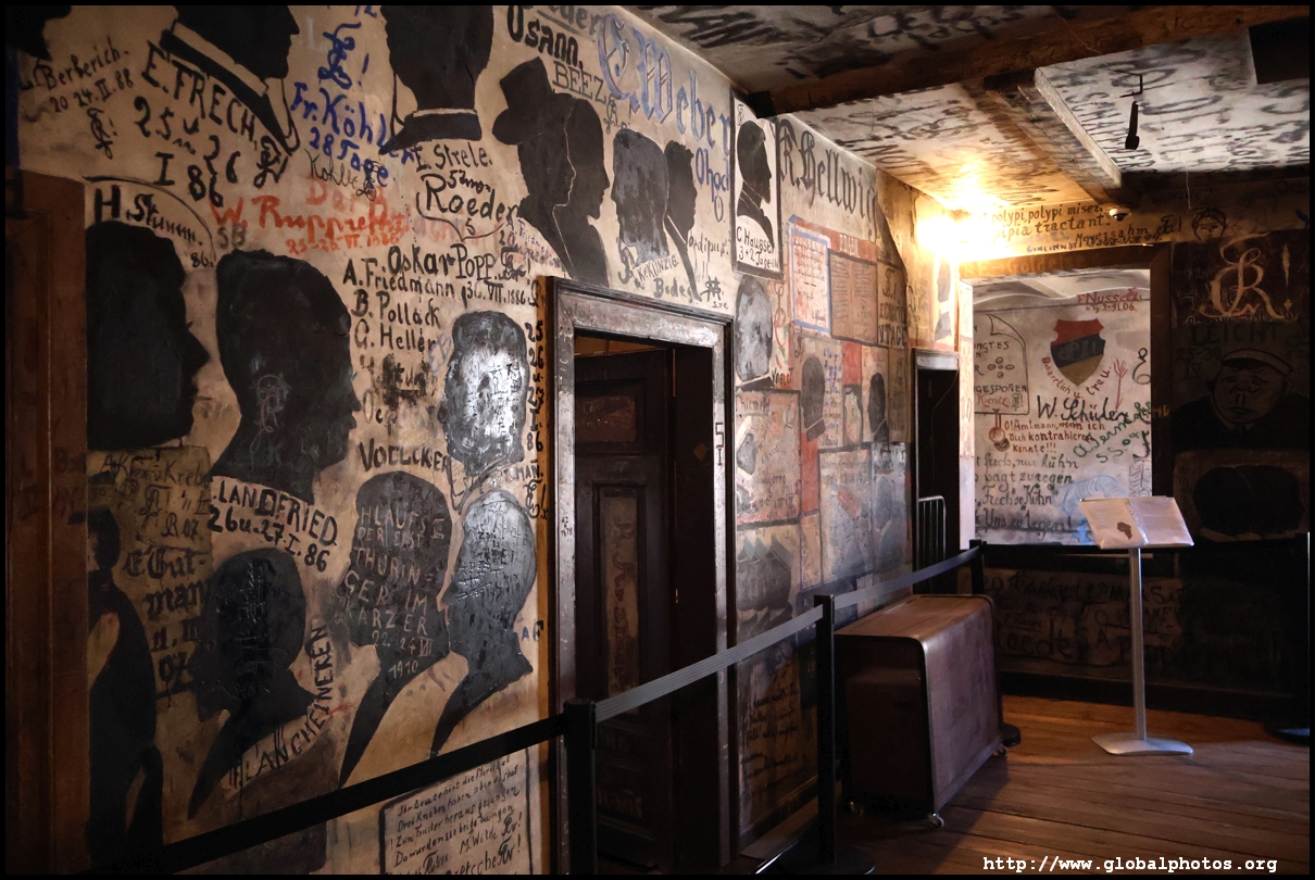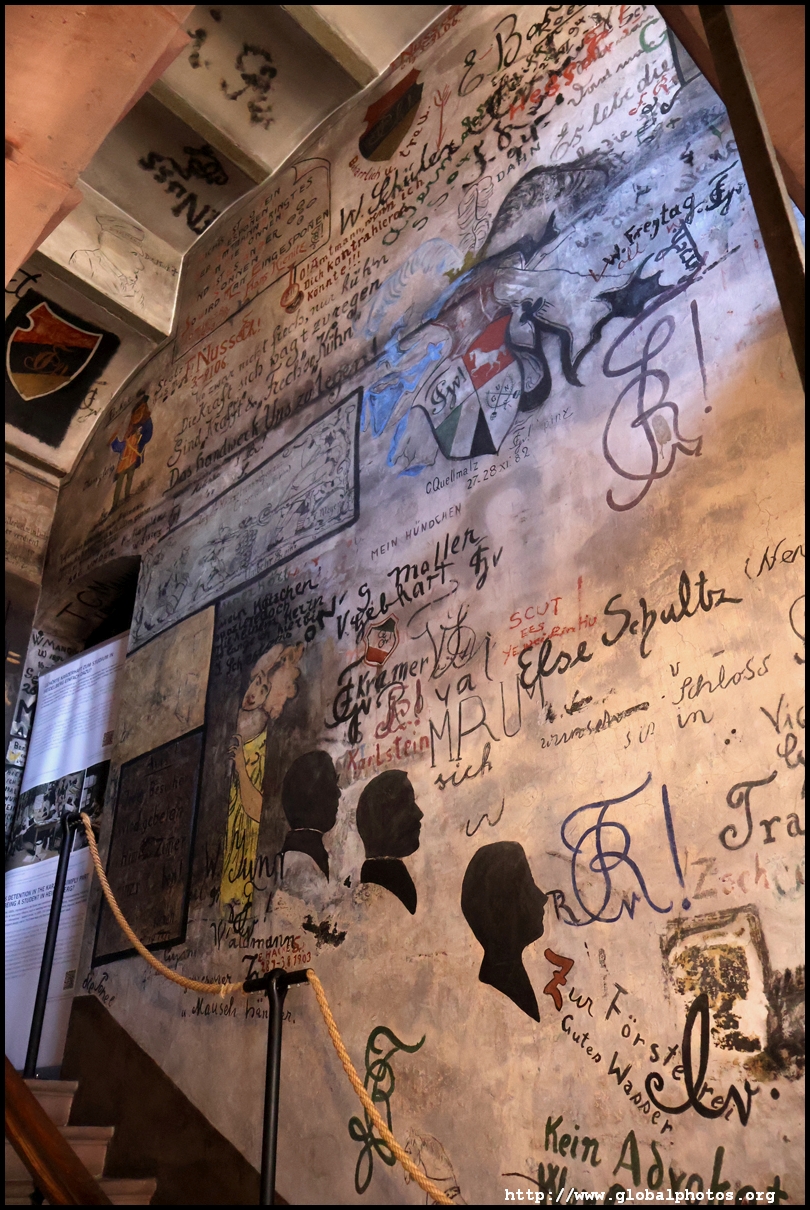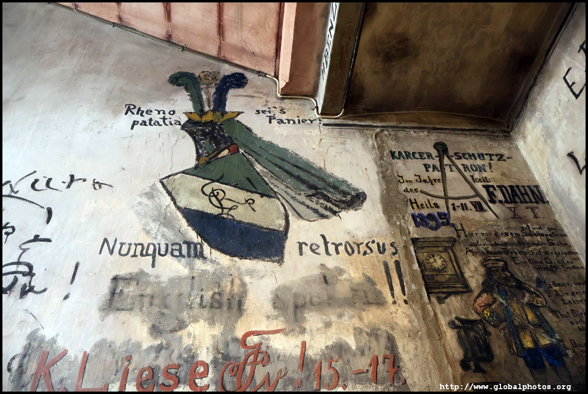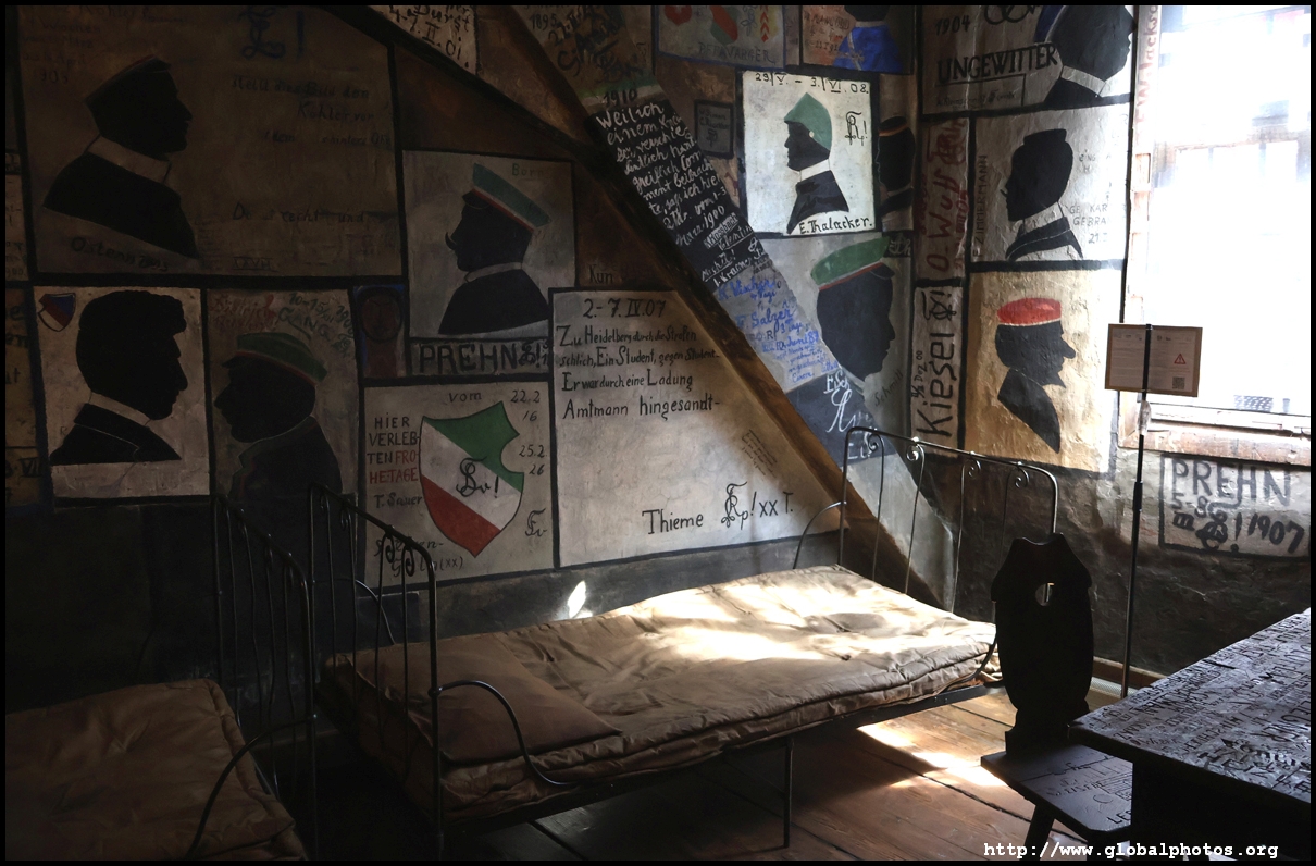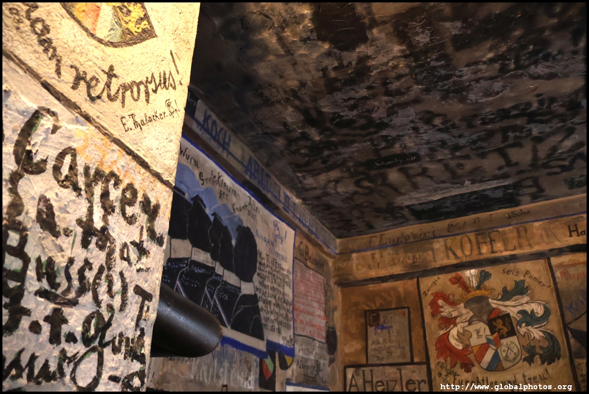 Heidelberg is an easy day trip from Frankfurt and well worth it for its beautiful Baroque architecture. Its university is the oldest in Germany, founded in 1386, and is still dominant today.Tucked in a side street is Studentenkarzer, the prison that was established in the 1780s and used until 1914 to hold students convicted of various minor misdeeds. Back then, offences included loud singing at night and freeing the pigs. However, it became a rite of passage where students wanted to experience being imprisoned, and it was a comfortable and entertaining experience by the 1880s. Prisoners could leave to take their classes, have food delivered to them, and receive visitors. 151 prison sentences were imposed in 1885, and many who passed through left their mark on the walls. These often show the fraternities' coat of arms. Even Mark Twain wrote about this place in 1878 and noted how odd it was. To help preserve the works, you are asked to store your backpacks in the locker and not to touch anything. Luckily, I arrived fairly early in the morning shortly after it opened and had the place mostly to myself. It's a fairly confined space so I can understand why they don't want any loose items possibly pressing against the walls and damaging the graffiti.