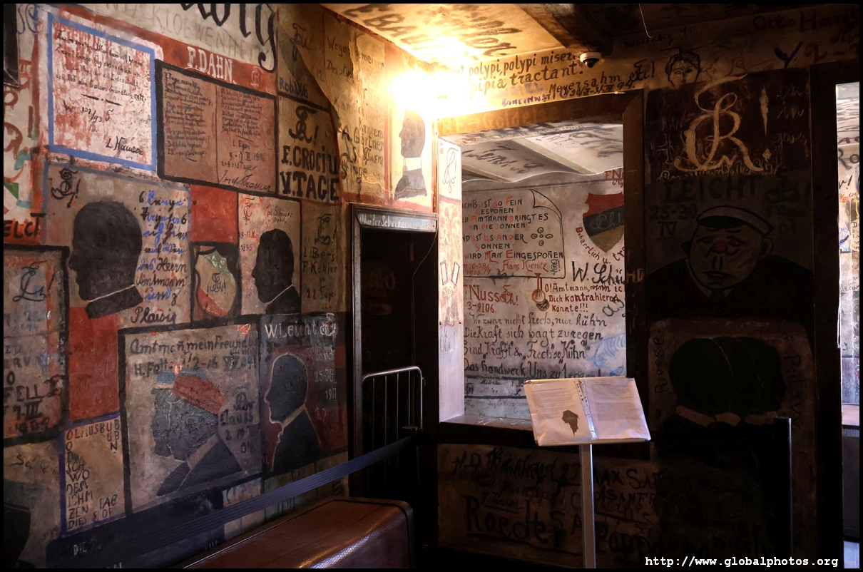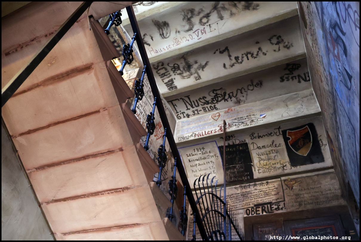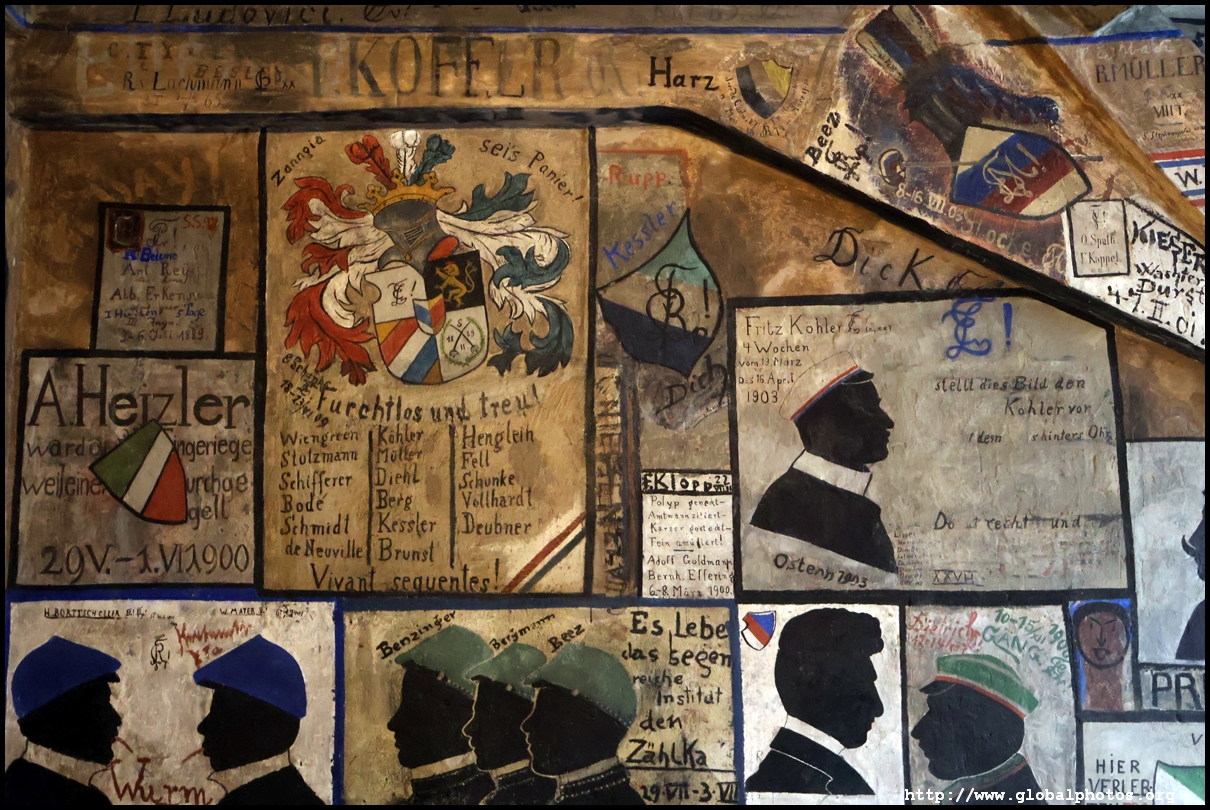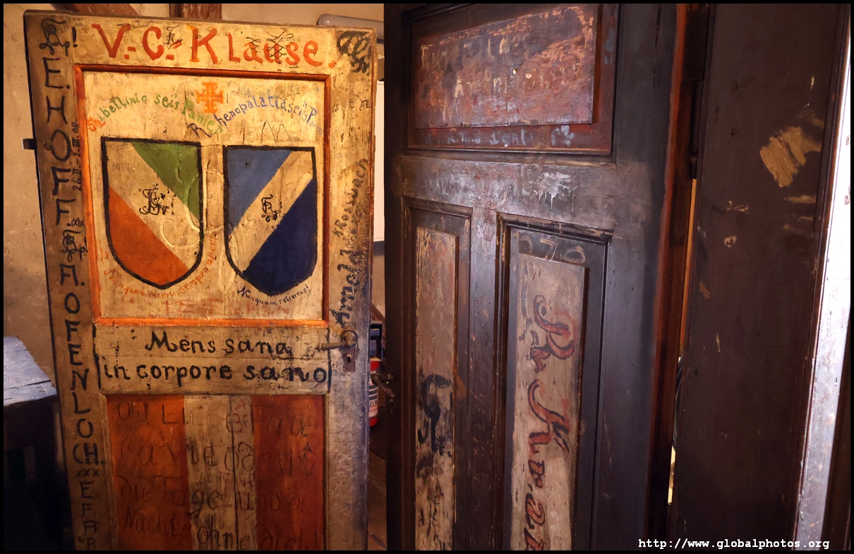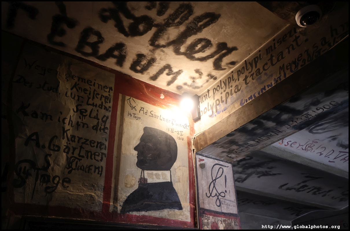 Heidelberg is an easy day trip from Frankfurt and well worth it for its beautiful Baroque architecture. Its university is the oldest in Germany, founded in 1386, and is still dominant today.Tucked in a side street is Studentenkarzer, the prison that was established in the 1780s and used until 1914 to hold students convicted of various minor misdeeds. Back then, offences included loud singing at night and freeing the pigs. However, it became a rite of passage where students wanted to experience being imprisoned, and it was a comfortable and entertaining experience by the 1880s. Prisoners could leave to take their classes, have food delivered to them, and receive visitors. 151 prison sentences were imposed in 1885, and many who passed through left their mark on the walls. These often show the fraternities' coat of arms. Even Mark Twain wrote about this place in 1878 and noted how odd it was. To help preserve the works, you are asked to store your backpacks in the locker and not to touch anything. Luckily, I arrived fairly early in the morning shortly after it opened and had the place mostly to myself. It's a fairly confined space so I can understand why they don't want any loose items possibly pressing against the walls and damaging the graffiti.