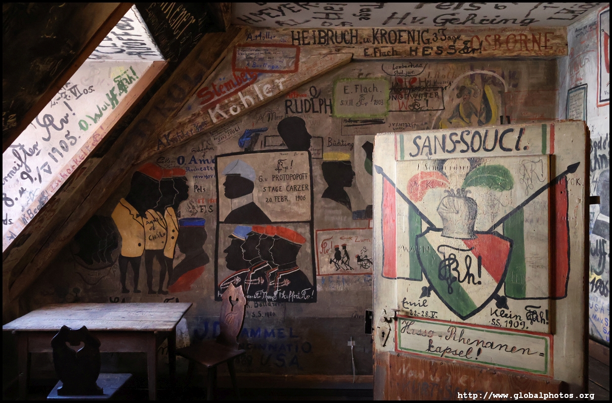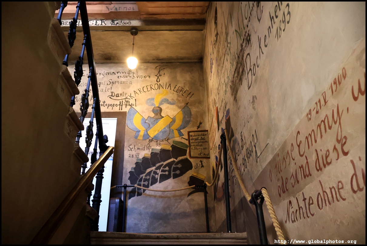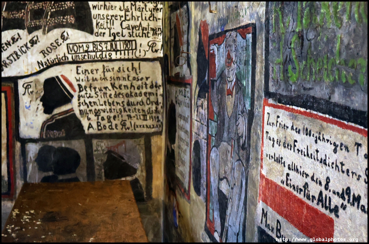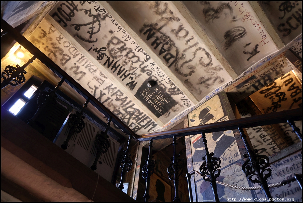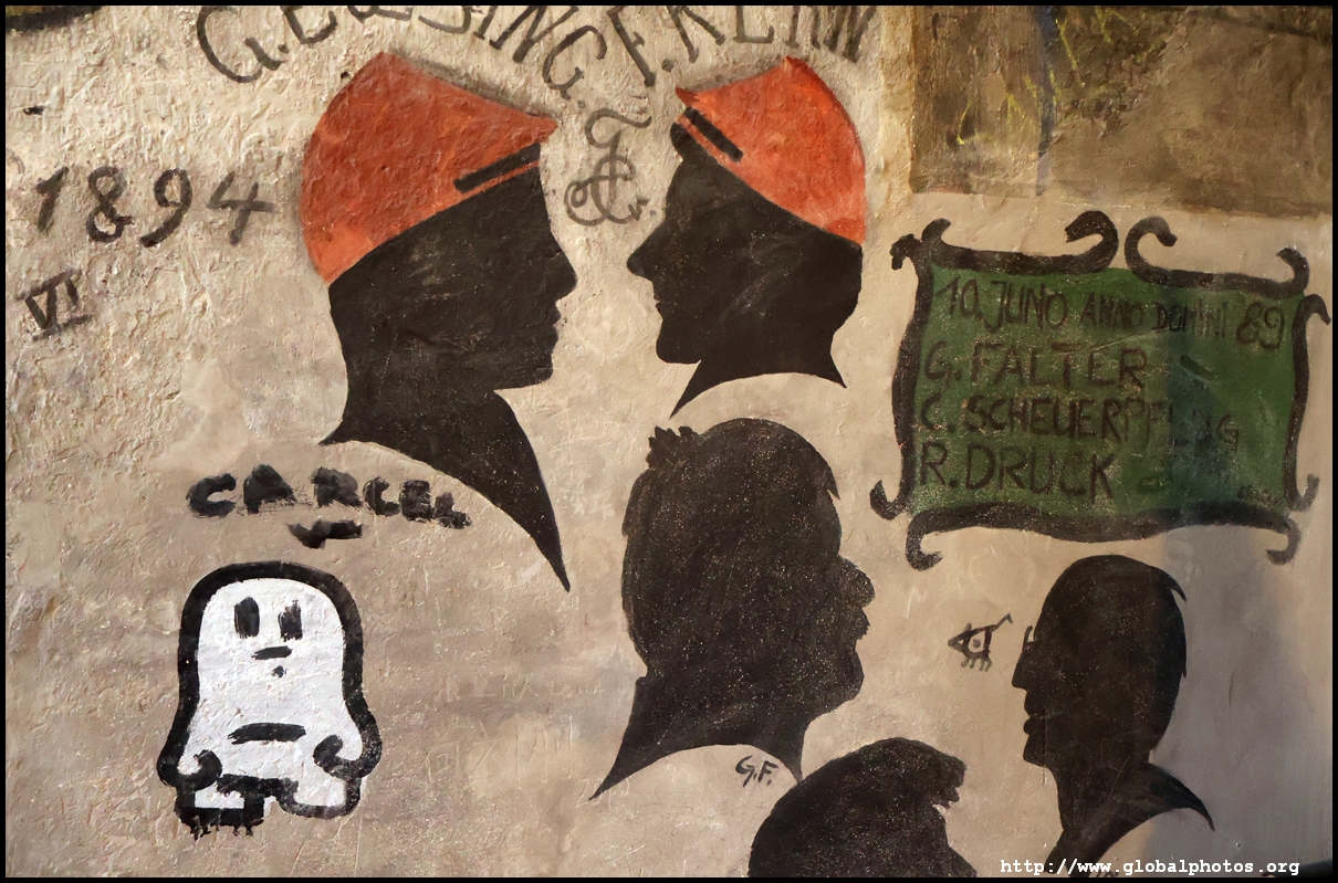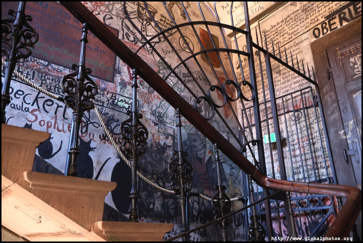 Heidelberg is an easy day trip from Frankfurt and well worth it for its beautiful Baroque architecture. Its university is the oldest in Germany, founded in 1386, and is still dominant today.Tucked in a side street is Studentenkarzer, the prison that was established in the 1780s and used until 1914 to hold students convicted of various minor misdeeds. Back then, offences included loud singing at night and freeing the pigs. However, it became a rite of passage where students wanted to experience being imprisoned, and it was a comfortable and entertaining experience by the 1880s. Prisoners could leave to take their classes, have food delivered to them, and receive visitors. 151 prison sentences were imposed in 1885, and many who passed through left their mark on the walls. These often show the fraternities' coat of arms. Even Mark Twain wrote about this place in 1878 and noted how odd it was. To help preserve the works, you are asked to store your backpacks in the locker and not to touch anything. Luckily, I arrived fairly early in the morning shortly after it opened and had the place mostly to myself. It's a fairly confined space so I can understand why they don't want any loose items possibly pressing against the walls and damaging the graffiti.
