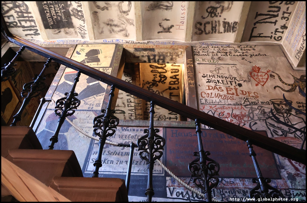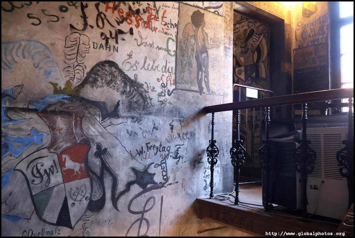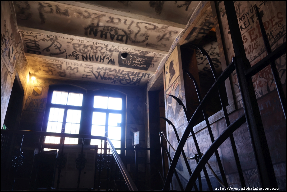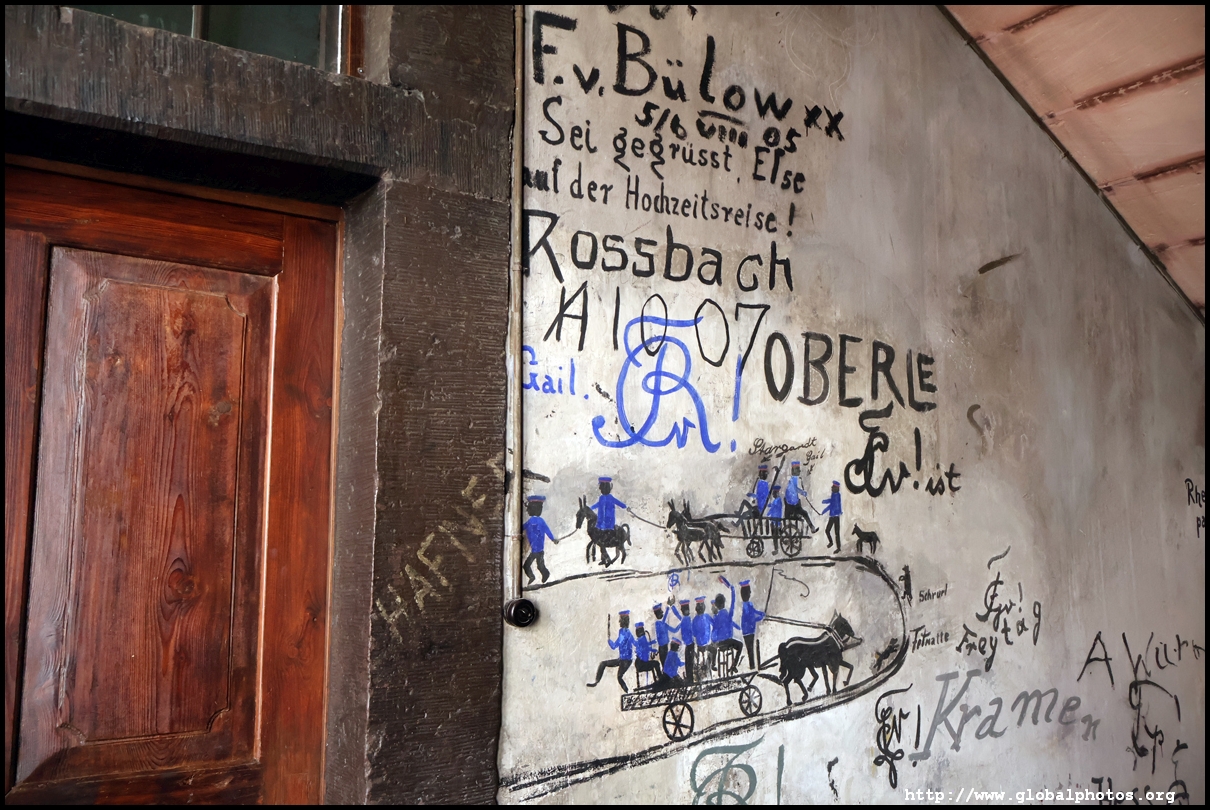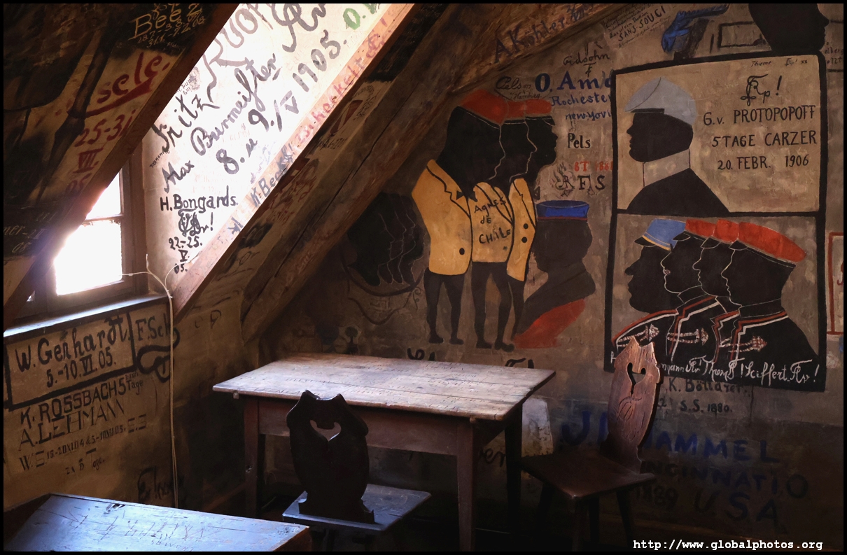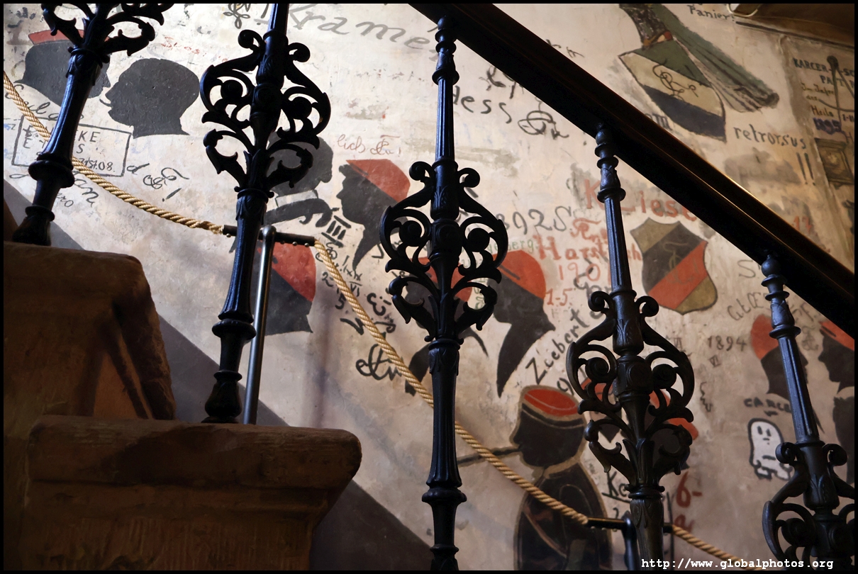 Heidelberg is an easy day trip from Frankfurt and well worth it for its beautiful Baroque architecture. Its university is the oldest in Germany, founded in 1386, and is still dominant today.Tucked in a side street is Studentenkarzer, the prison that was established in the 1780s and used until 1914 to hold students convicted of various minor misdeeds. Back then, offences included loud singing at night and freeing the pigs. However, it became a rite of passage where students wanted to experience being imprisoned, and it was a comfortable and entertaining experience by the 1880s. Prisoners could leave to take their classes, have food delivered to them, and receive visitors. 151 prison sentences were imposed in 1885, and many who passed through left their mark on the walls. These often show the fraternities' coat of arms. Even Mark Twain wrote about this place in 1878 and noted how odd it was. To help preserve the works, you are asked to store your backpacks in the locker and not to touch anything. Luckily, I arrived fairly early in the morning shortly after it opened and had the place mostly to myself. It's a fairly confined space so I can understand why they don't want any loose items possibly pressing against the walls and damaging the graffiti.