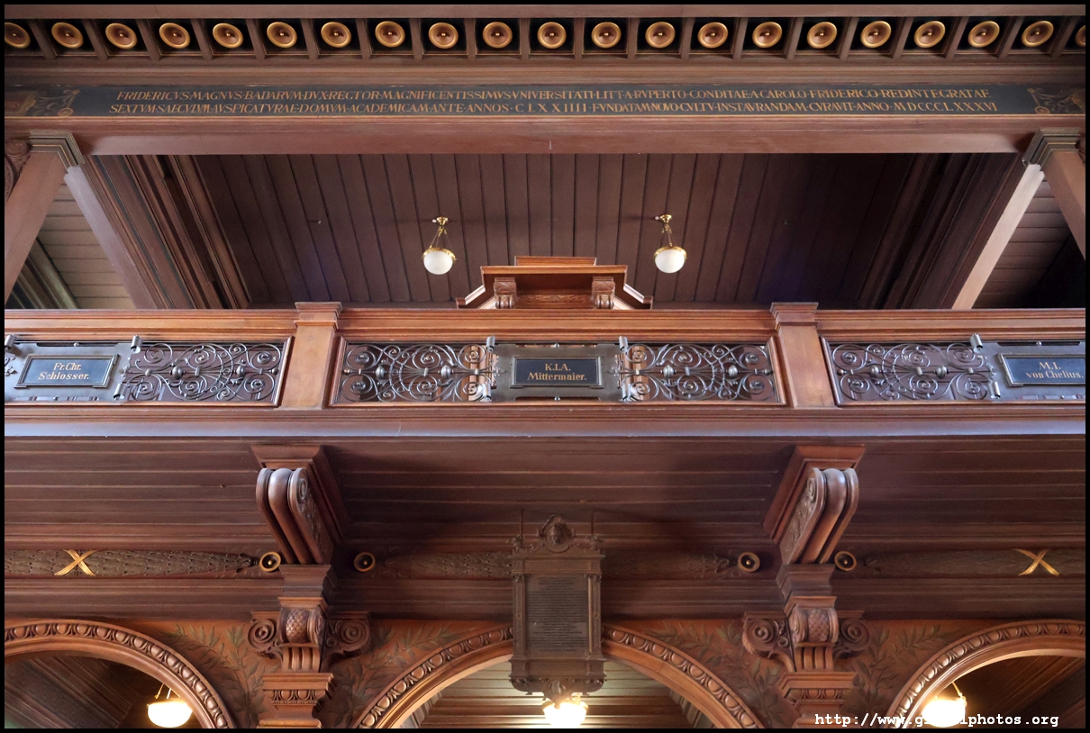 Heidelberg is an easy day trip from Frankfurt and well worth it for its beautiful Baroque architecture. Its university is the oldest in Germany, founded in 1386, and is still dominant today.After visiting the Studentenkarzer, don't forget to also pop into the Unimuseum, which is included in your combination ticket and just next door. I need to thank a staff on site who reminded me to head upstairs to see the Great Hall, the university's beautiful auditorium. Another staff were on hand inside to give a detailed overview of the hall's design and function. What we see today dates from the 1880s to celebrate the university's 500th anniversary. It is mainly used for ceremonies, concerts, and lectures today. The "Old University" building itself is older, built between 1712-1728. The university spans a number of blocks around here and there are a number of beautiful buildings on site. Over 31,000 students study here, employing almost 9000 staff. While this part of the university is historic, there is a larger more modern campus across the river as well. While much of medieval Heidelberg was destroyed by the French in the late 17th century, Hexenturm has survived, being once part of the 13th century fortifications.