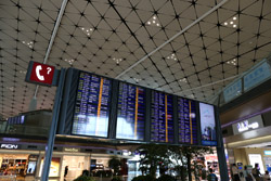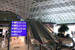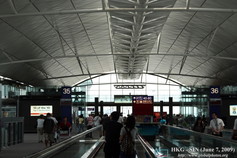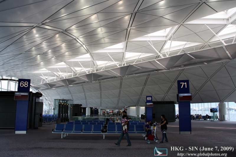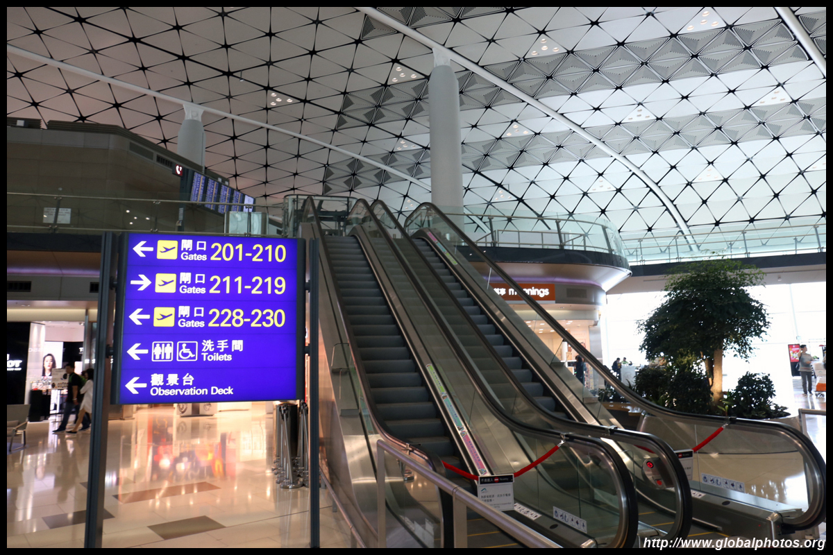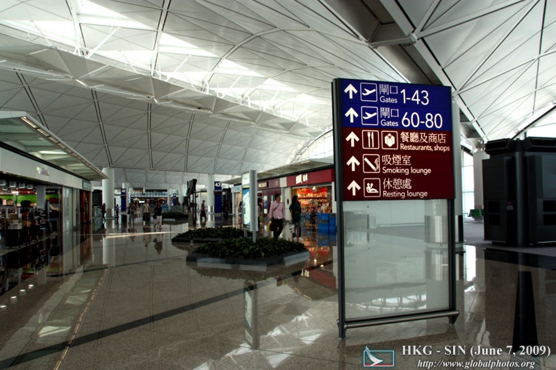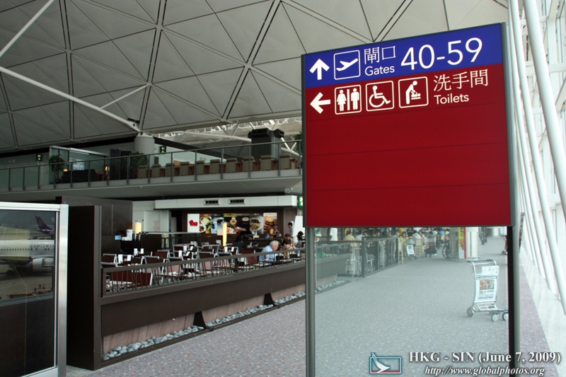 At Terminal 1, passengers go through security check first before reaching immigration. At Terminal 2, it is the reverse. Air-side, large windows provide many plane spotting opportunities. Over the years, airport signage has changed.
