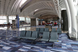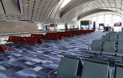 20 years after the airport opened, the gate lounges are progressively being updated with new carpeting and seats.