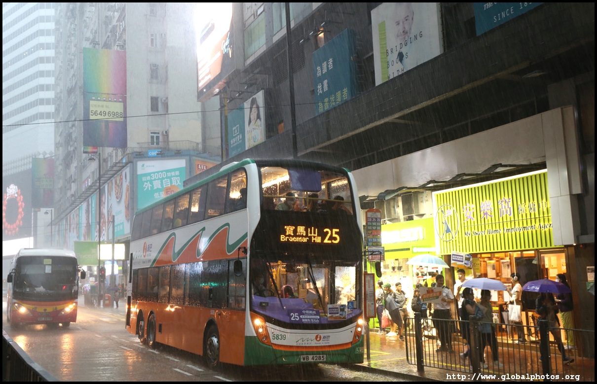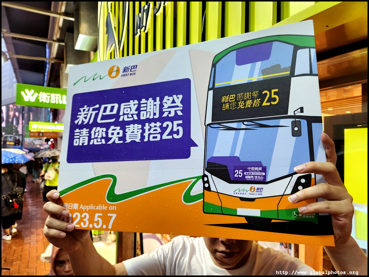To celebrate NWFB's 25th birthday, they offered a free ride day for route 25 on Sunday May 7. The route passes through Central, Wan Chai, Causeway Bay, and uphill to the Braemar Hill residential areas. Bus enthusiasts were plentiful as the company also deployed 4 buses with the classic old livery that day, although a torrential rainstorm kept some away briefly.Unlike KMB's free bus day, each passenger still needs to tap his/her Octopus card although the reader shows a $0 fare. @ Braemar Hill