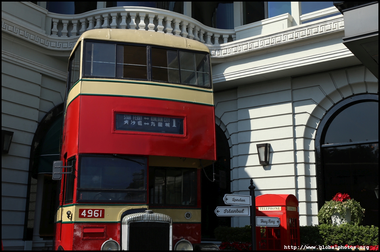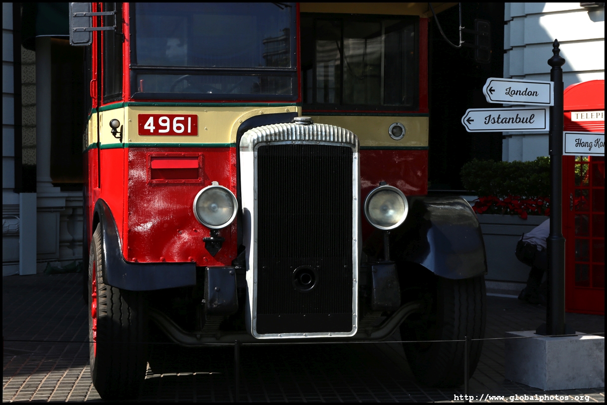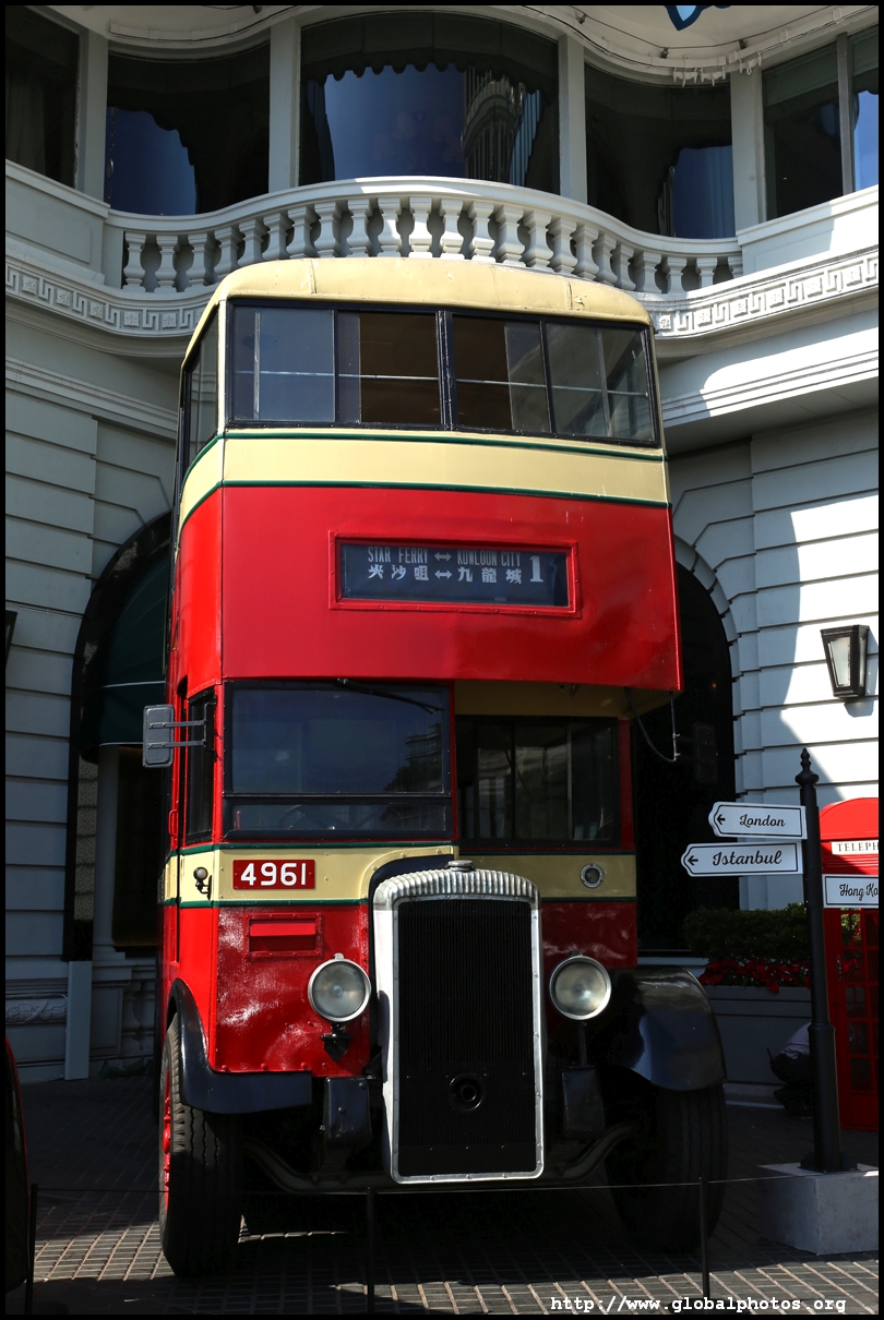 KMB's Daimler A 4961, the company's first double decker bus. Launched in April 1949 as the population grew after World War II. It has 56 wooden seats with the entrance at the back. It retired in 1983, but made a special appearance in front of the Peninsula Hotel in Tsim Sha Tsui.