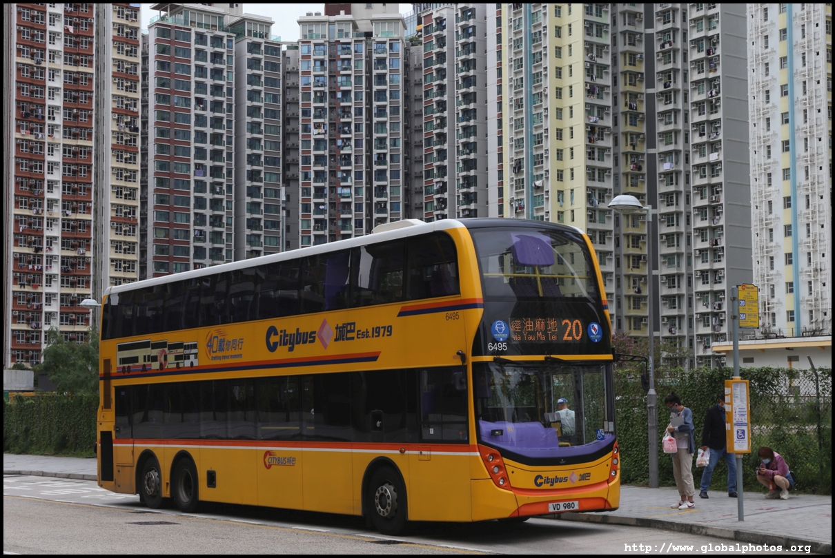 2 further buses (6493 and 6495) are dressed in their 40th anniversary livery and are regularly spotted running route 20 in Kowloon.
