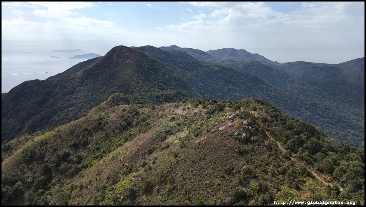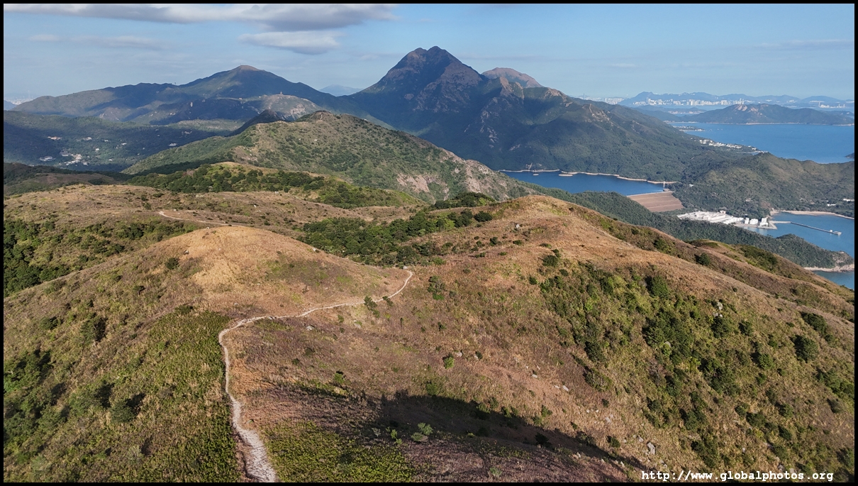 To the west of Shek Pik Reservoir is a hiking trail spanning several mountains along southwestern Lantau, which will eventually lead to the fishing village of Tai O. It is not a difficult hike to span Kwun Yam Shan, Keung Shan, and Ling Wui Shan, although the initial long staircase climb is a bit intimidating, Overall, the trail was not busy and I had long stretches all to myself, enjoying Lantau's beautiful mountain scenery as well as plenty of ocean views with Hong Kong Island's towers in the distance.