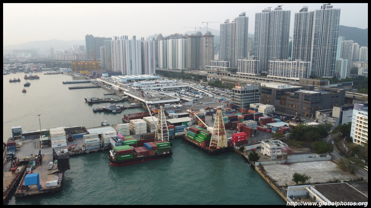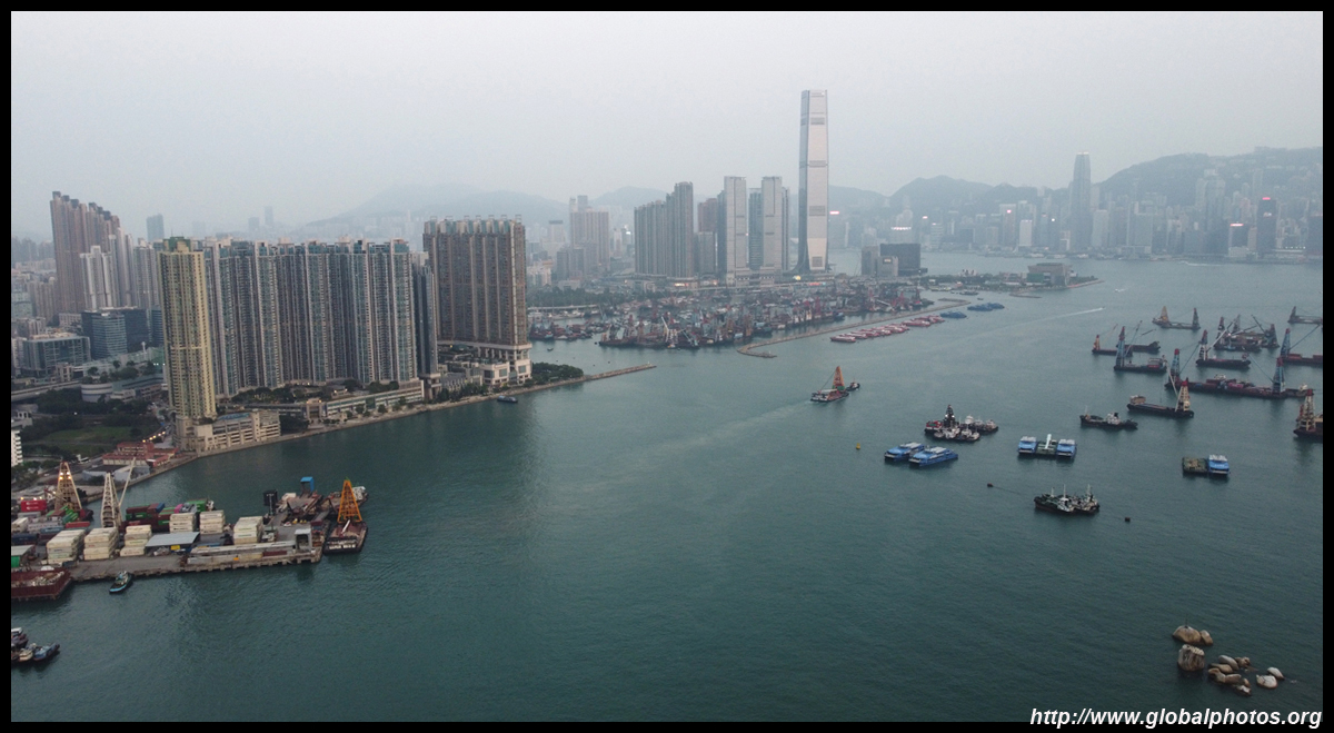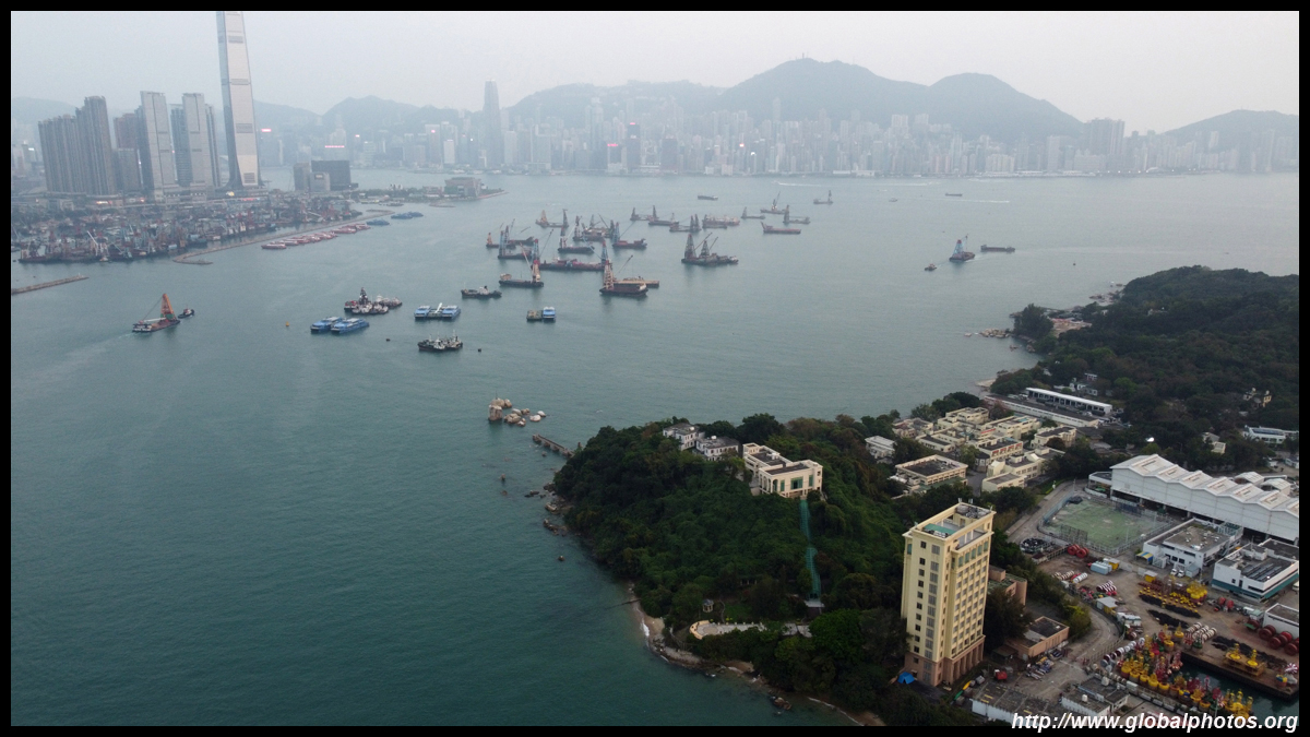 This section of waterfront faces the western edge of Hong Kong Island.