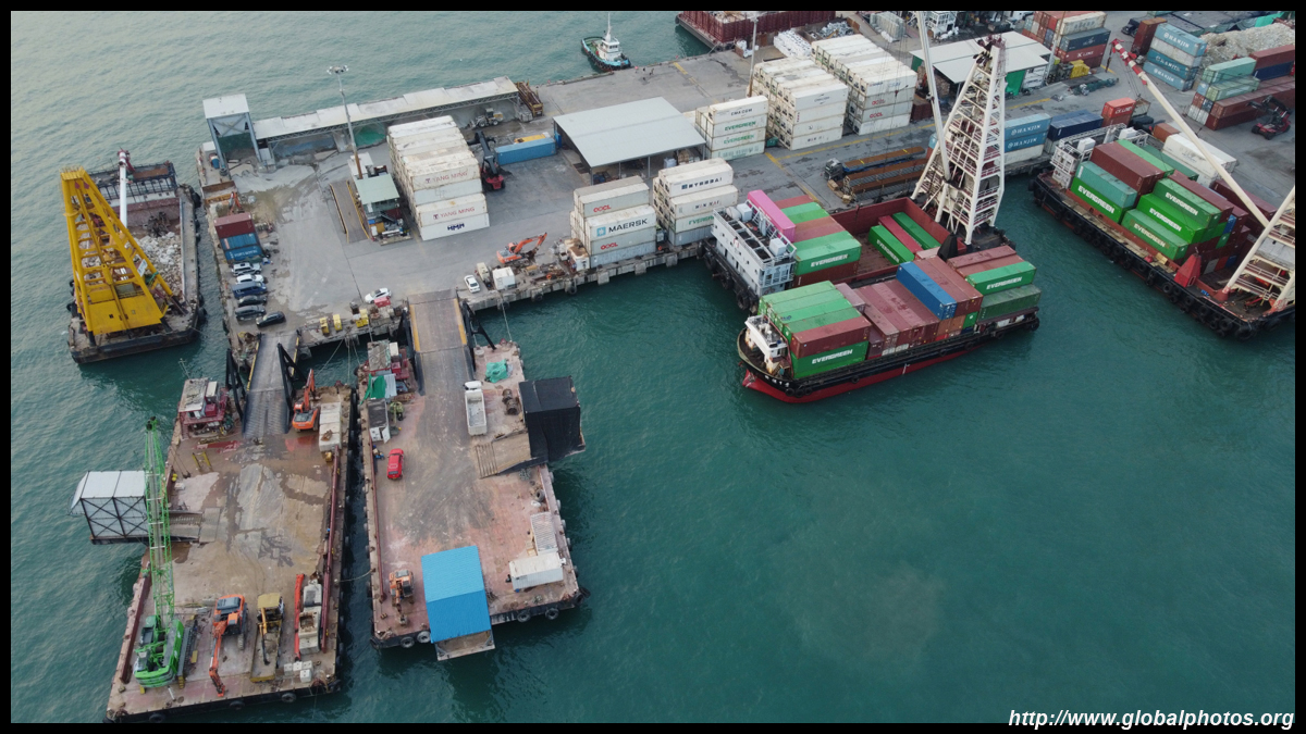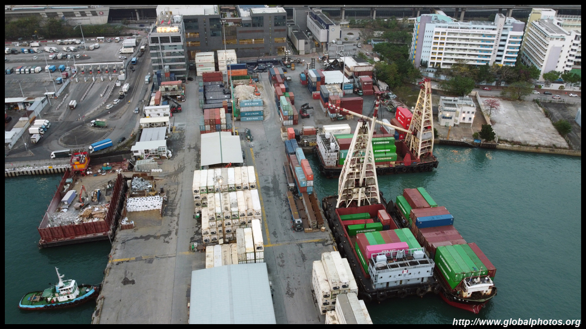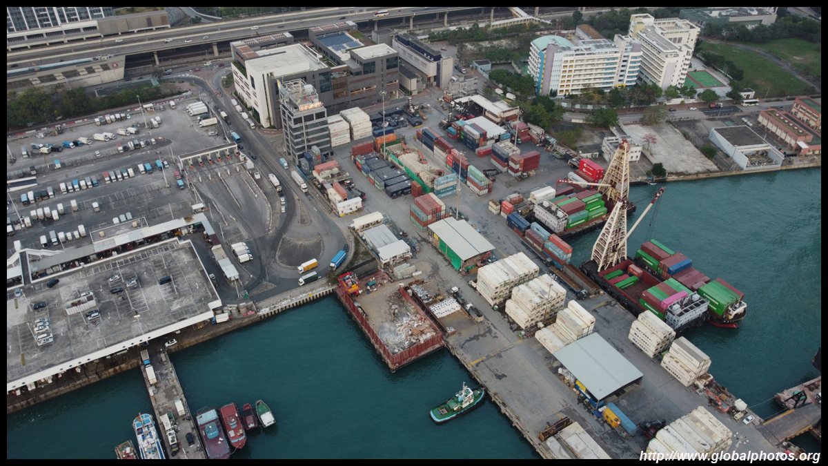 This section of town is quite industrial, with a few dockyards, bus depot, and a naval base. In the distance is the container port.