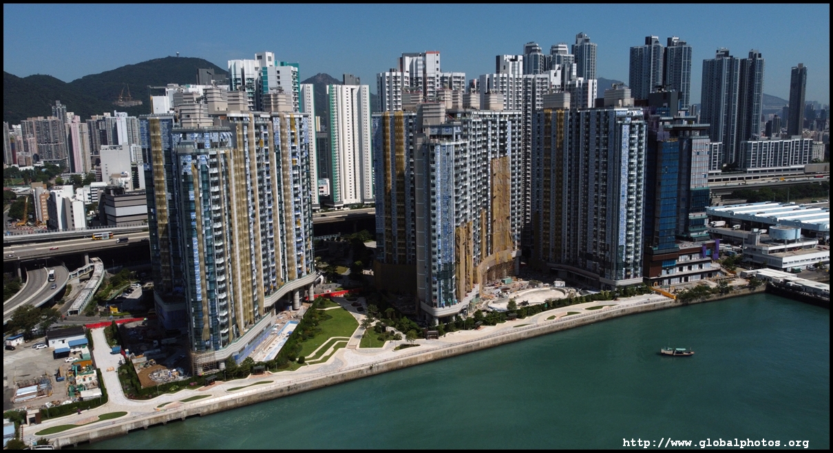 Looking back, you will see many residential blocks lining the waterfront further down the Tung Chung Line.