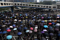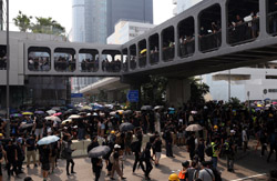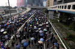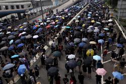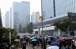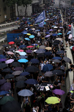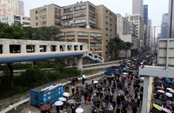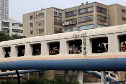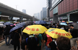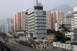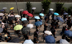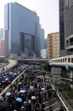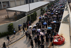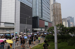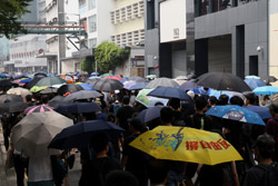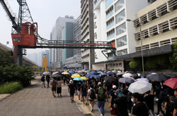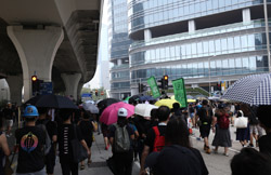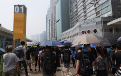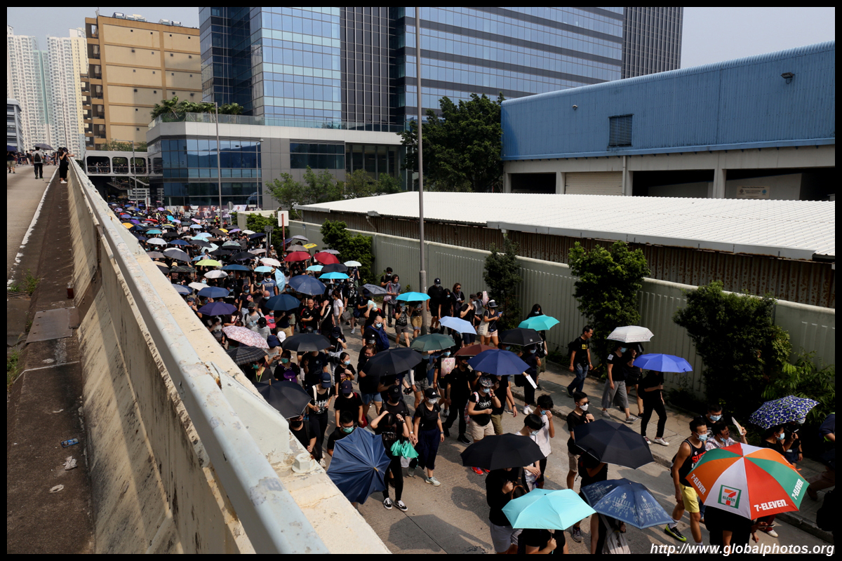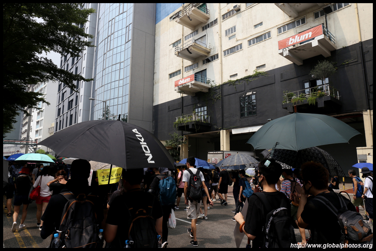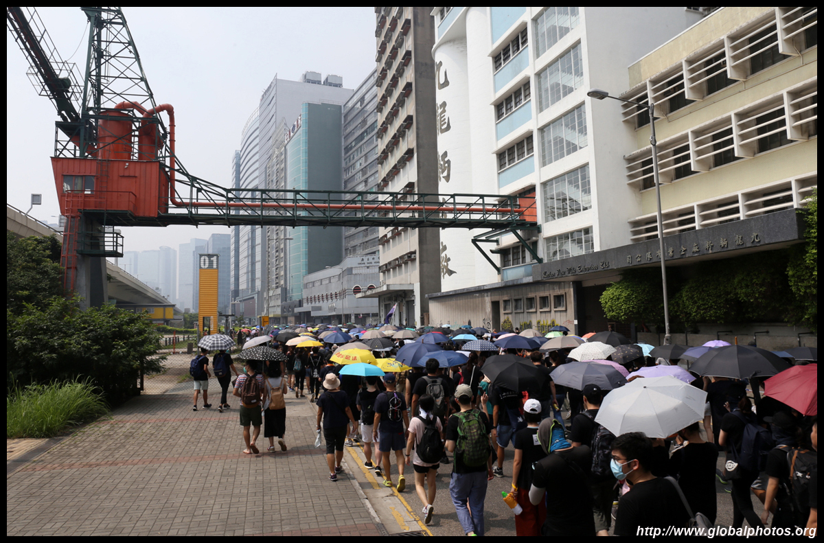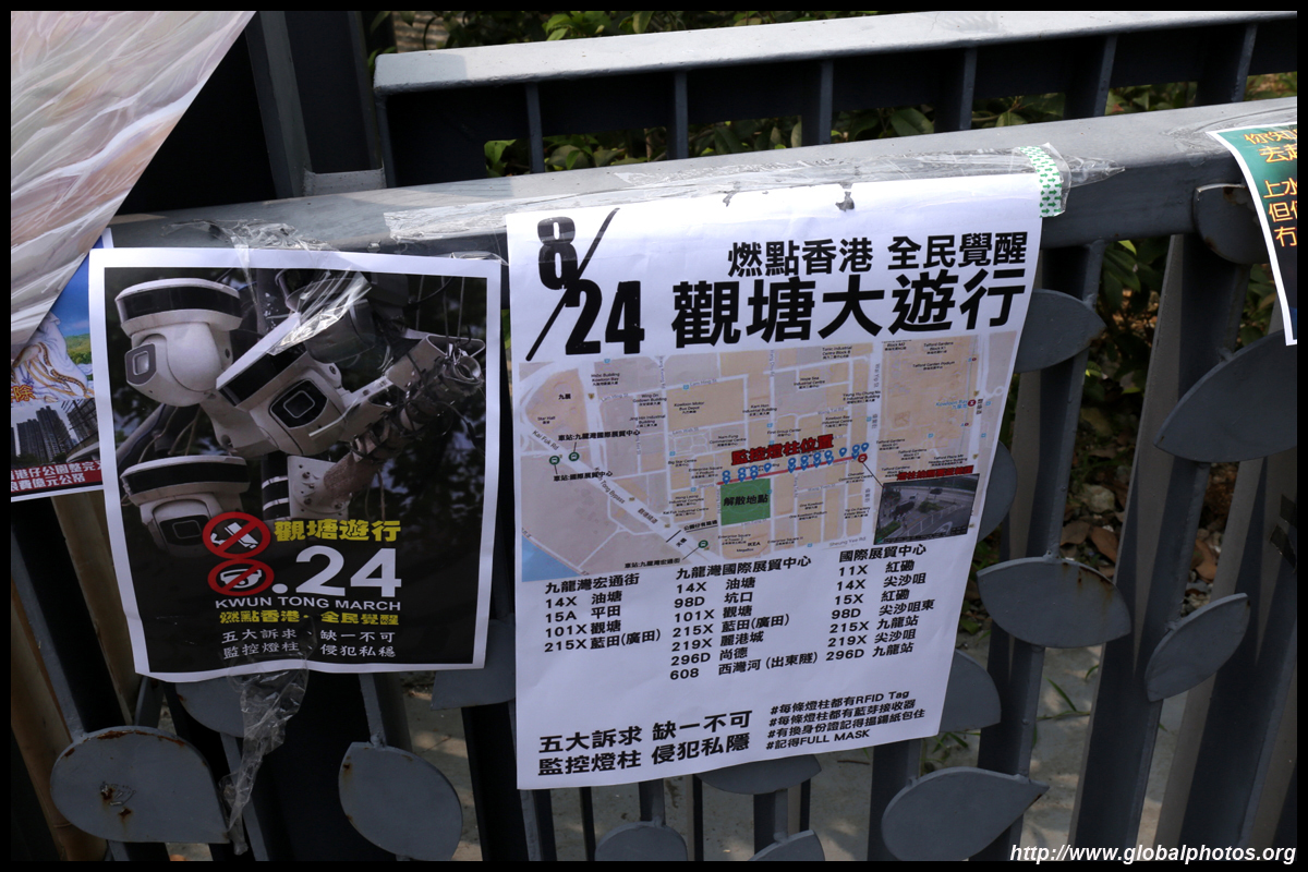 The Kwun Tong march began at the Tsun Yip Street Playground for the shart walk to the Zero Carbon Building in Kowloon Bay. Organizers wanted to bring to the public's attention the privacy risks with the 50 smart lamps that have been installed in the area. Fearing the high resolution cameras can be enhanced with facial recognition to track people's movements, the government emphasized these lamps are only used for monitoring traffic, air quality, and weather.