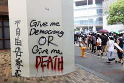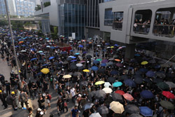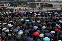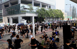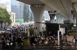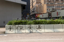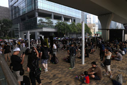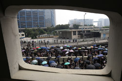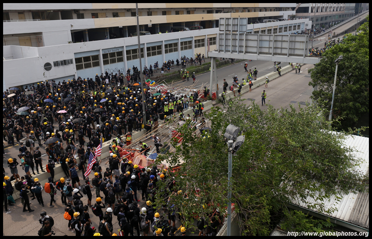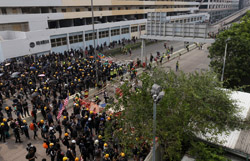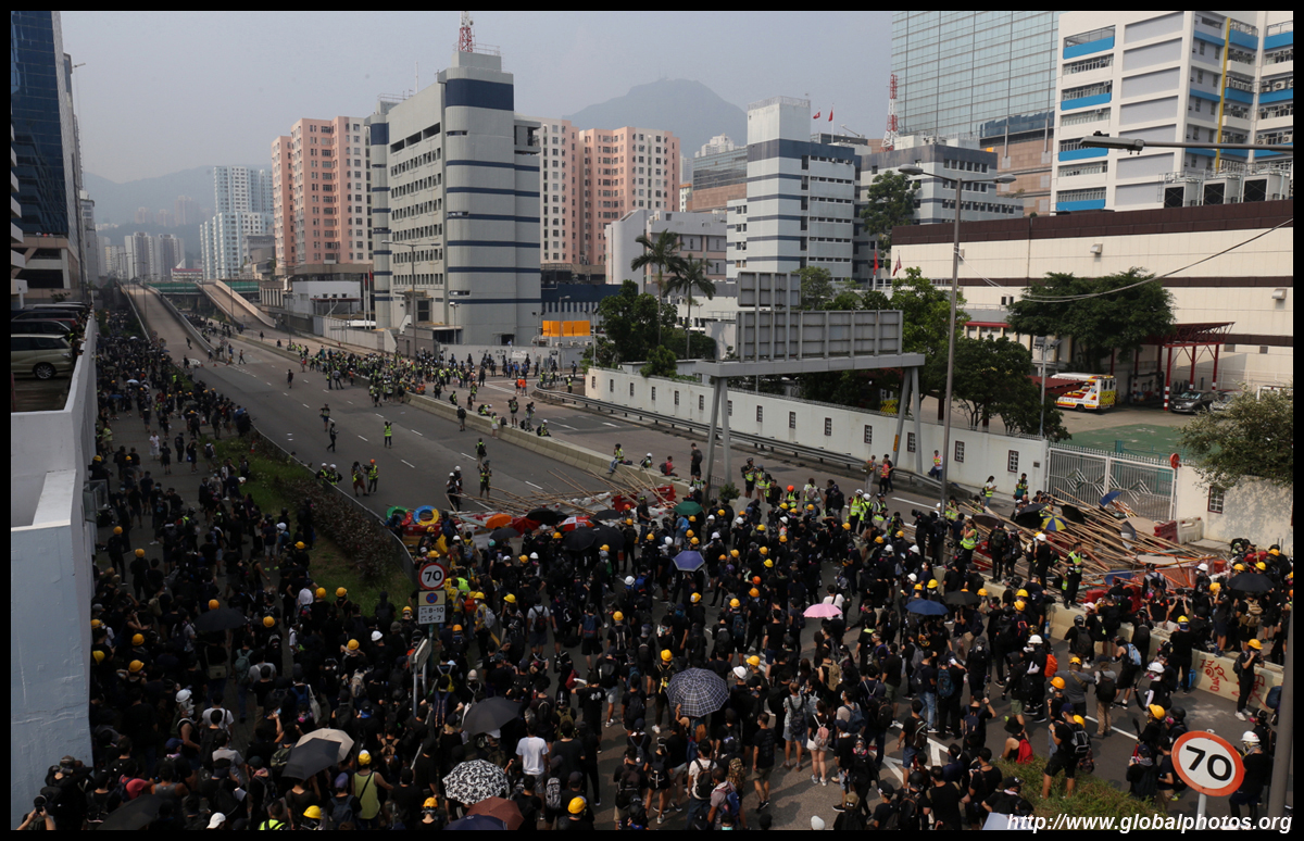 The more radical protesters had hauled some construction materials to set up a barricade near the police station.