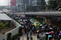 Rest stops were set up at various points along the route with free water being distributed. With a typhoon approaching, temperatures reached upwards of 34C under an intense sun and hazy sky.