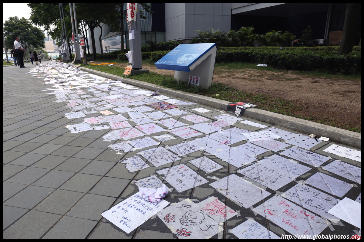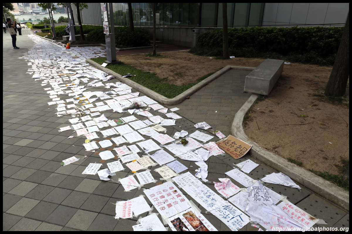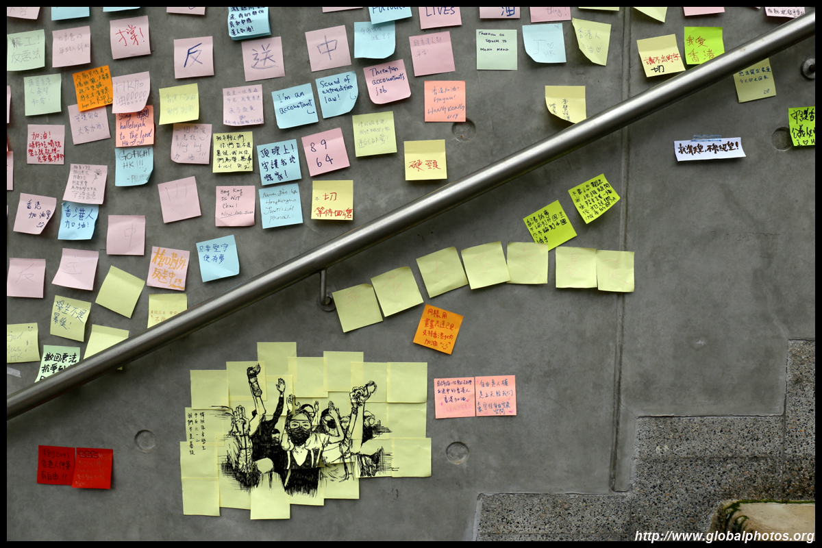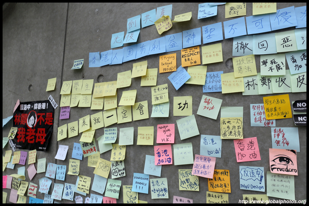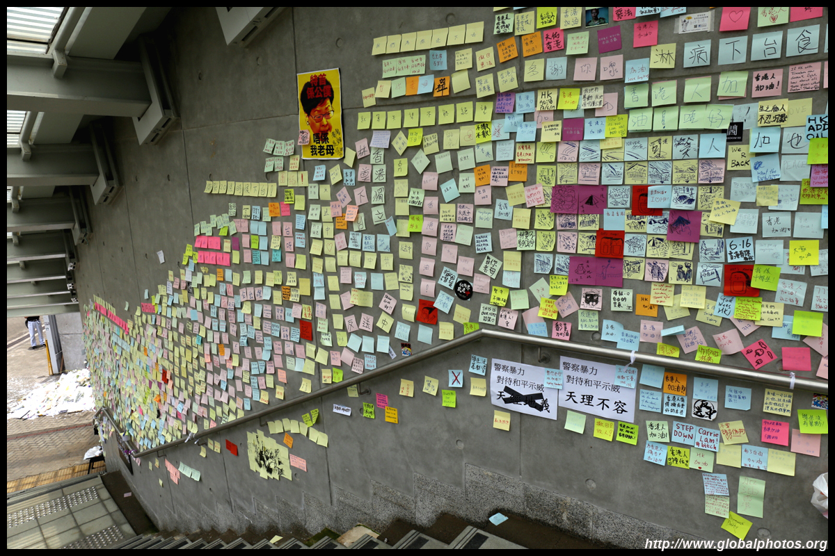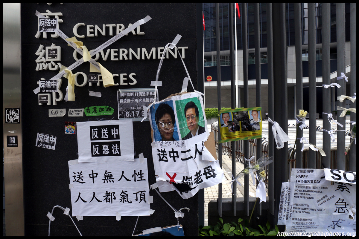 In the aftermath of the protests, banners remained at the Government Headquarters, including a "Lennon Wall" of people's thoughts on post-it notes. Stationery was available for you to post your thoughts as well. In addition to protesting against the bill, there was also a lot of anger at Carrie Lam and the police for using excessive force.