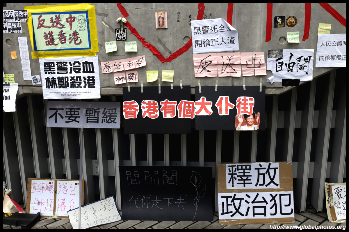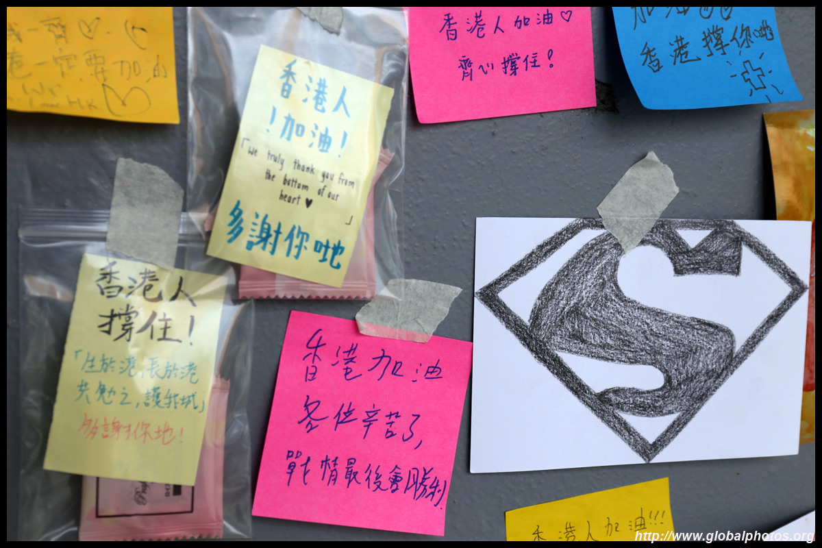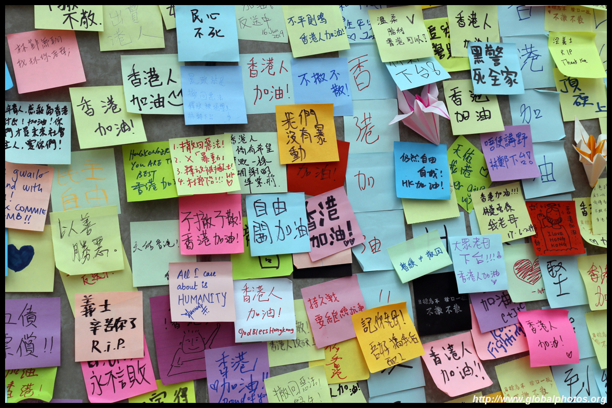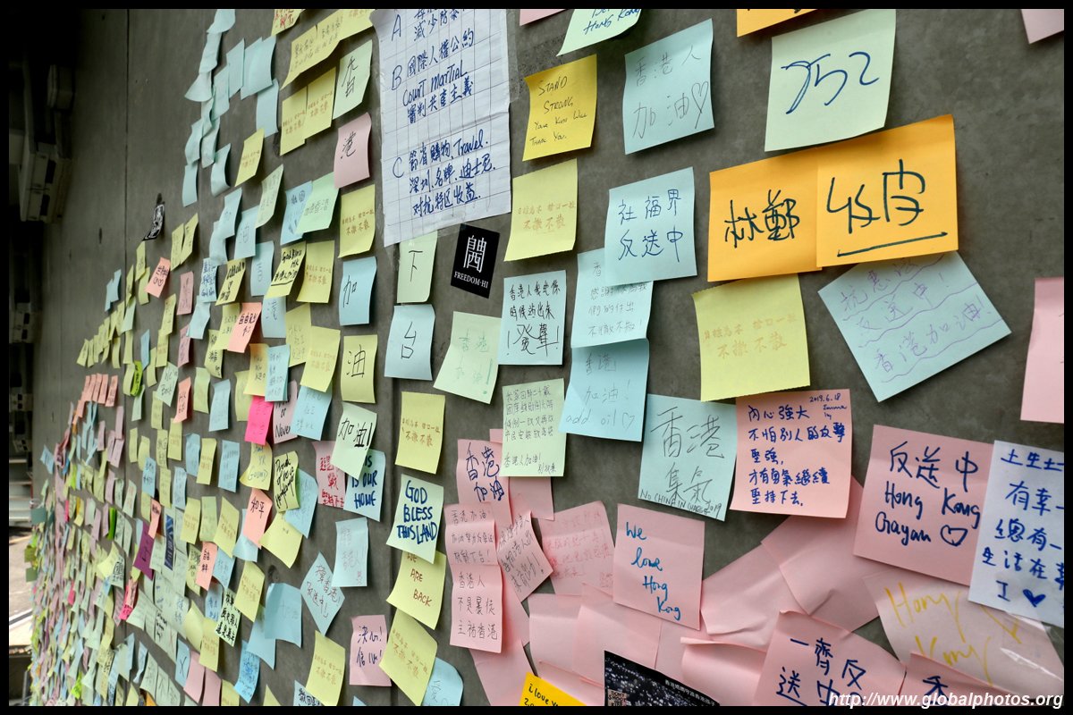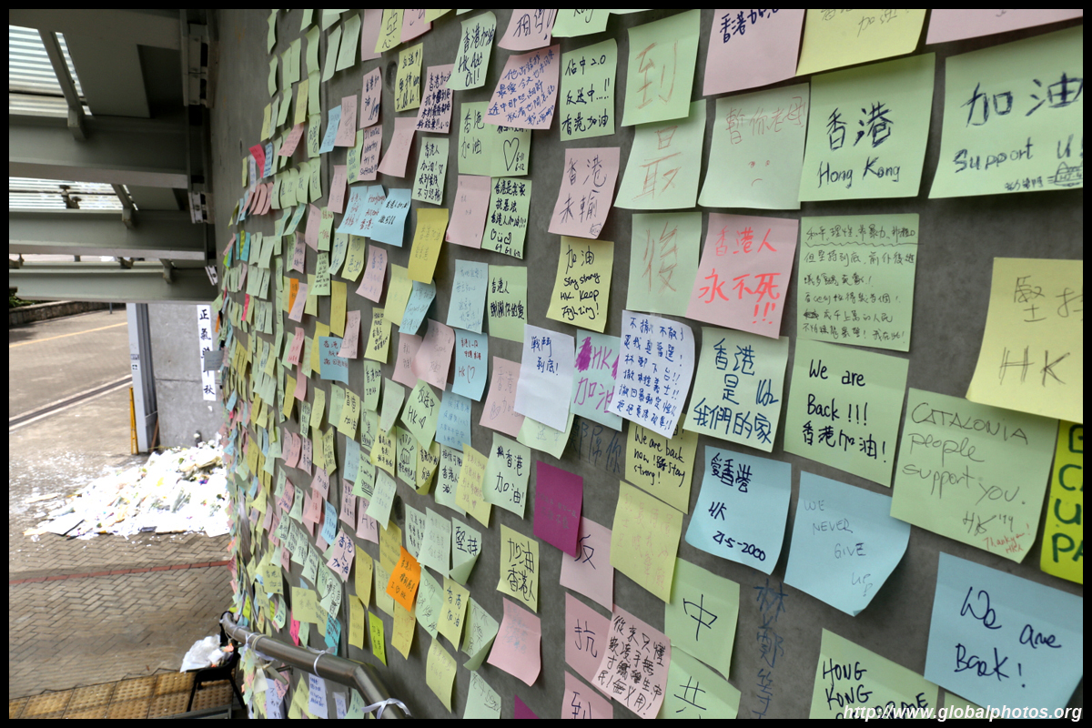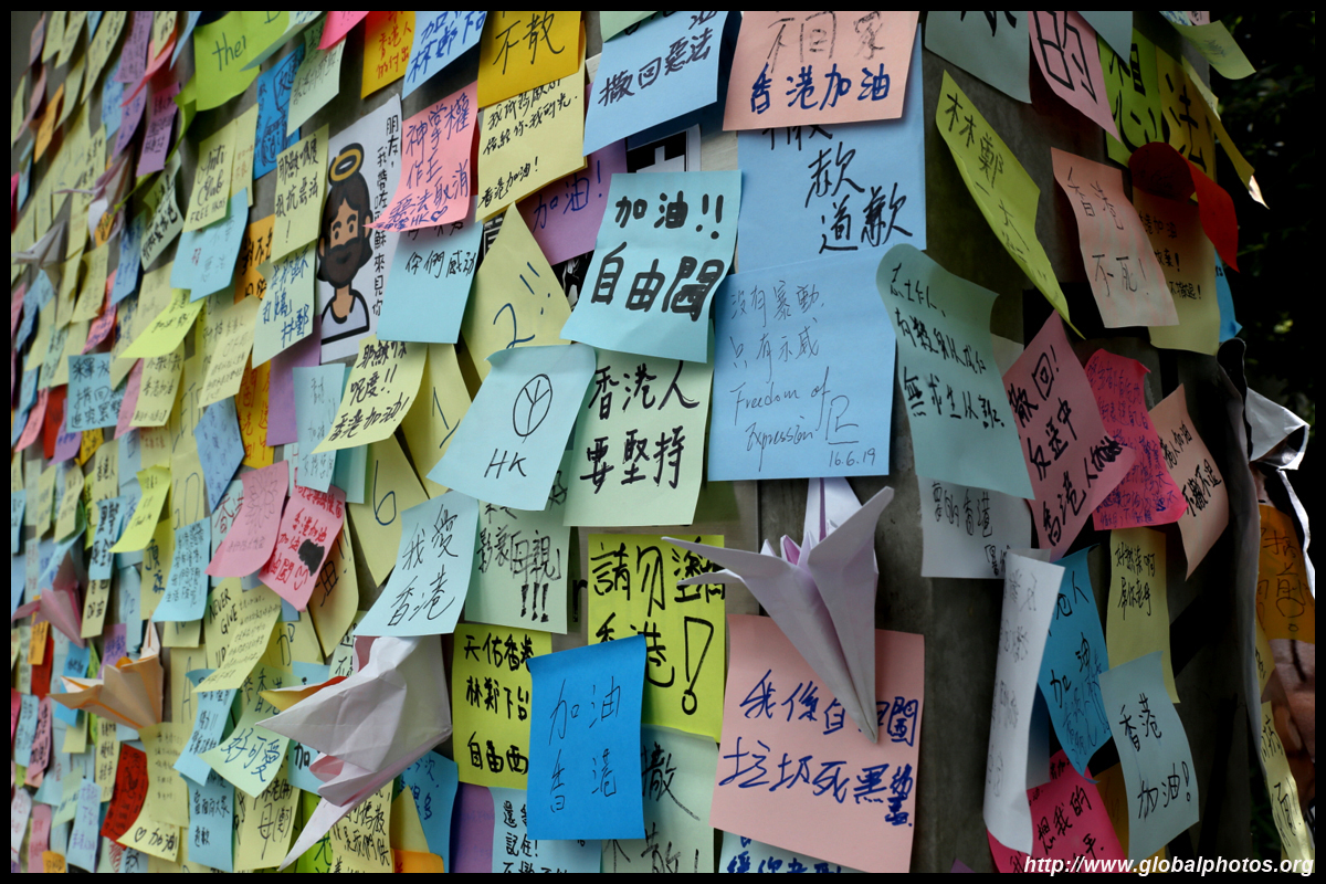 In the aftermath of the protests, banners remained at the Government Headquarters, including a "Lennon Wall" of people's thoughts on post-it notes. Stationery was available for you to post your thoughts as well. In addition to protesting against the bill, there was also a lot of anger at Carrie Lam and the police for using excessive force.