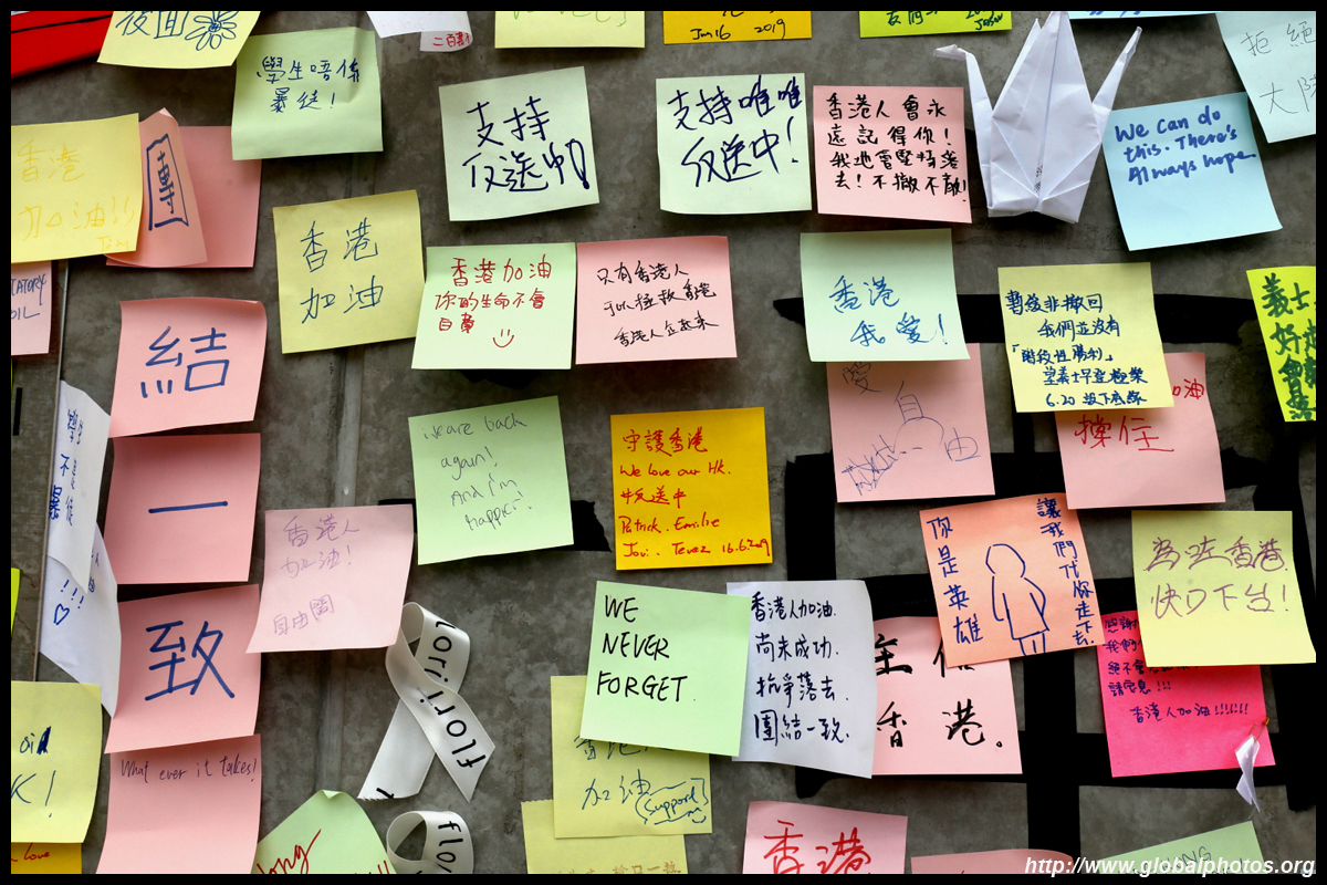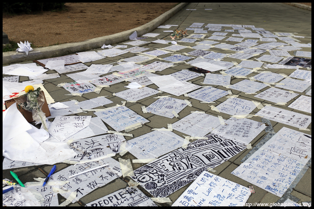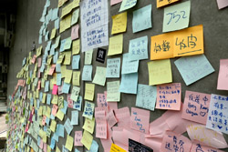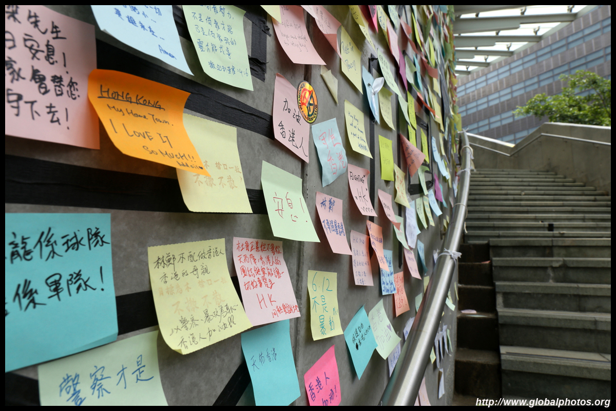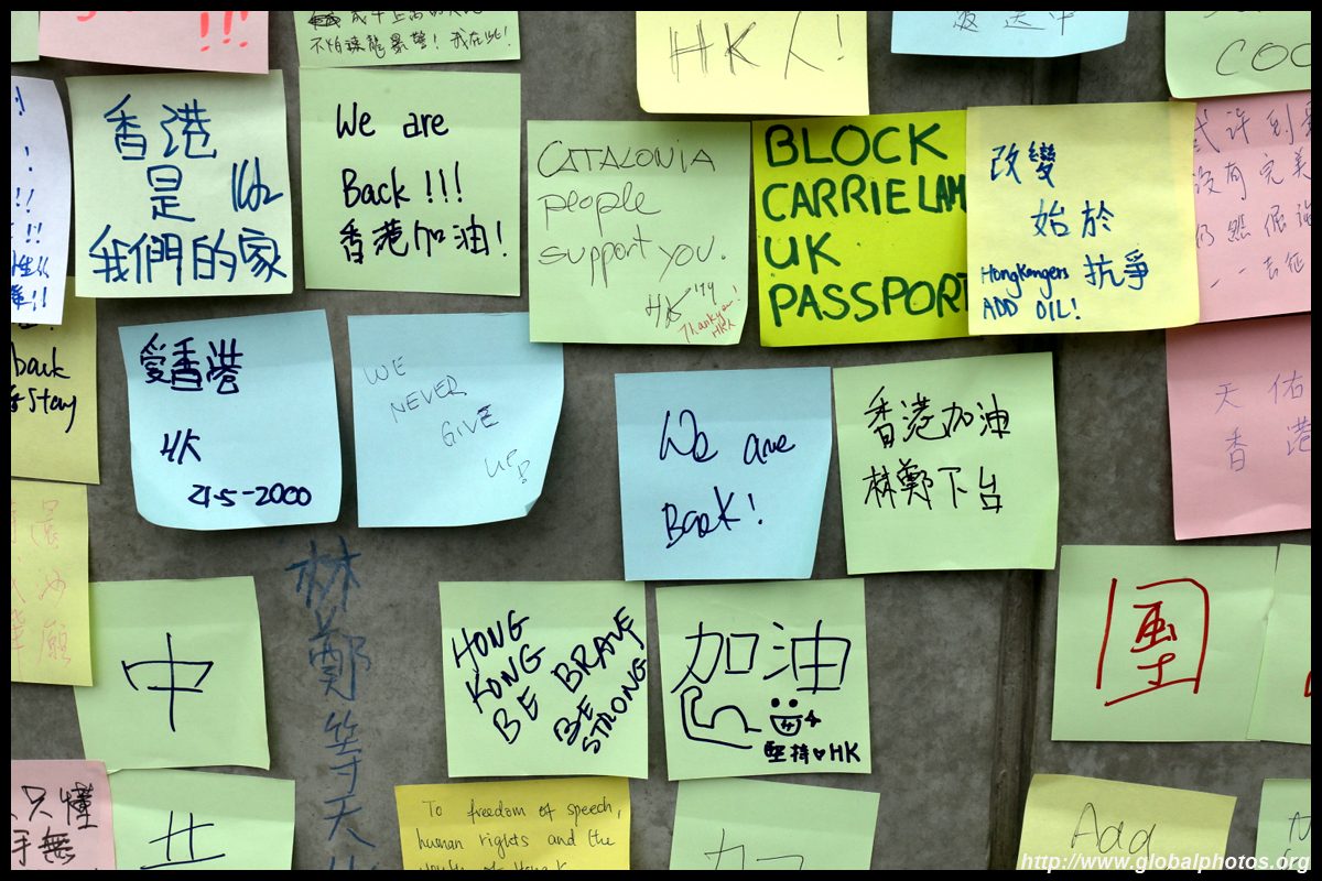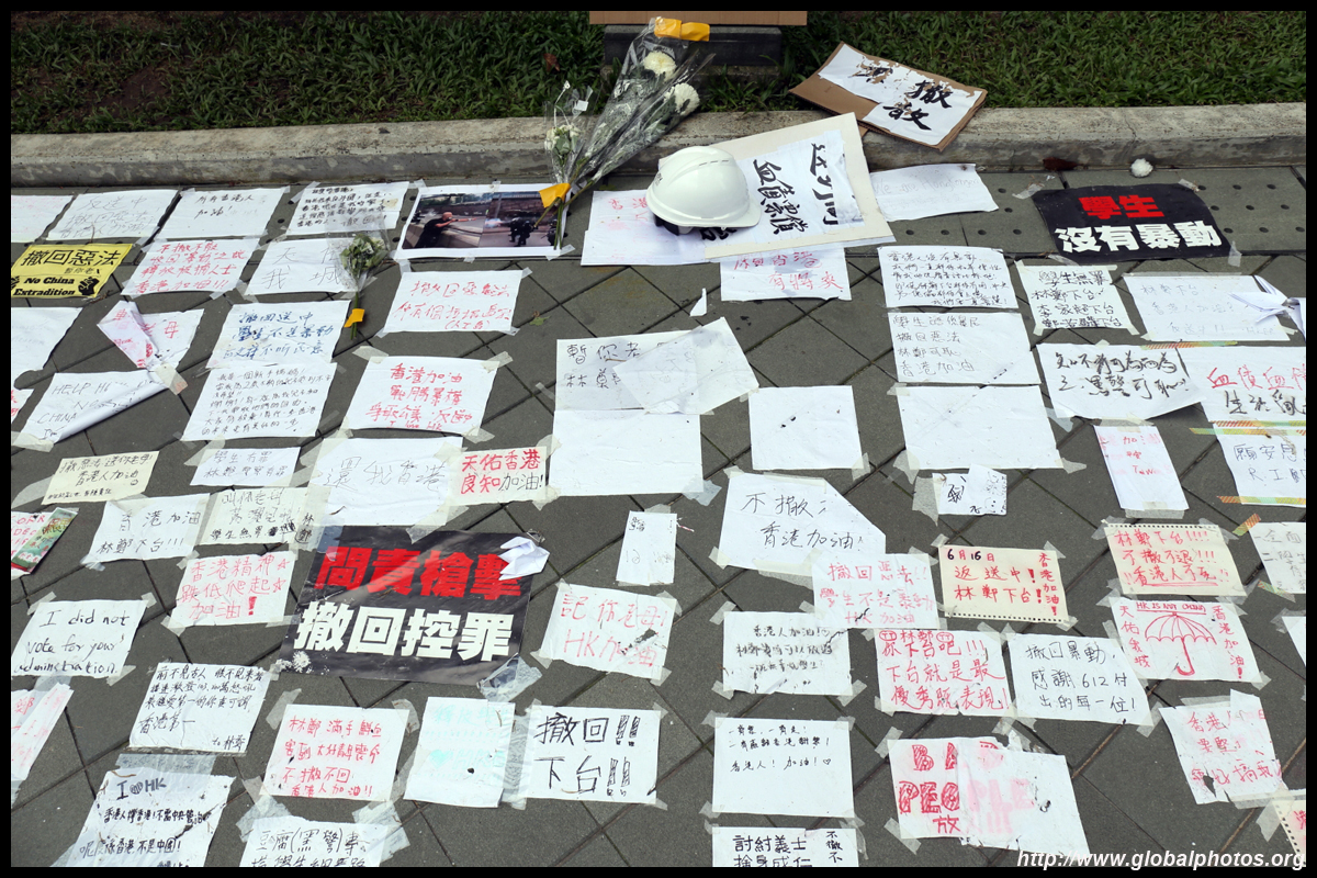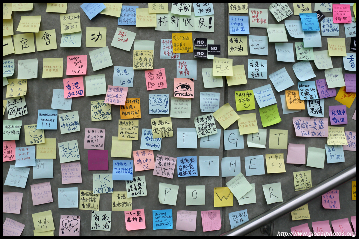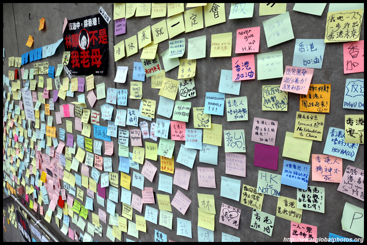 In the aftermath of the protests, banners remained at the Government Headquarters, including a "Lennon Wall" of people's thoughts on post-it notes. Stationery was available for you to post your thoughts as well. In addition to protesting against the bill, there was also a lot of anger at Carrie Lam and the police for using excessive force.