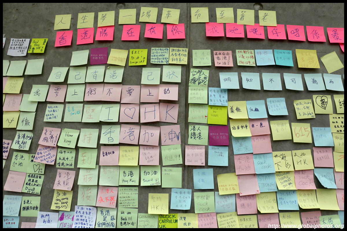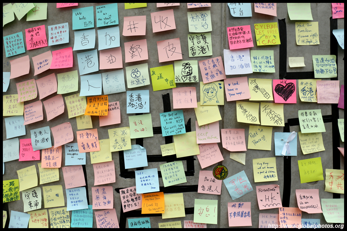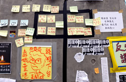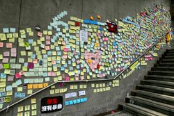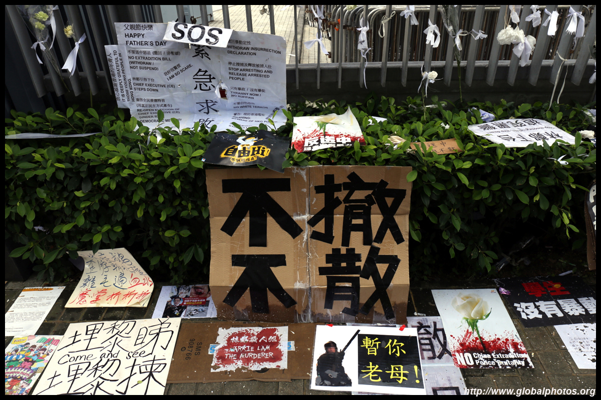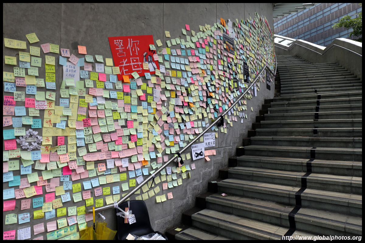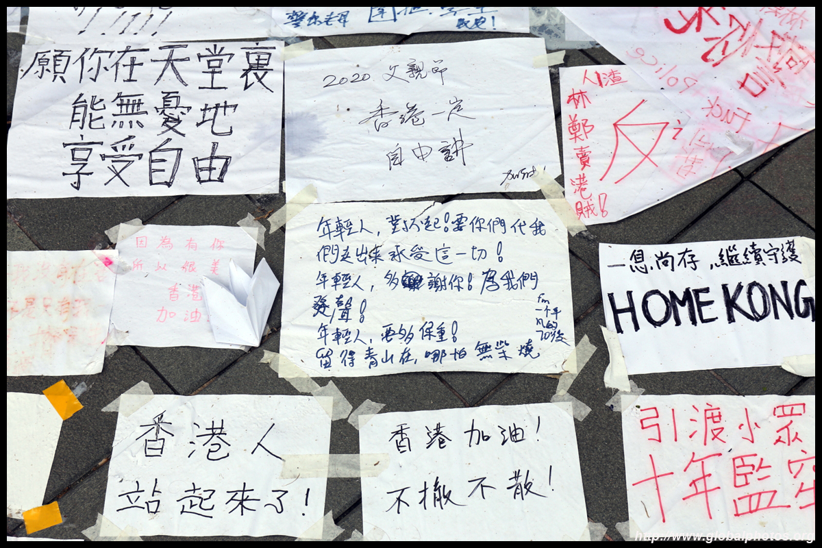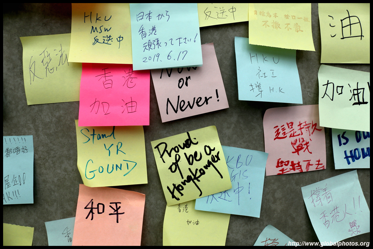 In the aftermath of the protests, banners remained at the Government Headquarters, including a "Lennon Wall" of people's thoughts on post-it notes. Stationery was available for you to post your thoughts as well. In addition to protesting against the bill, there was also a lot of anger at Carrie Lam and the police for using excessive force.