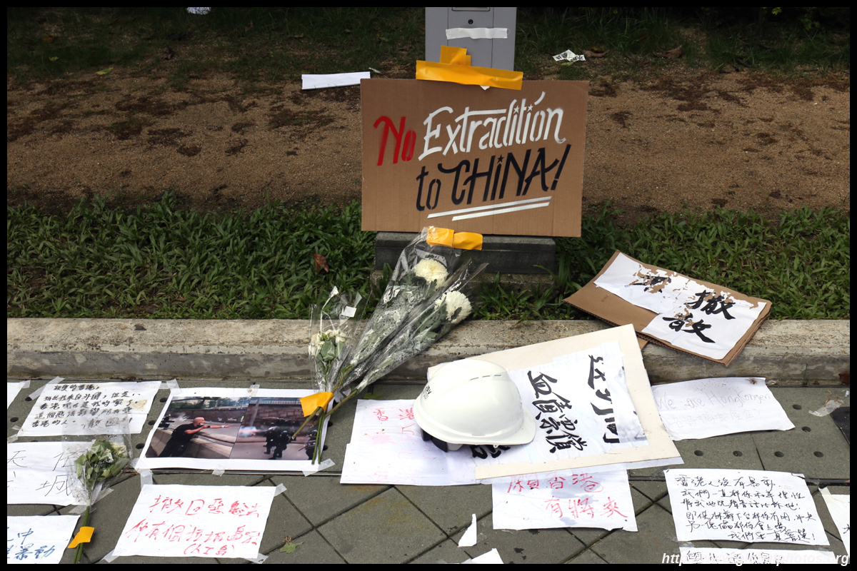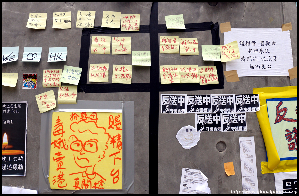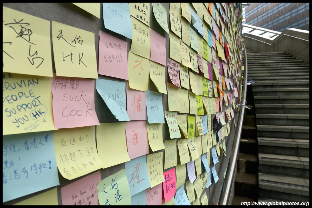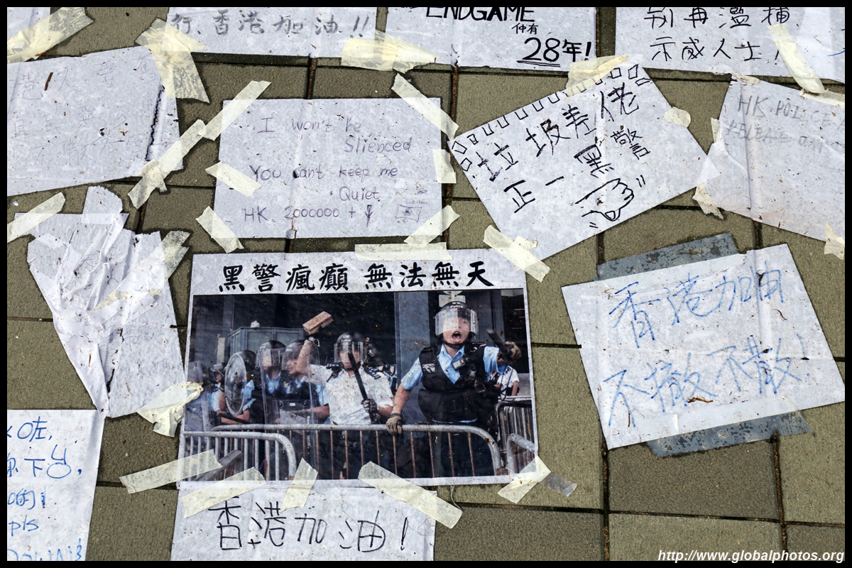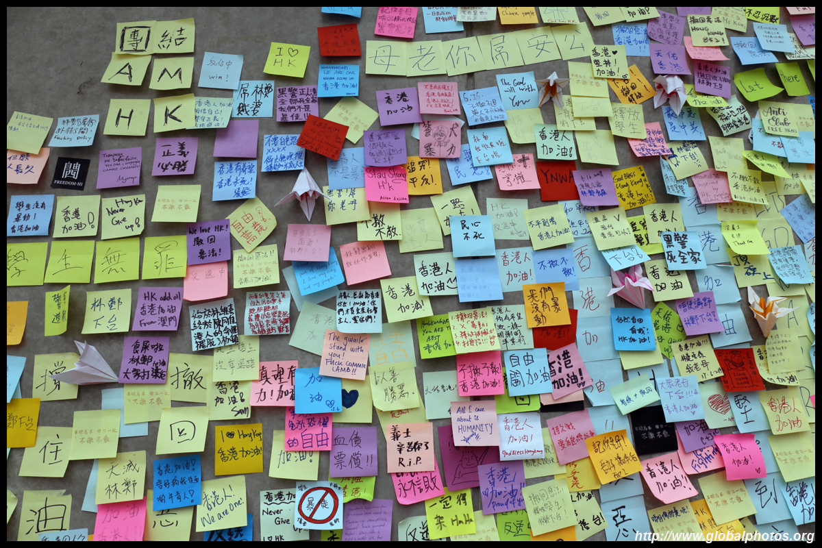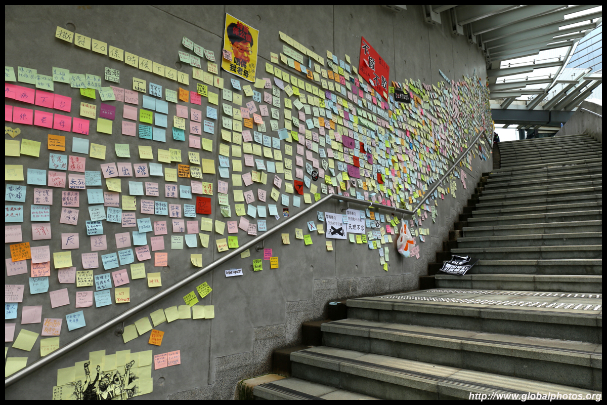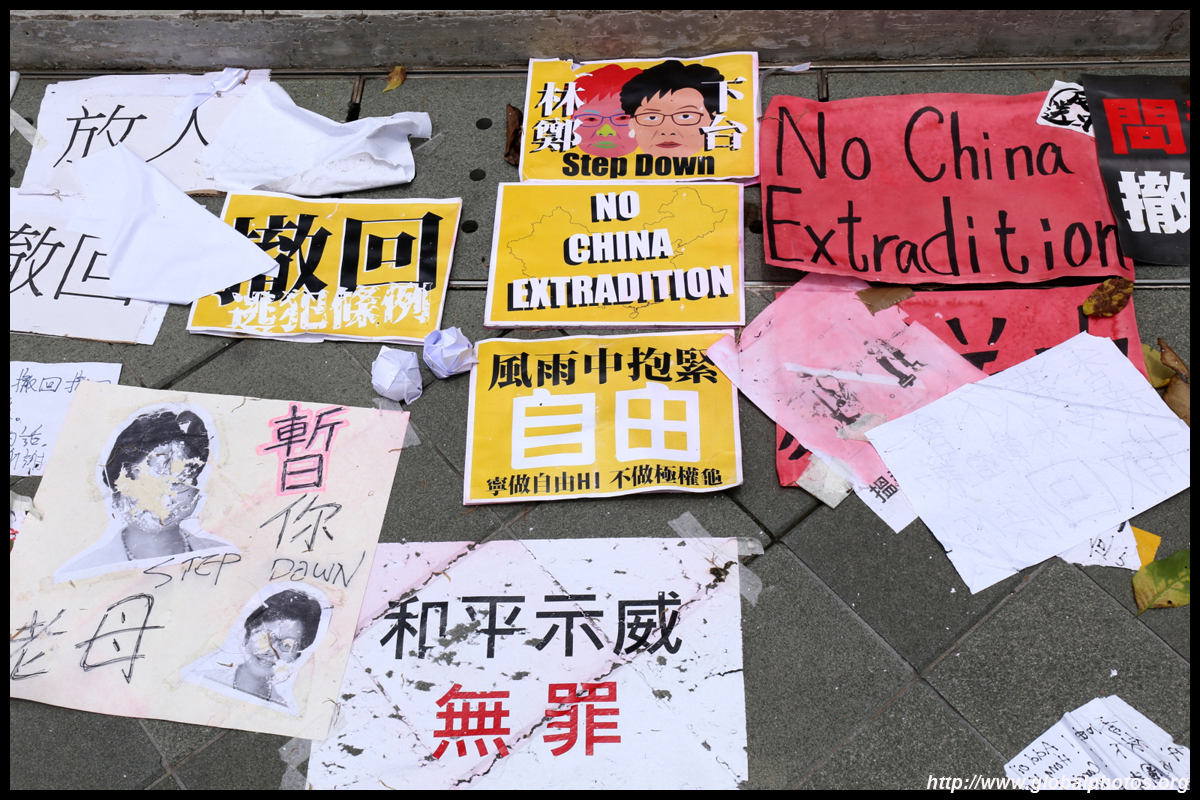In the aftermath of the protests, banners remained at the Government Headquarters, including a "Lennon Wall" of people's thoughts on post-it notes. Stationery was available for you to post your thoughts as well. In addition to protesting against the bill, there was also a lot of anger at Carrie Lam and the police for using excessive force.