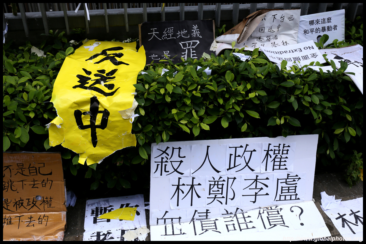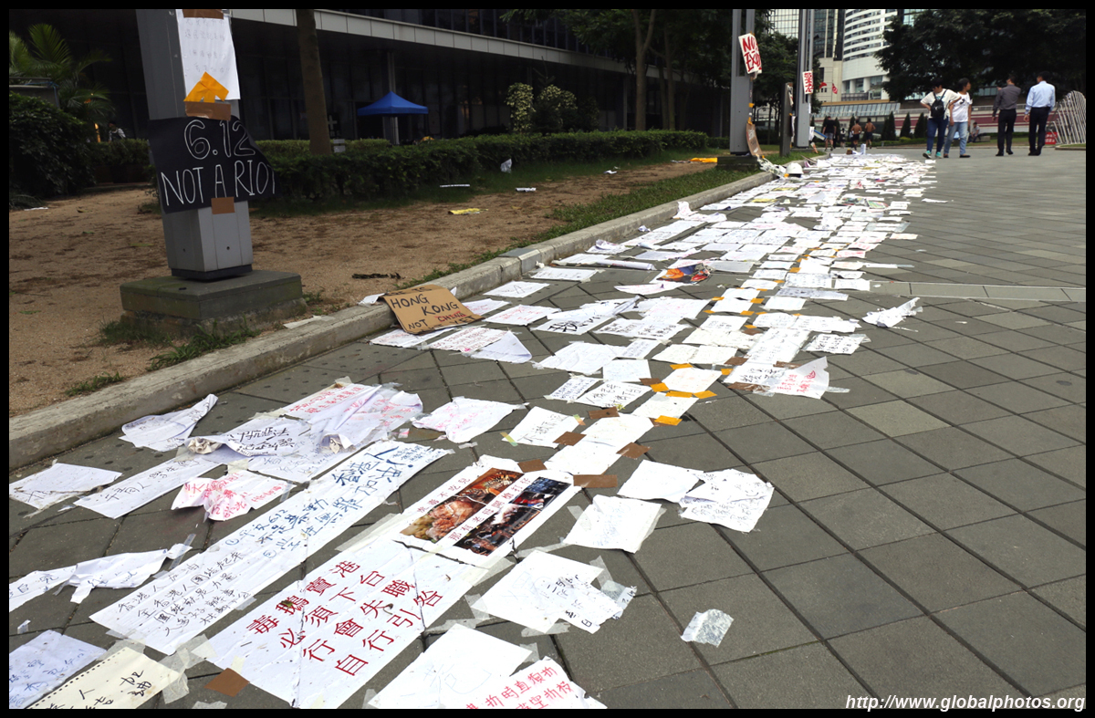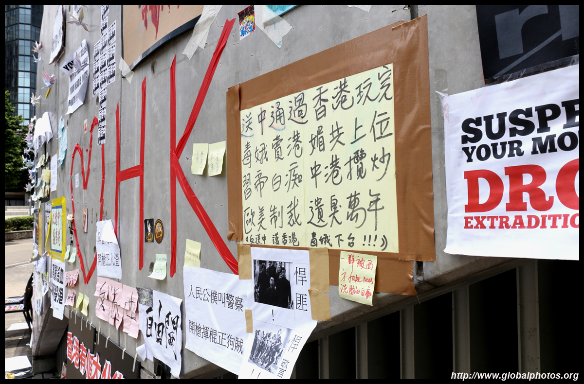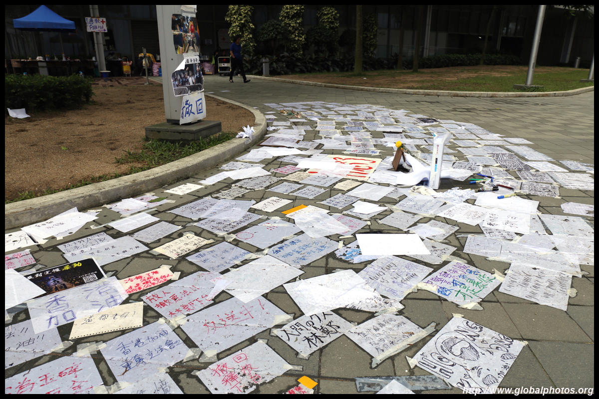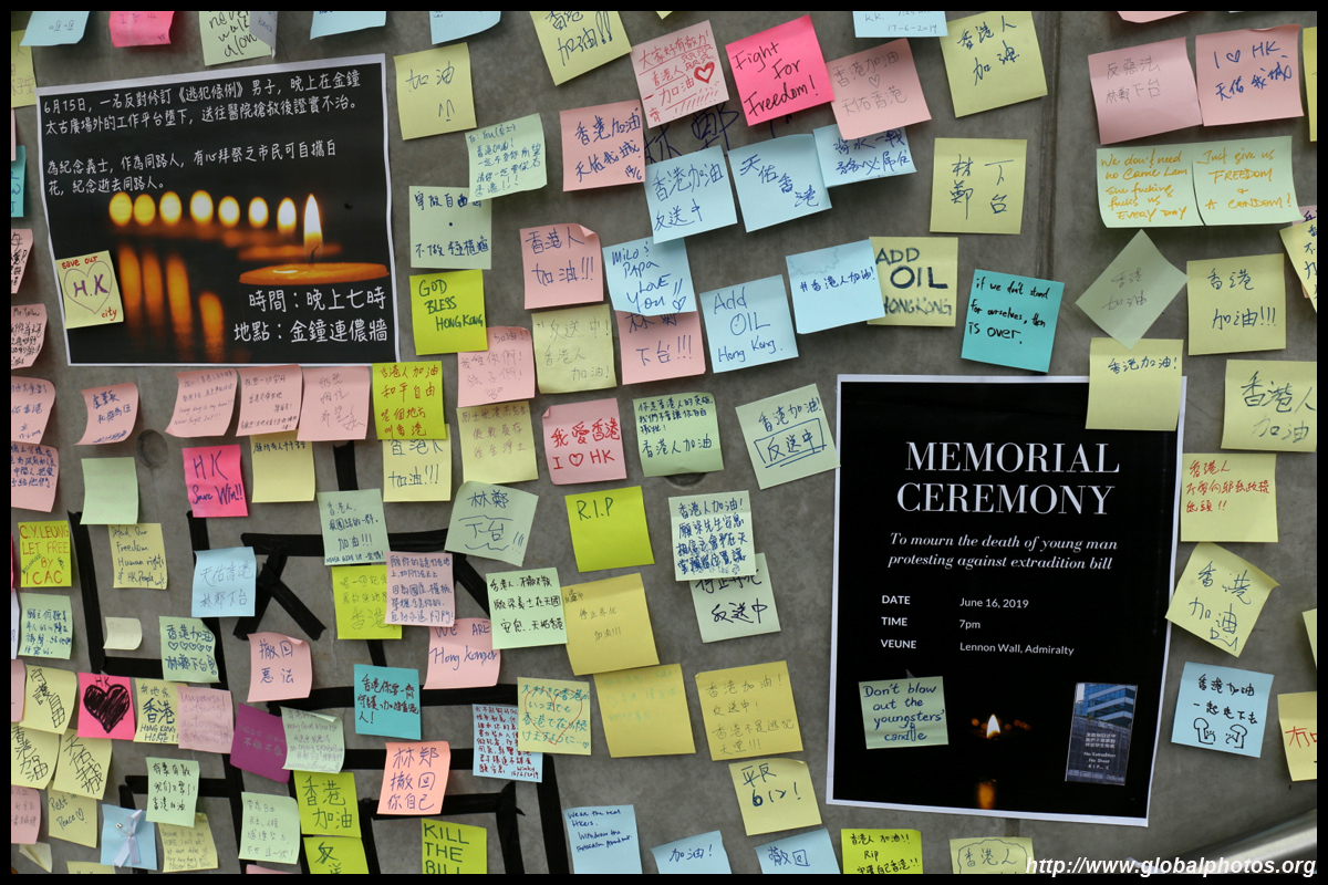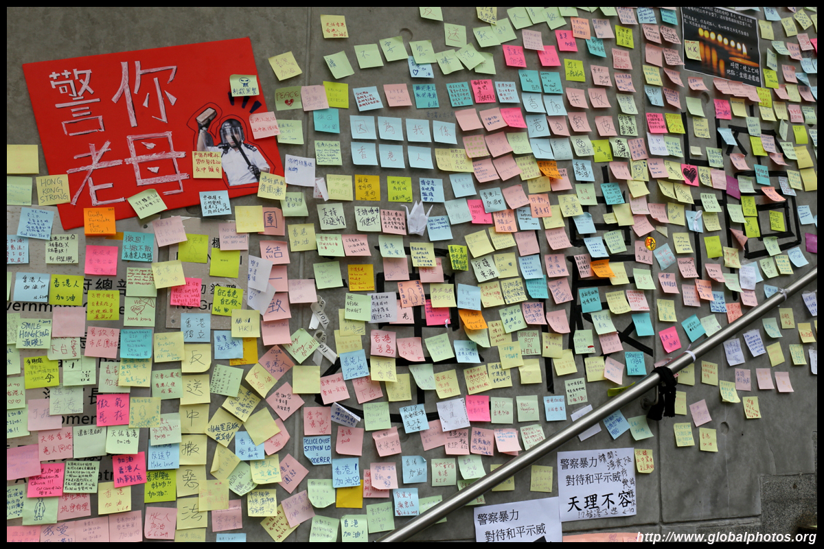 In the aftermath of the protests, banners remained at the Government Headquarters, including a "Lennon Wall" of people's thoughts on post-it notes. Stationery was available for you to post your thoughts as well. In addition to protesting against the bill, there was also a lot of anger at Carrie Lam and the police for using excessive force.