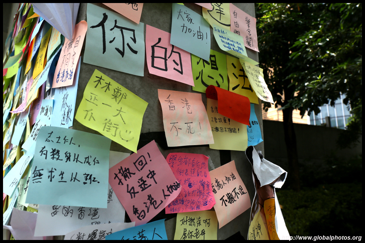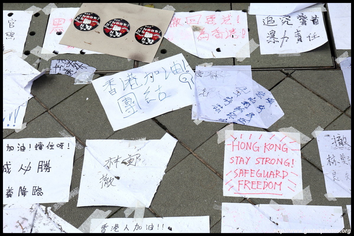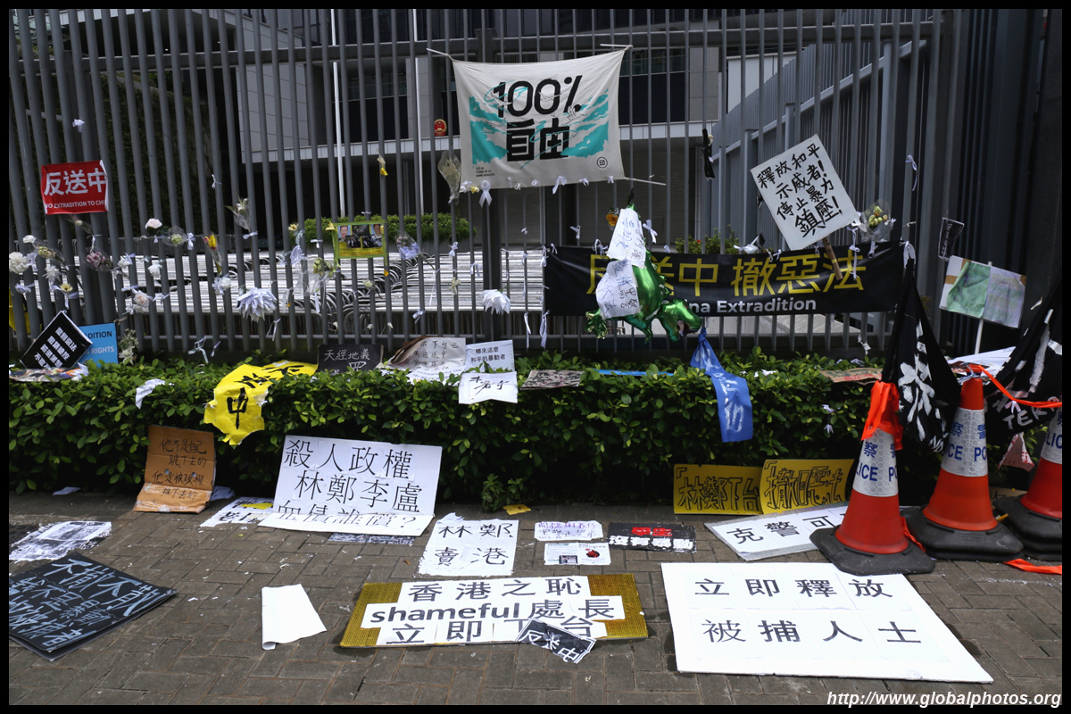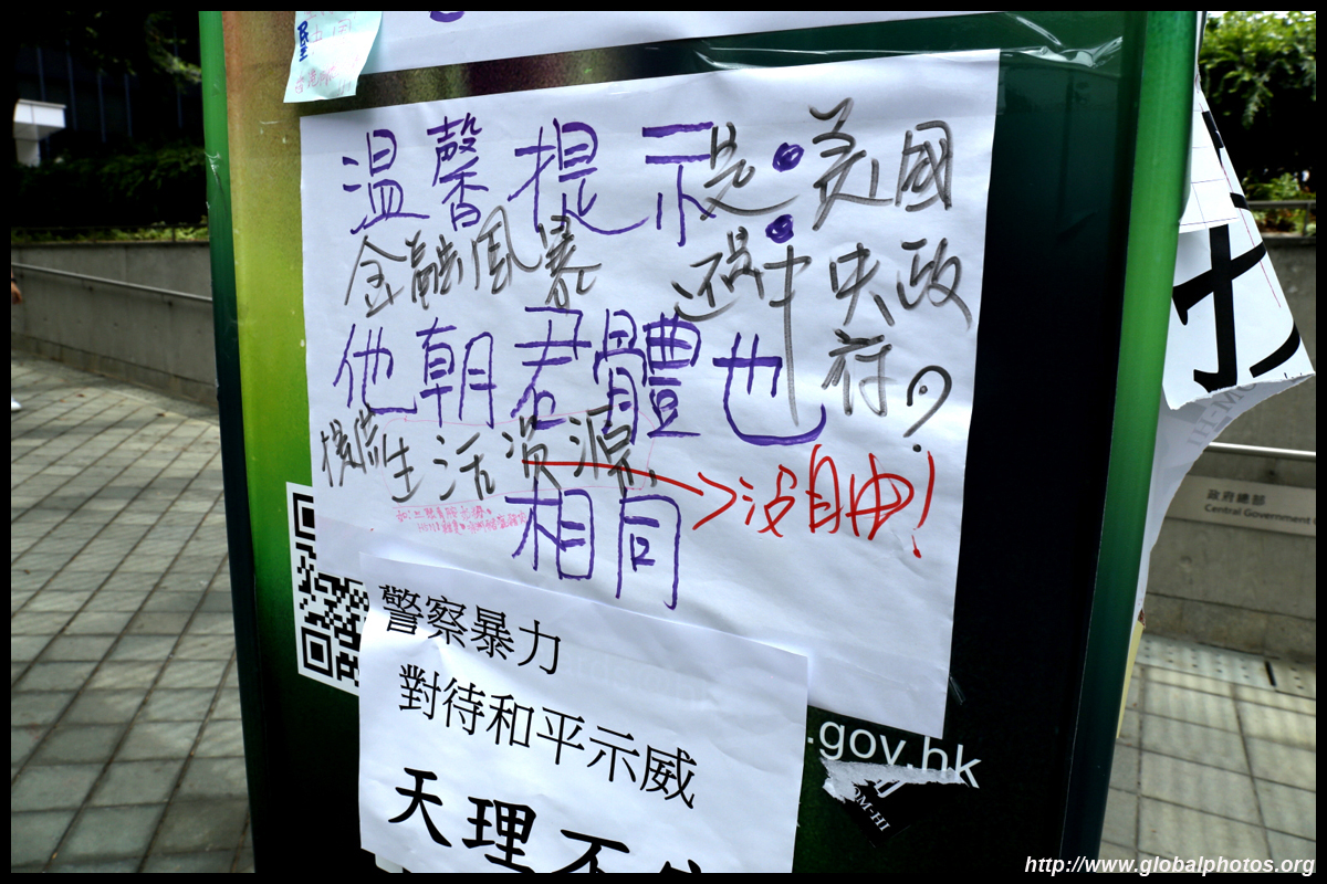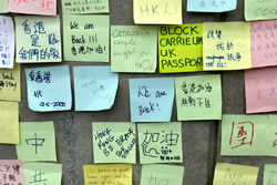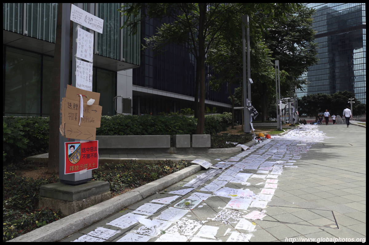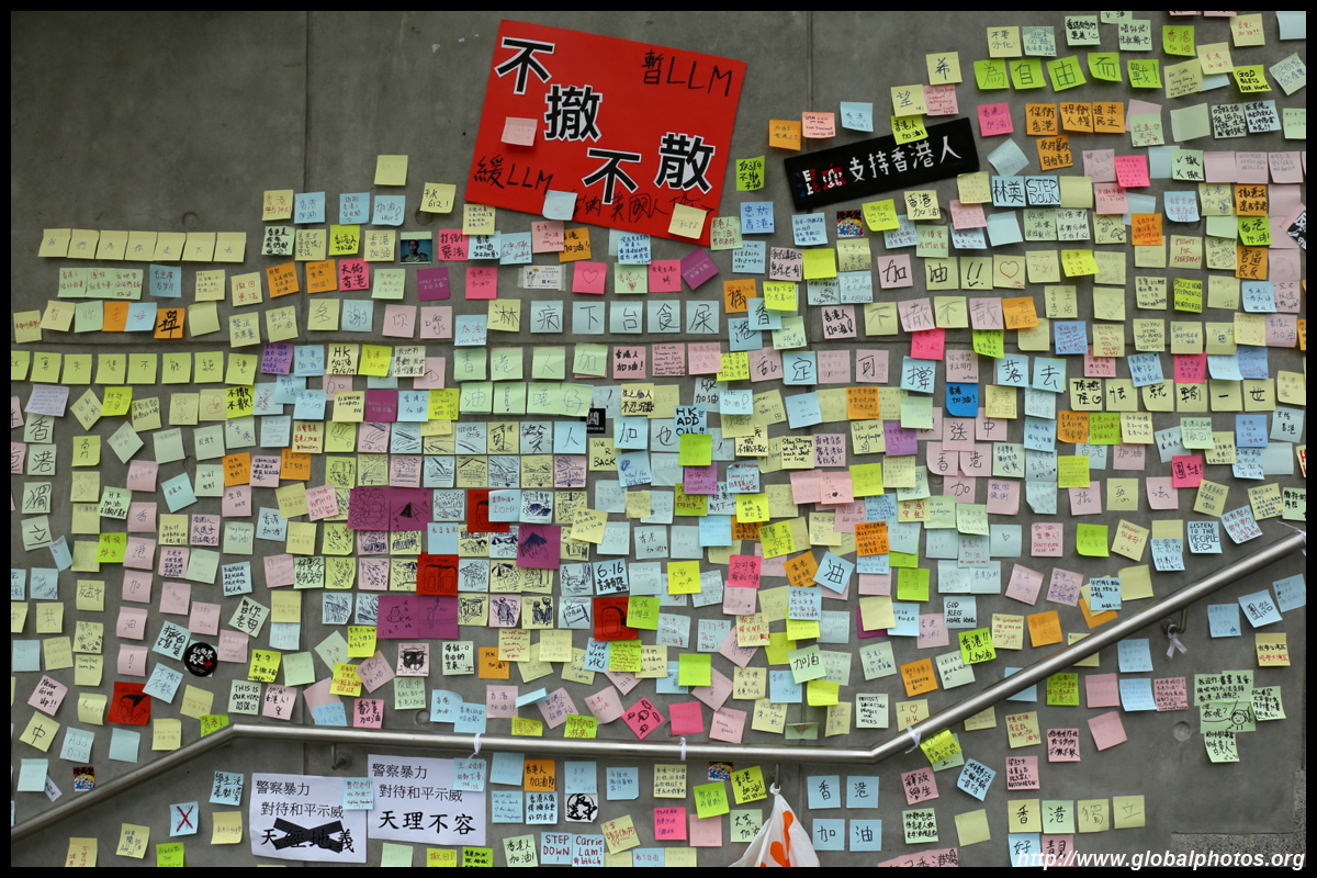 In the aftermath of the protests, banners remained at the Government Headquarters, including a "Lennon Wall" of people's thoughts on post-it notes. Stationery was available for you to post your thoughts as well. In addition to protesting against the bill, there was also a lot of anger at Carrie Lam and the police for using excessive force.