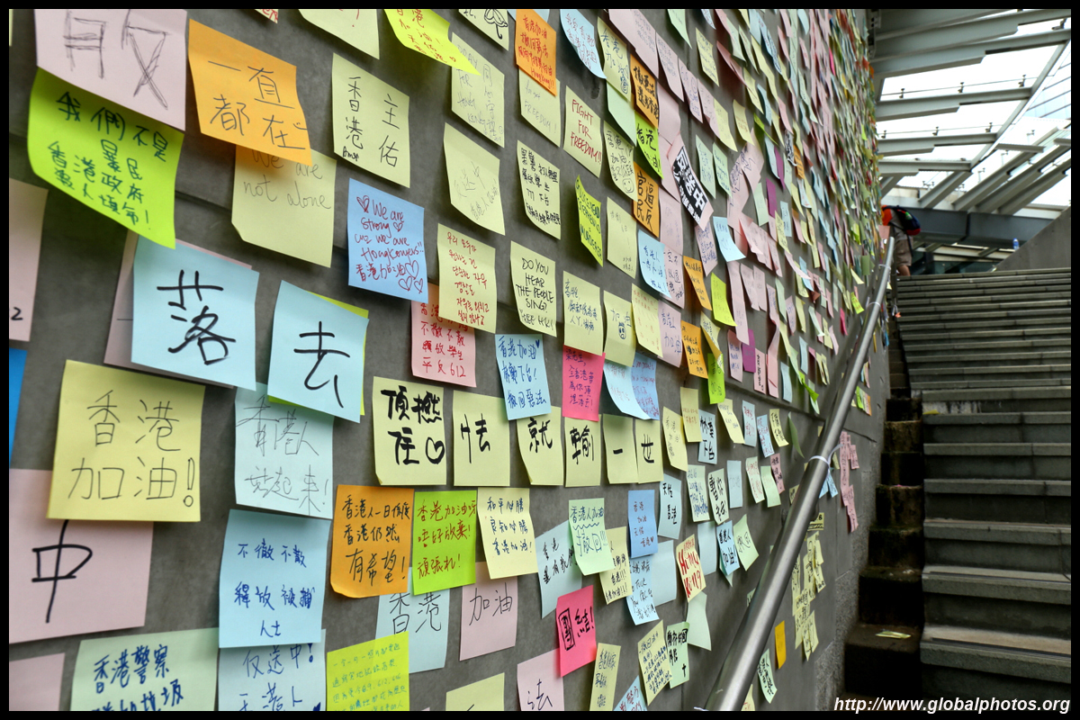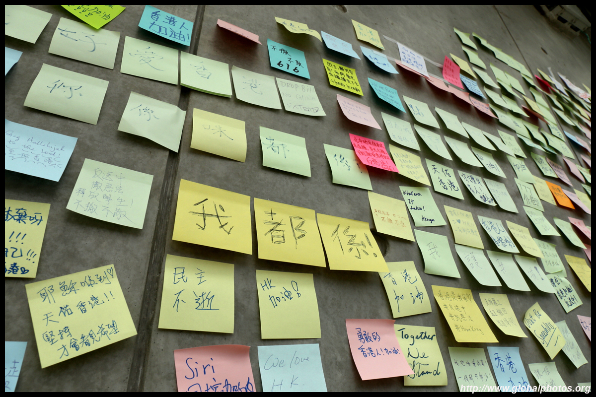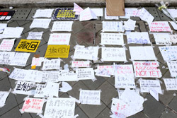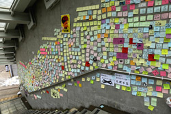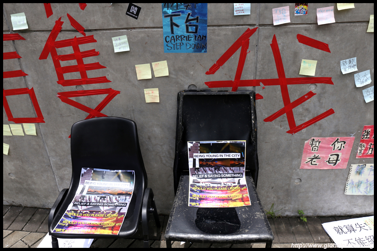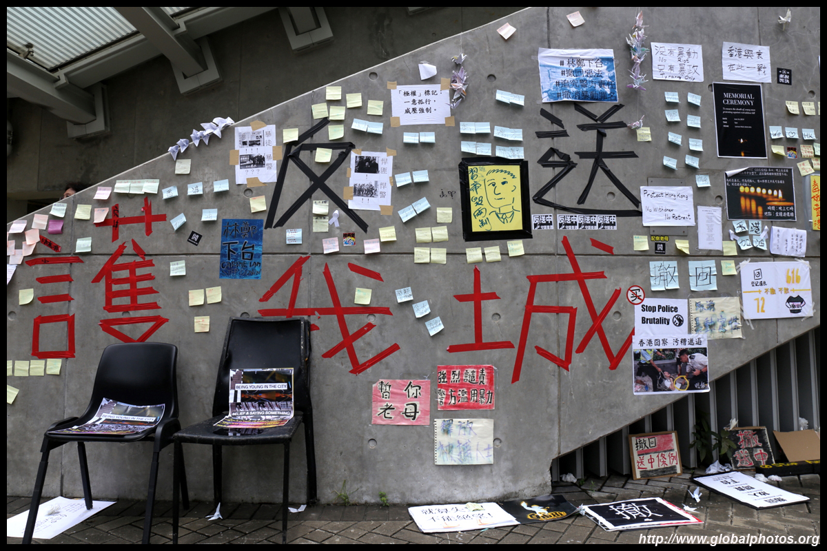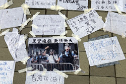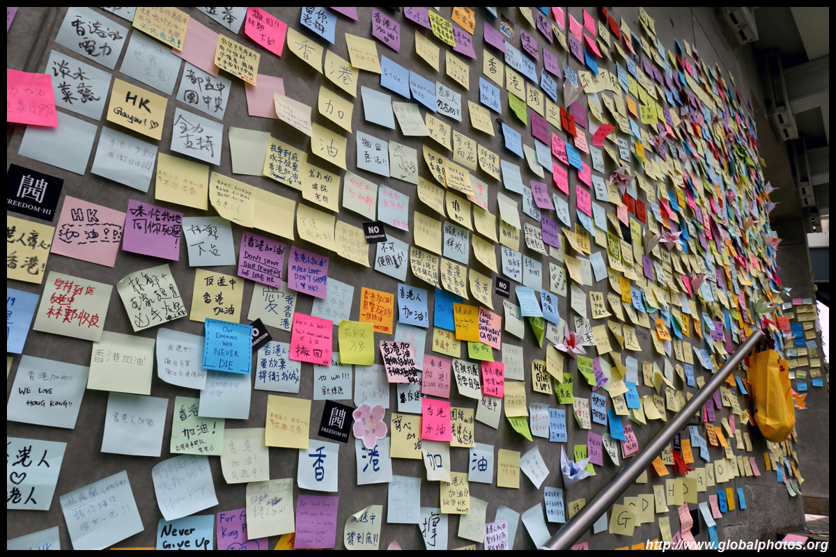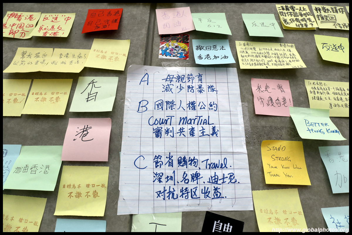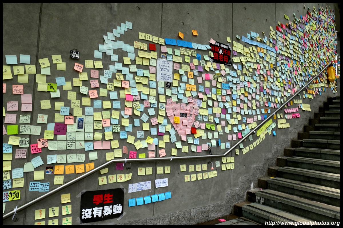 In the aftermath of the protests, banners remained at the Government Headquarters, including a "Lennon Wall" of people's thoughts on post-it notes. Stationery was available for you to post your thoughts as well. In addition to protesting against the bill, there was also a lot of anger at Carrie Lam and the police for using excessive force.