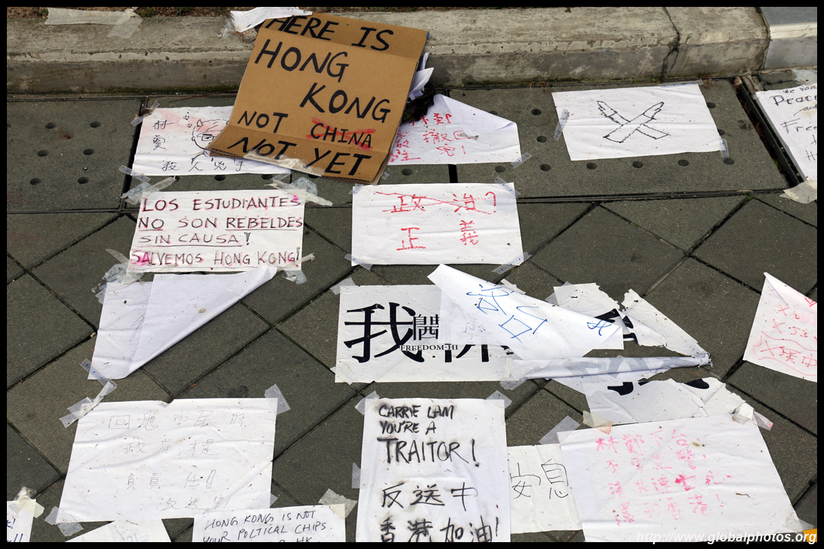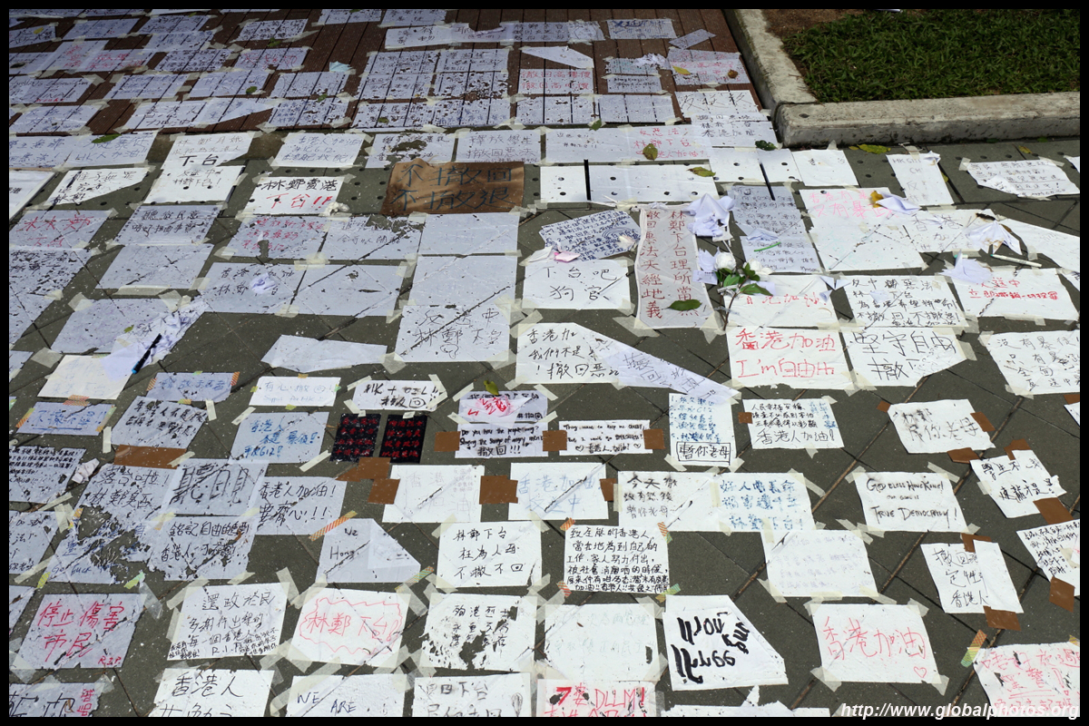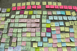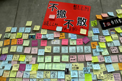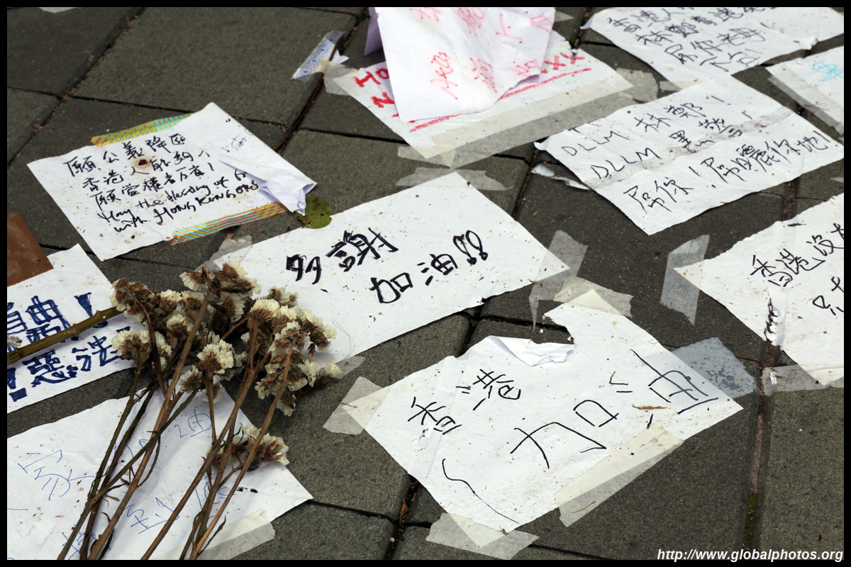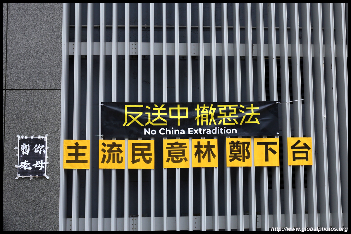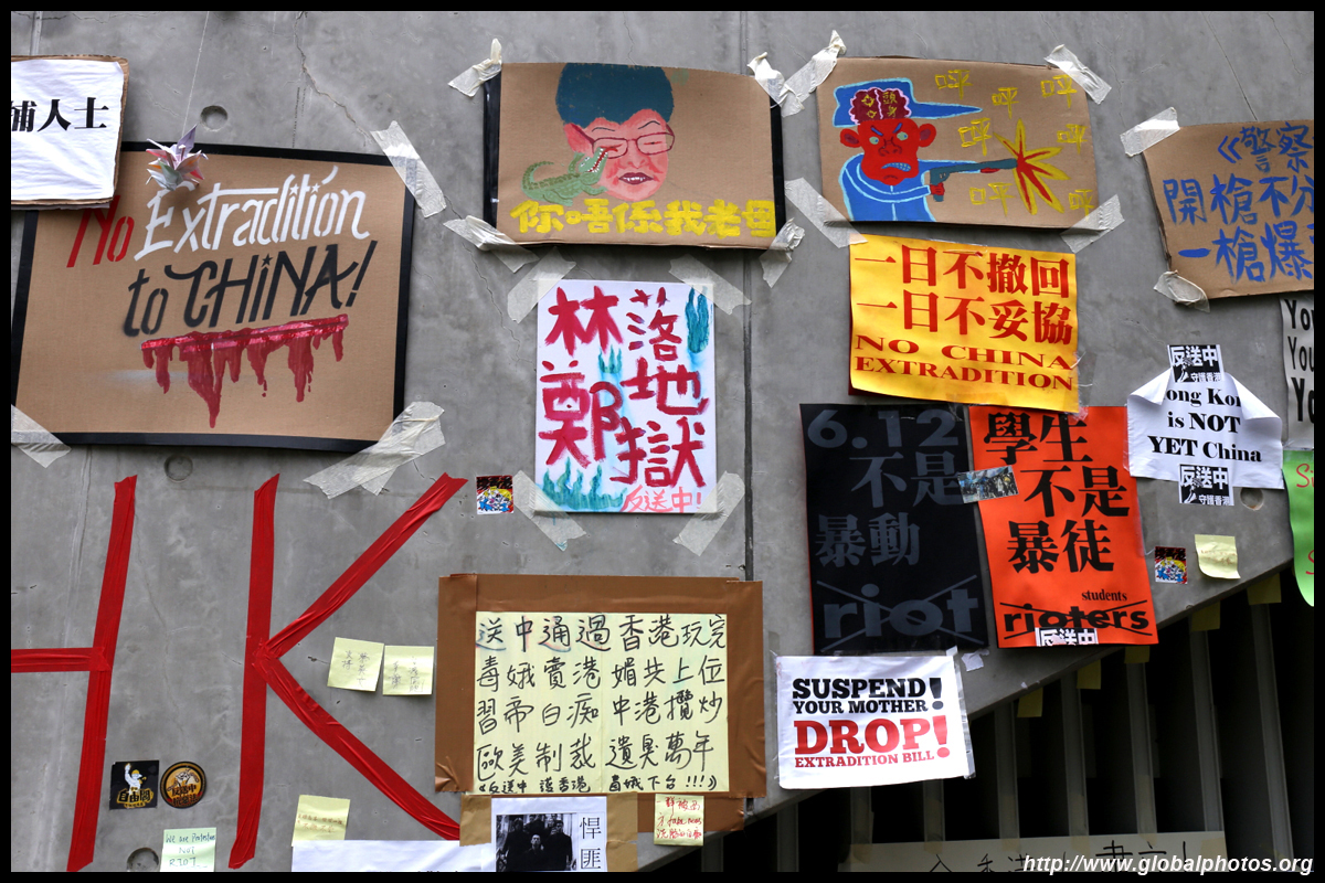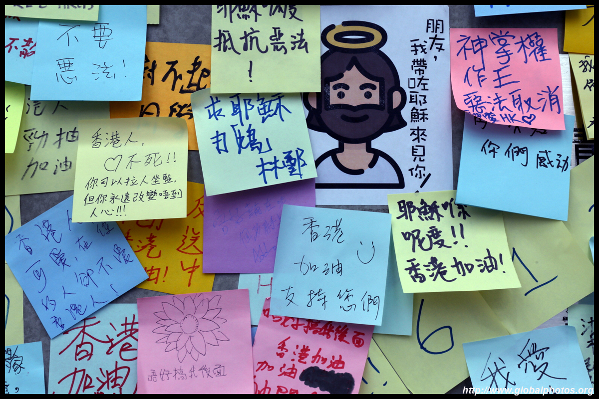 In the aftermath of the protests, banners remained at the Government Headquarters, including a "Lennon Wall" of people's thoughts on post-it notes. Stationery was available for you to post your thoughts as well. In addition to protesting against the bill, there was also a lot of anger at Carrie Lam and the police for using excessive force.
