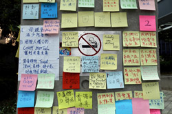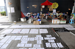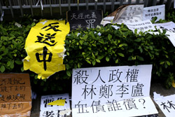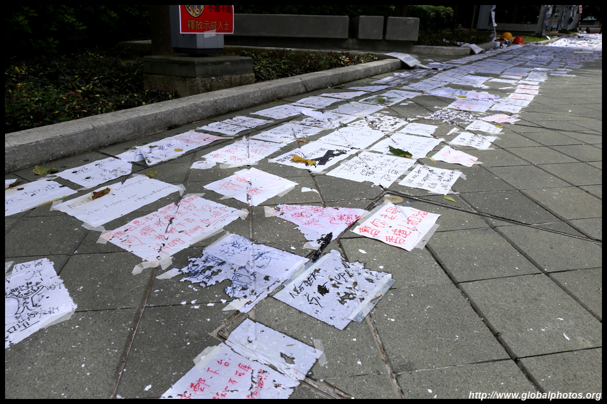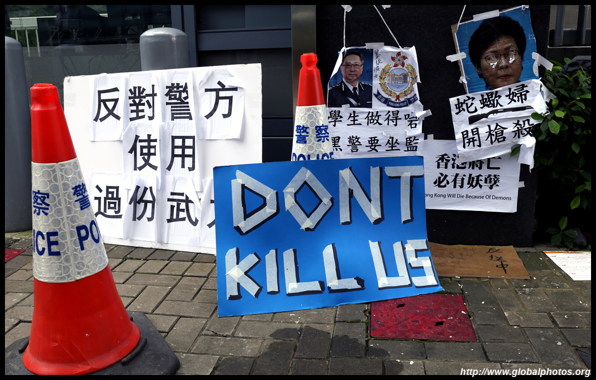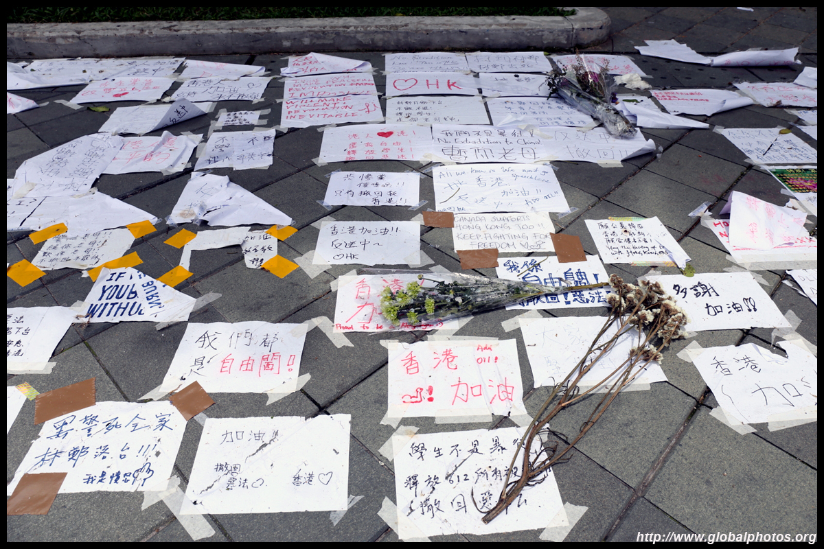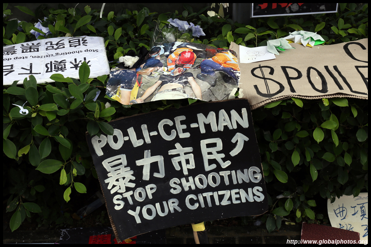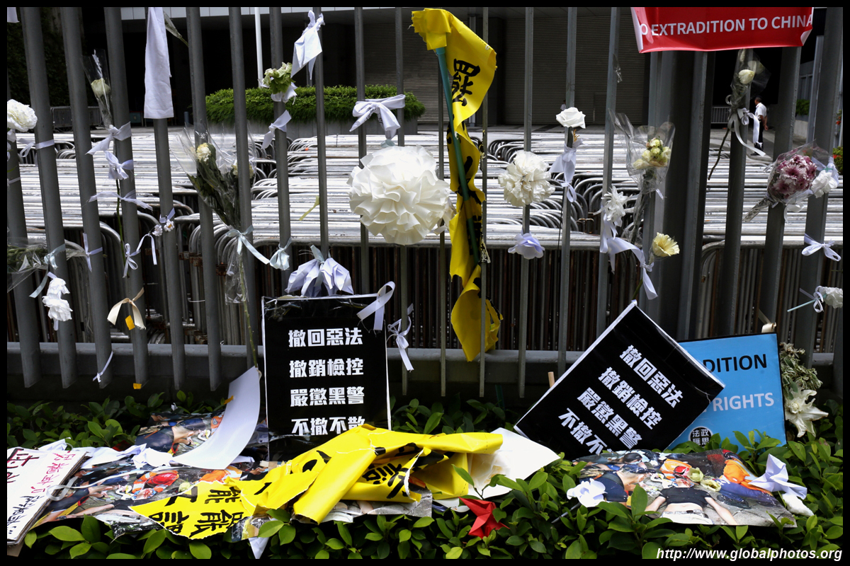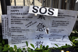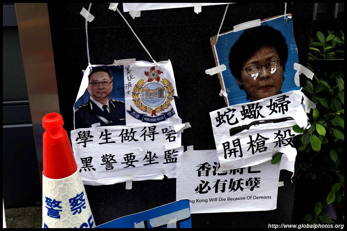 In the aftermath of the protests, banners remained at the Government Headquarters, including a "Lennon Wall" of people's thoughts on post-it notes. Stationery was available for you to post your thoughts as well. In addition to protesting against the bill, there was also a lot of anger at Carrie Lam and the police for using excessive force.