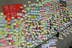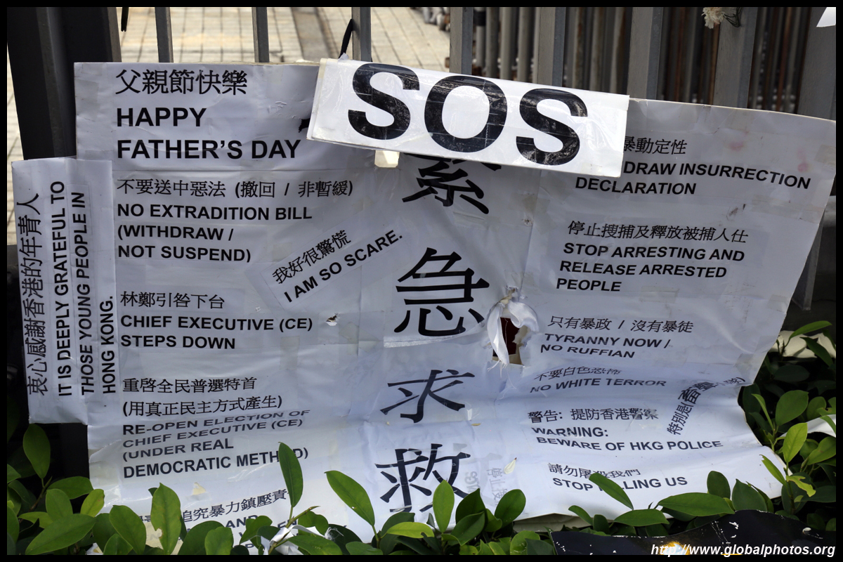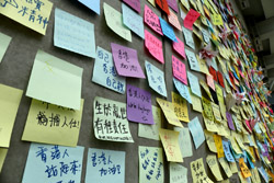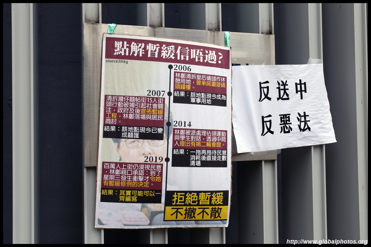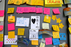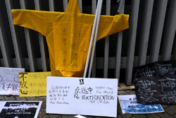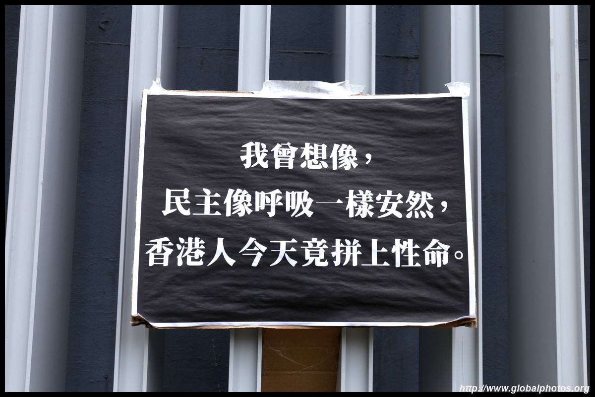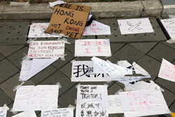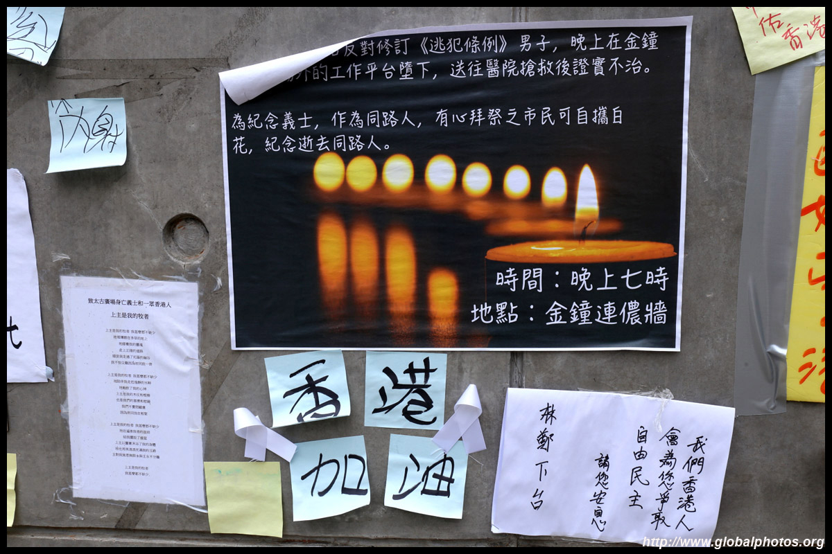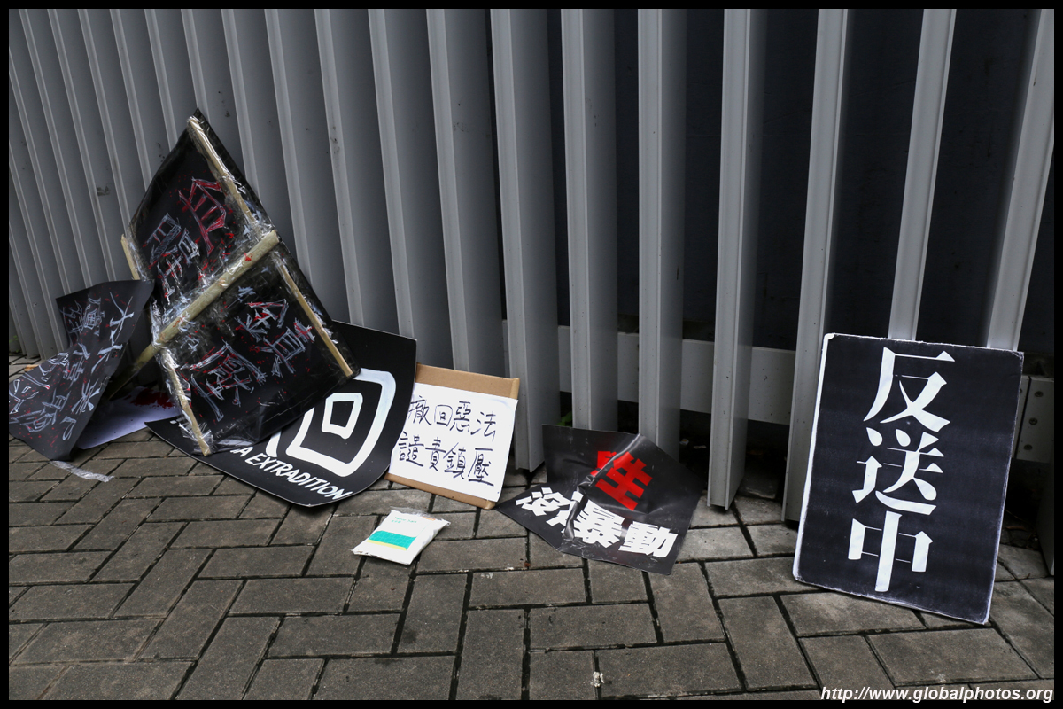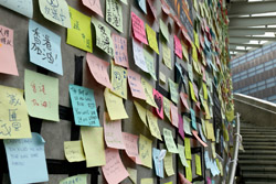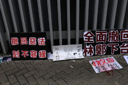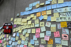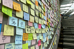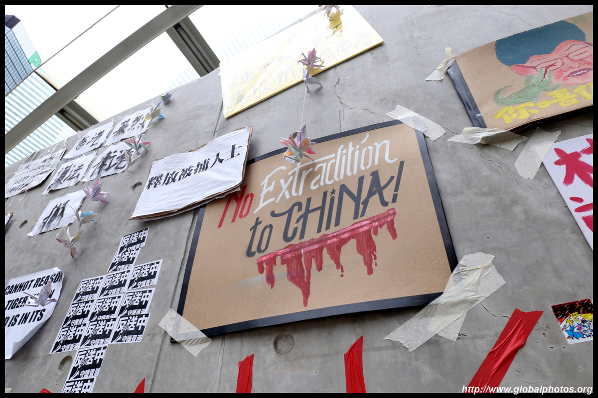 In the aftermath of the protests, banners remained at the Government Headquarters, including a "Lennon Wall" of people's thoughts on post-it notes. Stationery was available for you to post your thoughts as well. In addition to protesting against the bill, there was also a lot of anger at Carrie Lam and the police for using excessive force.