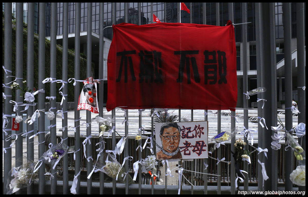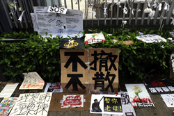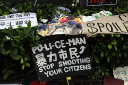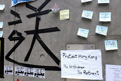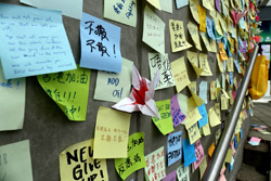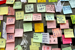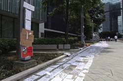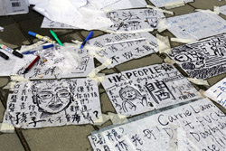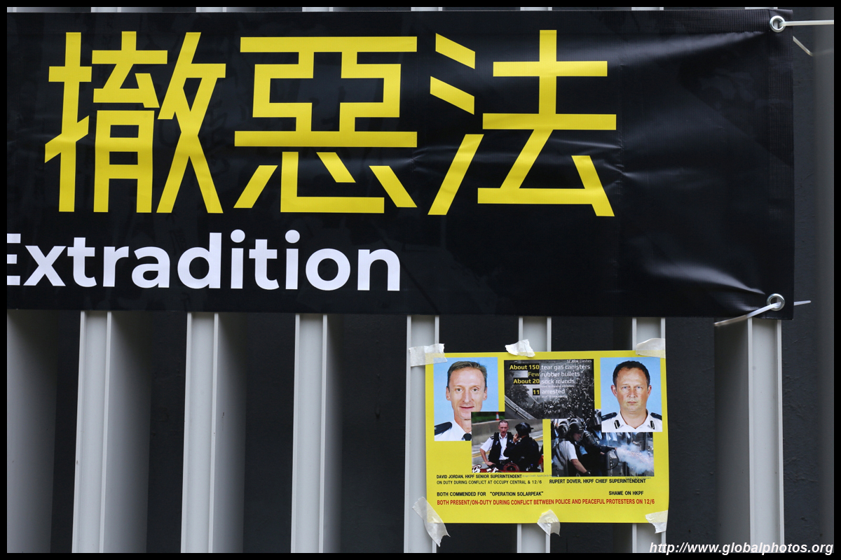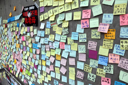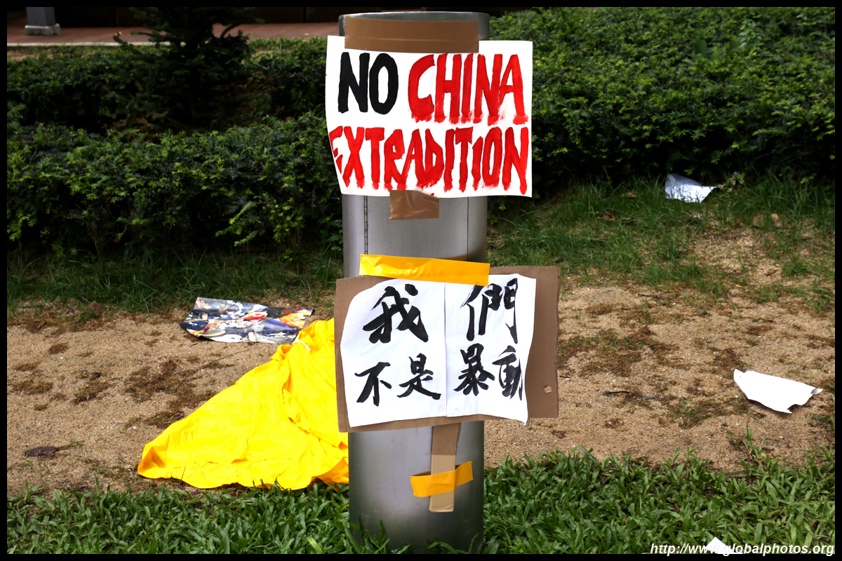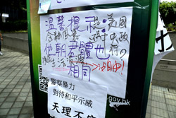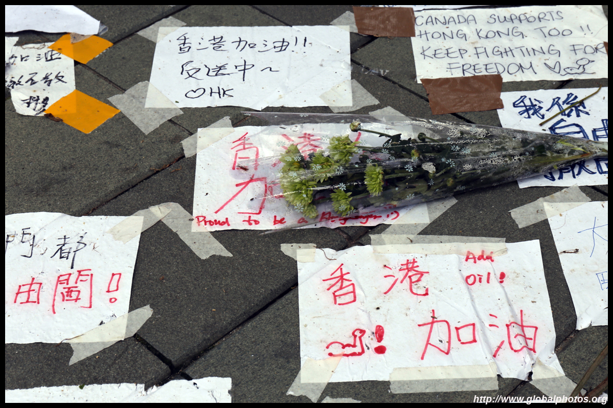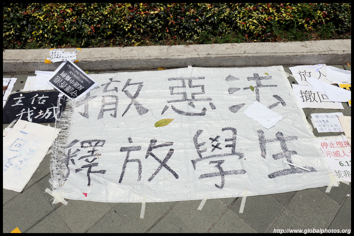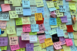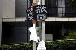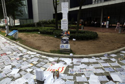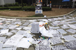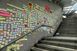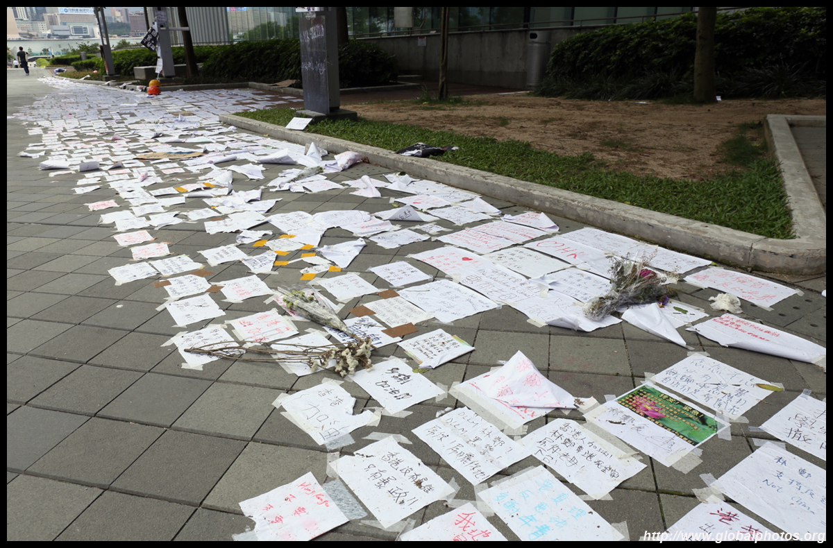 In the aftermath of the protests, banners remained at the Government Headquarters, including a "Lennon Wall" of people's thoughts on post-it notes. Stationery was available for you to post your thoughts as well. In addition to protesting against the bill, there was also a lot of anger at Carrie Lam and the police for using excessive force.