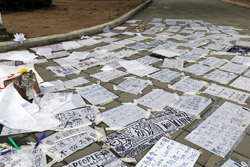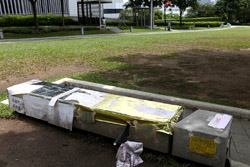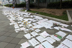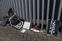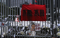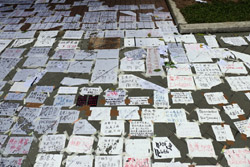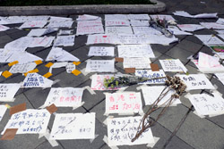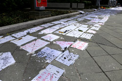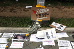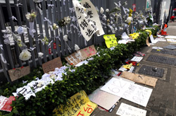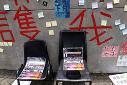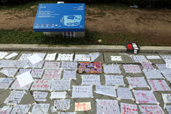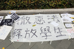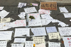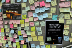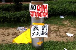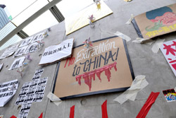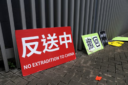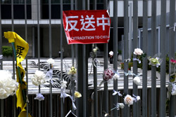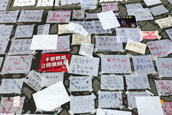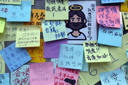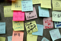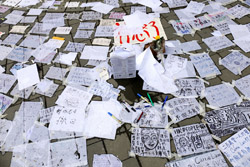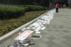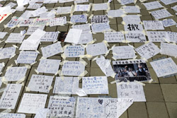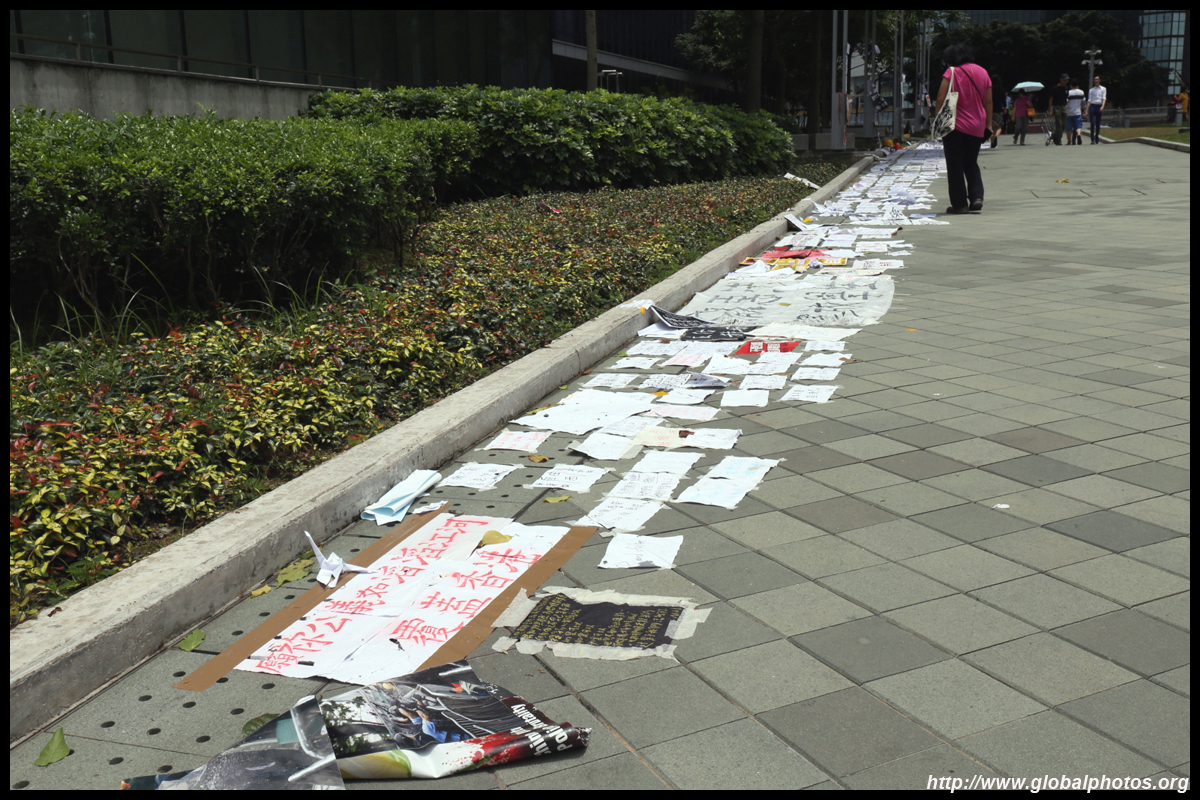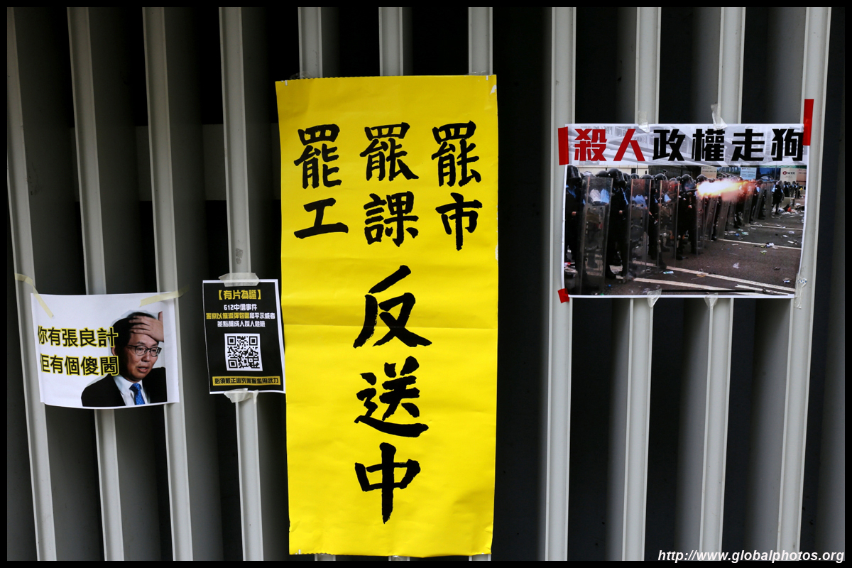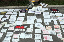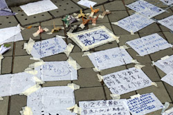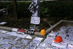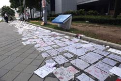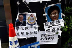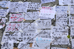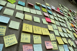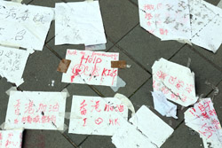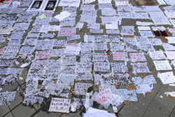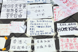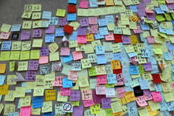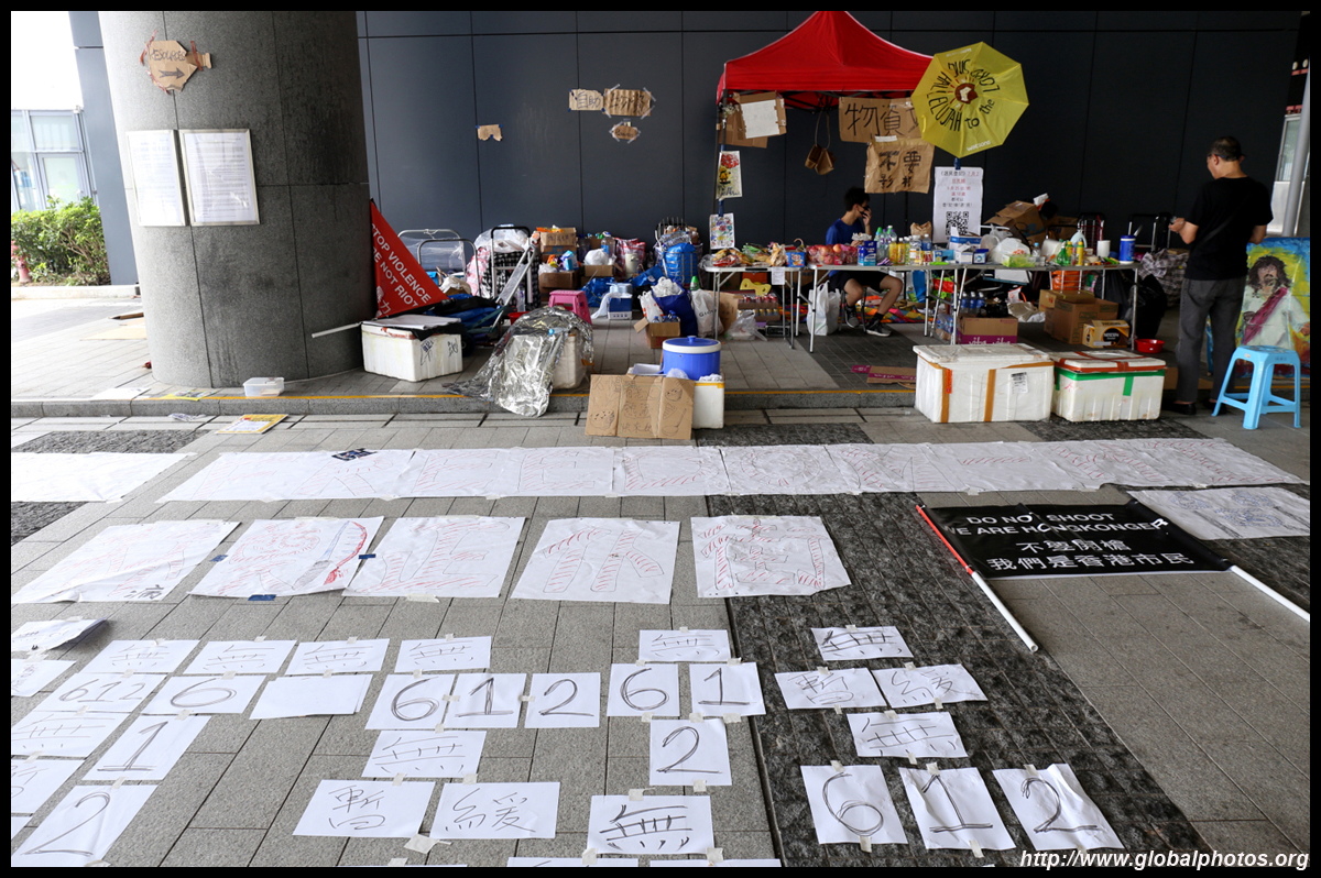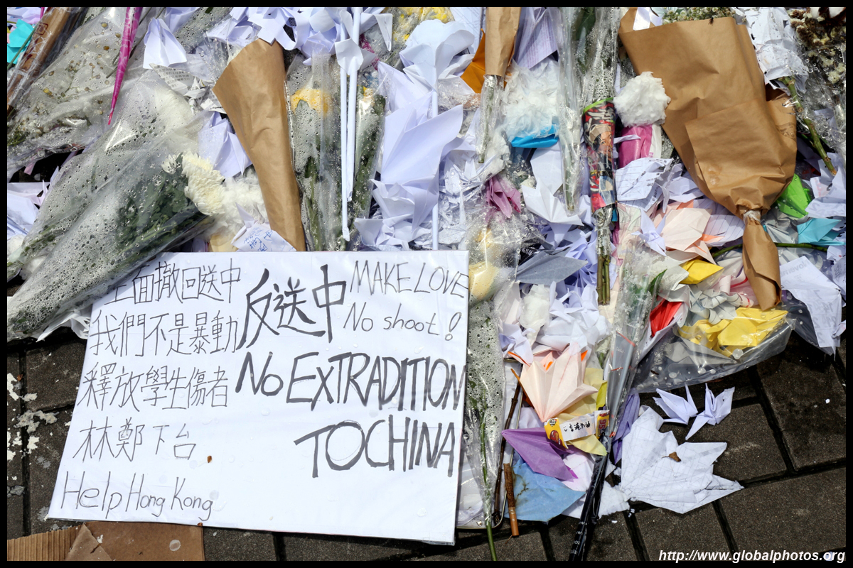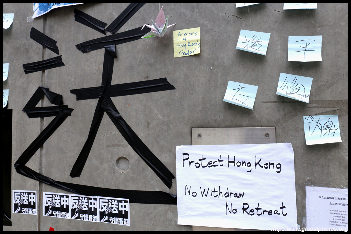 In the aftermath of the protests, banners remained at the Government Headquarters, including a "Lennon Wall" of people's thoughts on post-it notes. Stationery was available for you to post your thoughts as well. In addition to protesting against the bill, there was also a lot of anger at Carrie Lam and the police for using excessive force.