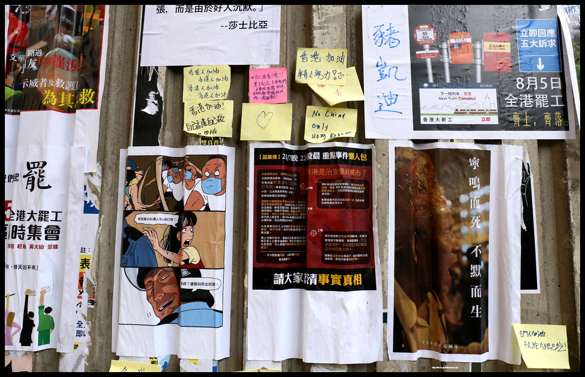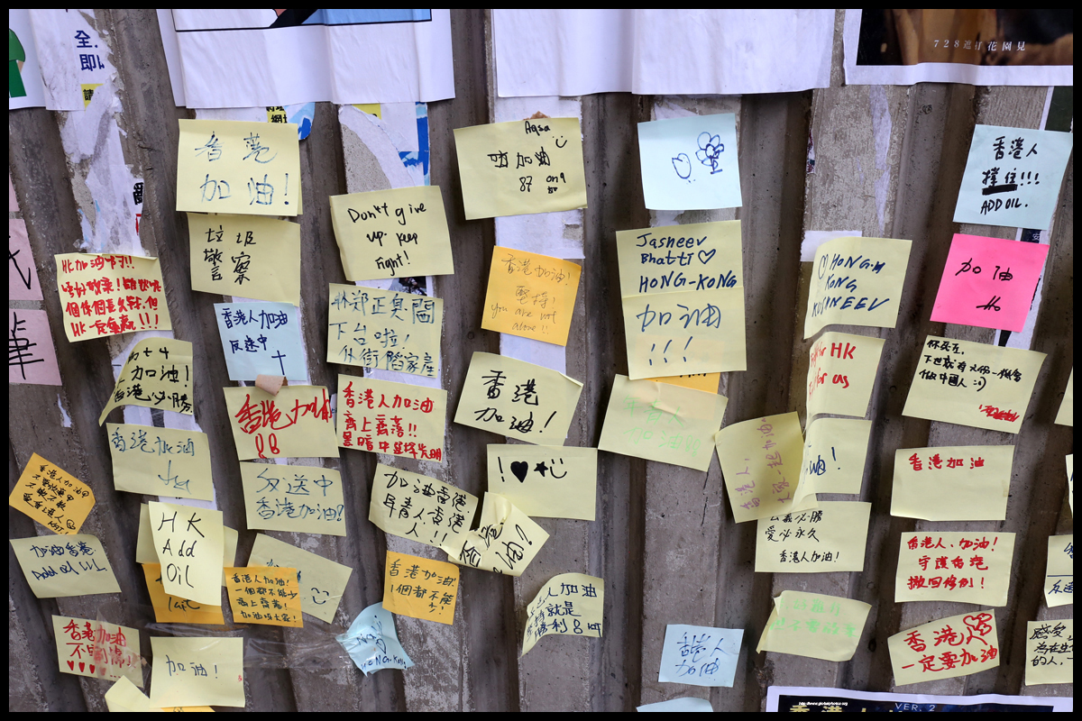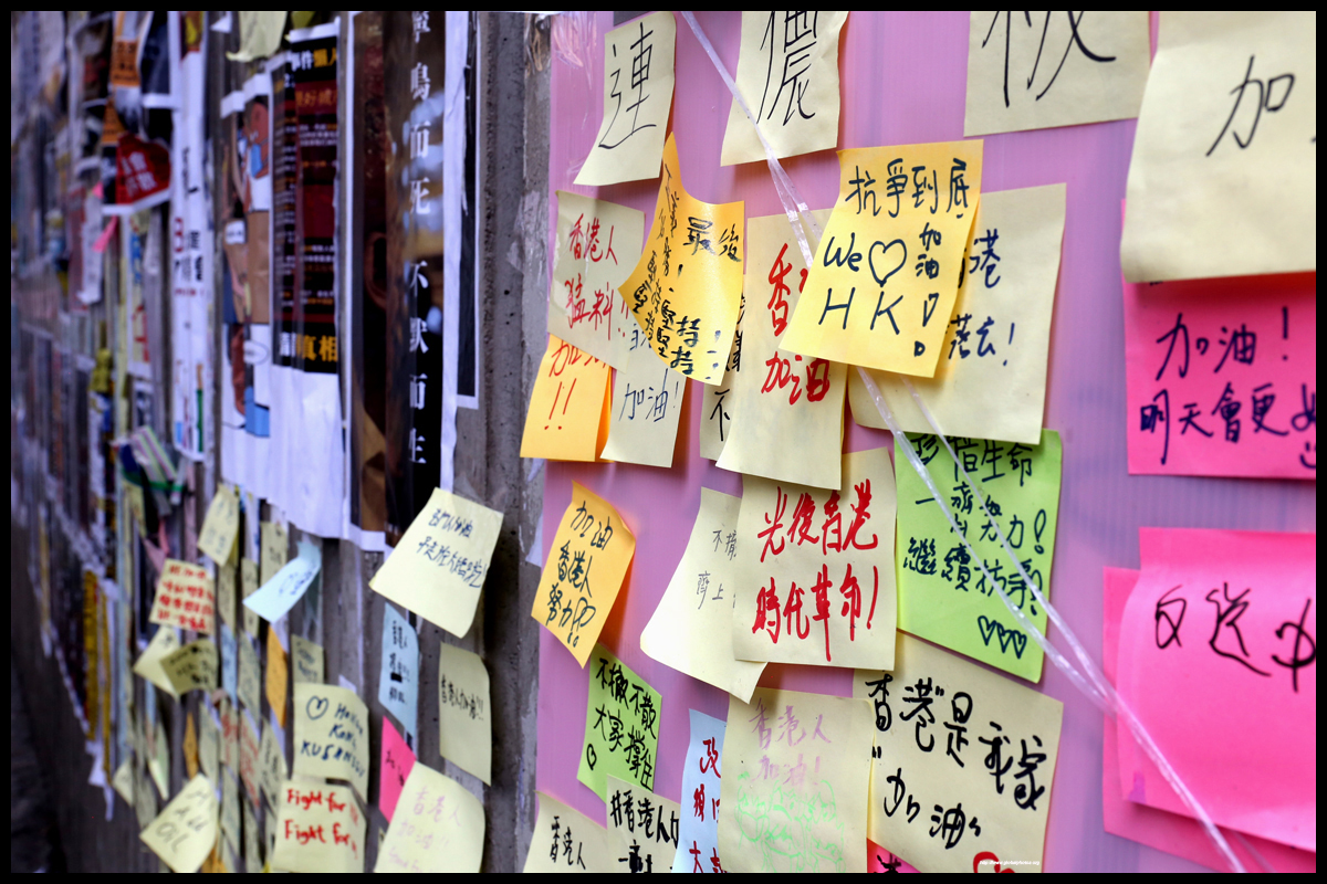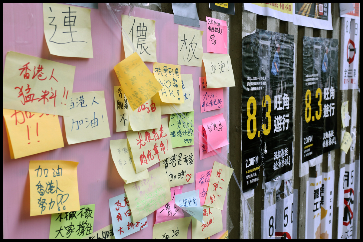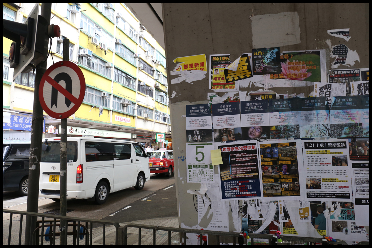 Tai Kok Tsui's Lennon Wall is located in an underpass just outside New Kowloon Plaza.