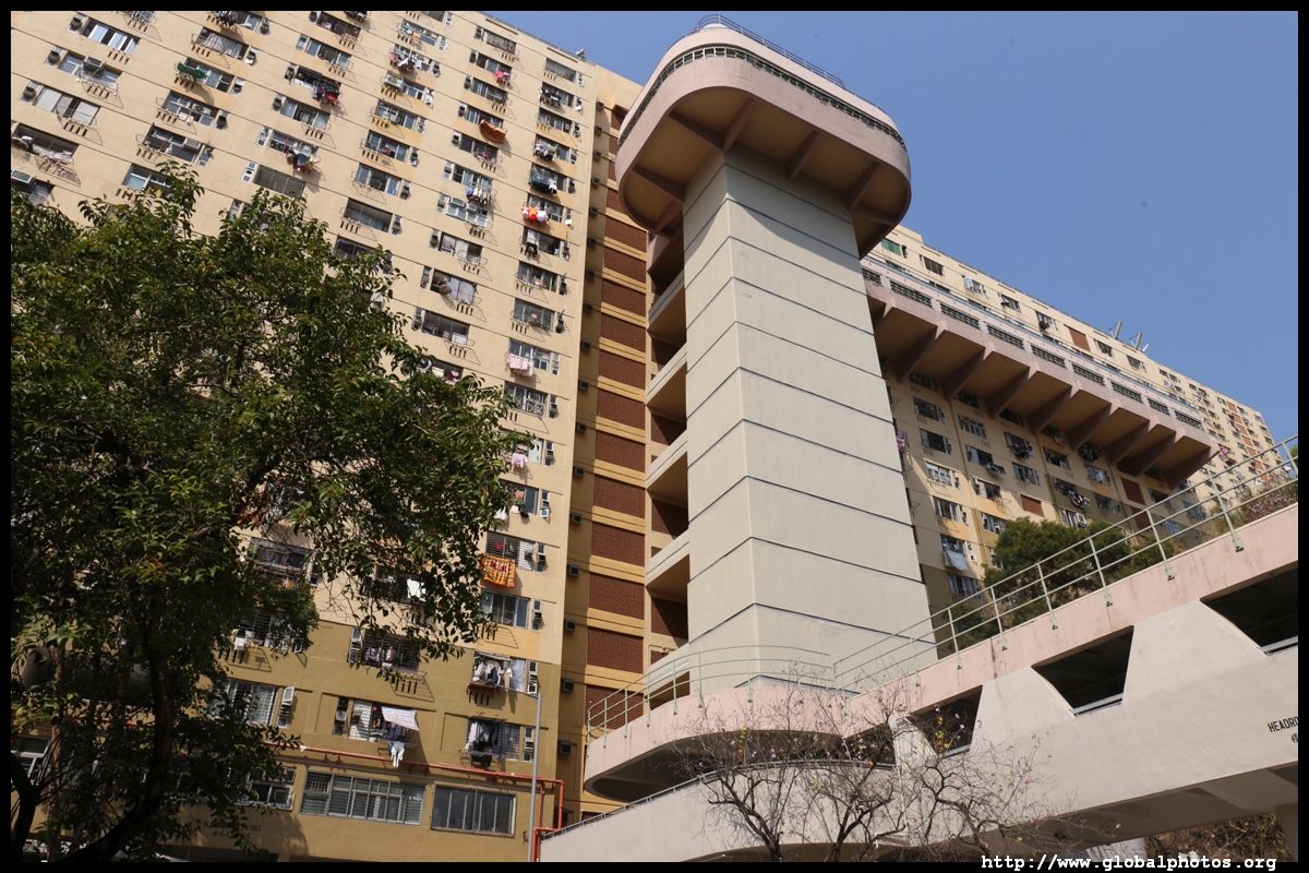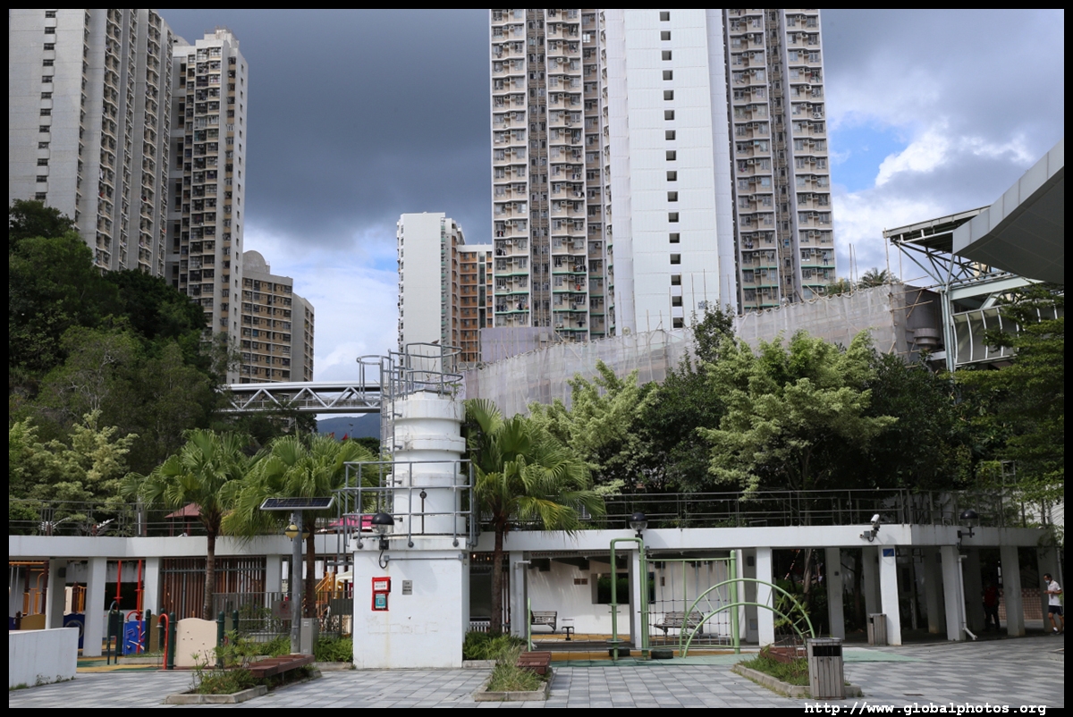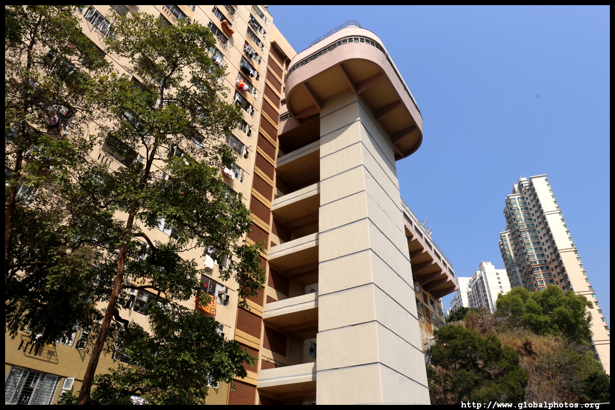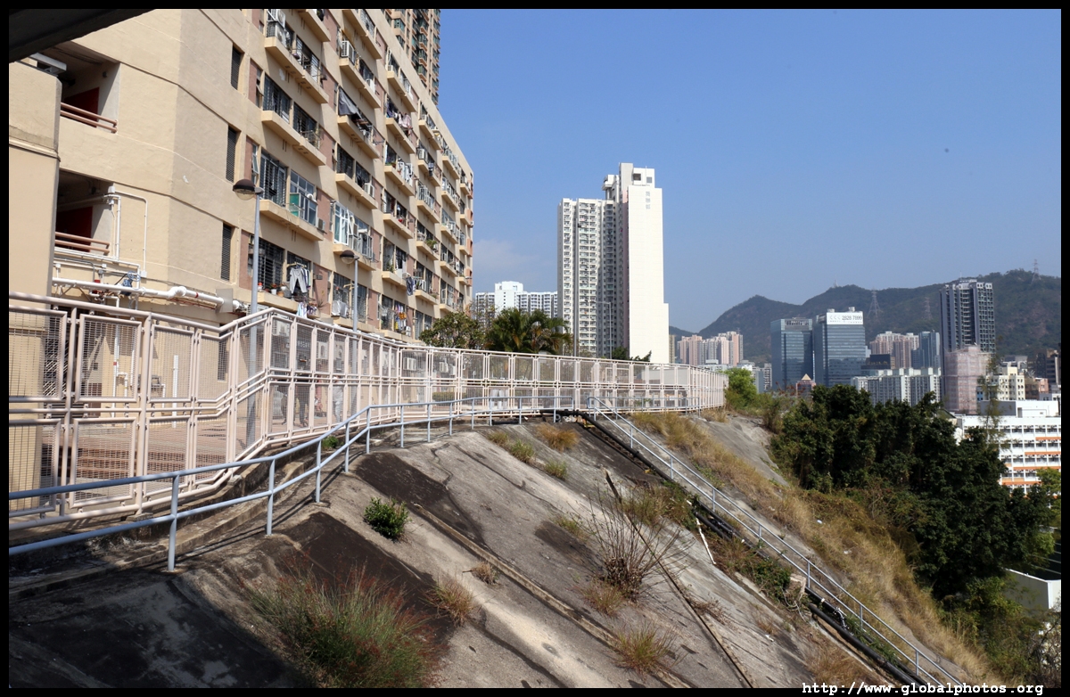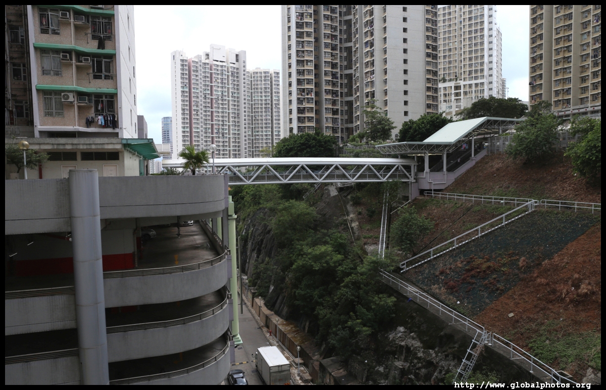 Parts of Kwai Shing East Estate are newer blocks, which are connected via elevators to its uphill counterparts.