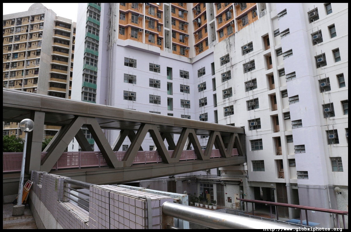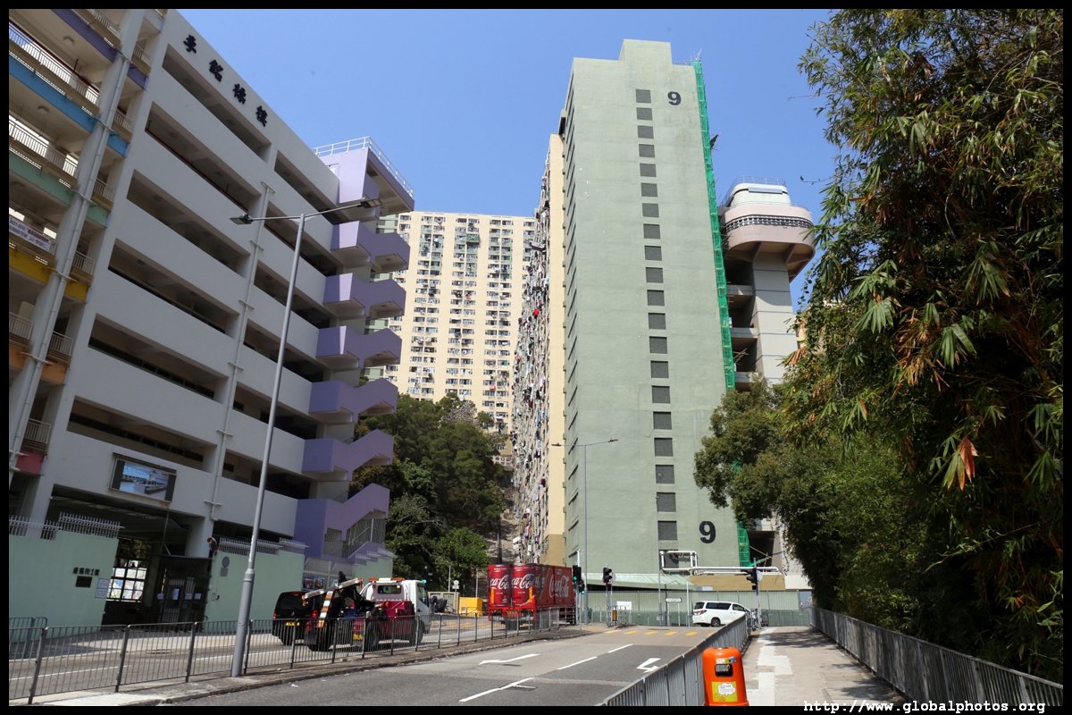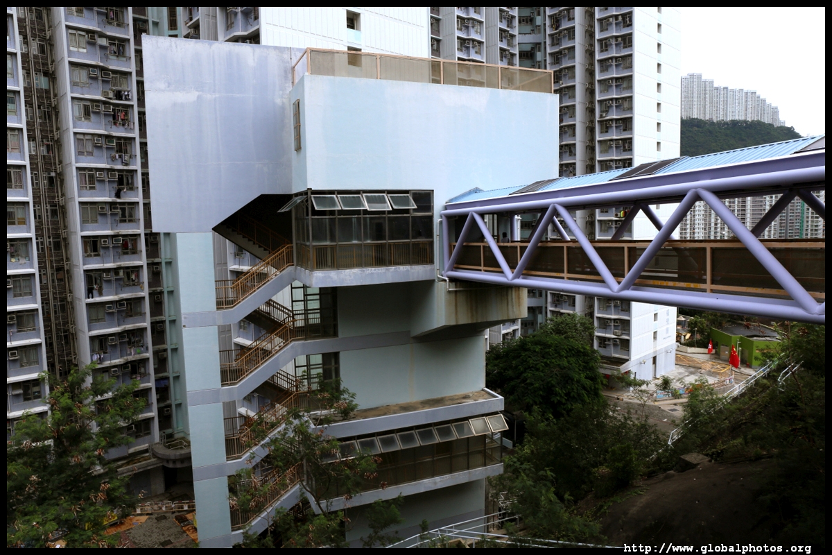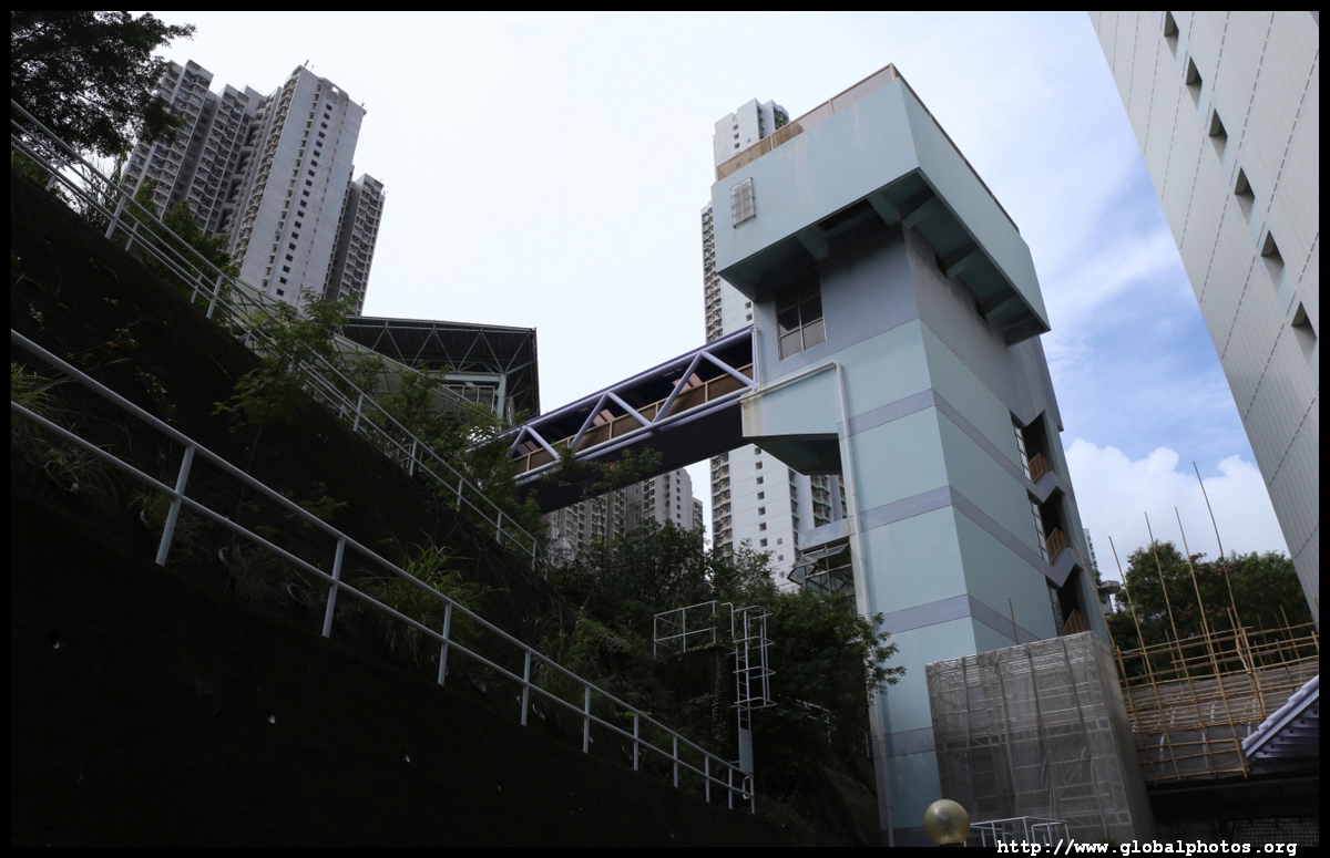 Parts of Kwai Shing East Estate are newer blocks, which are connected via elevators to its uphill counterparts.