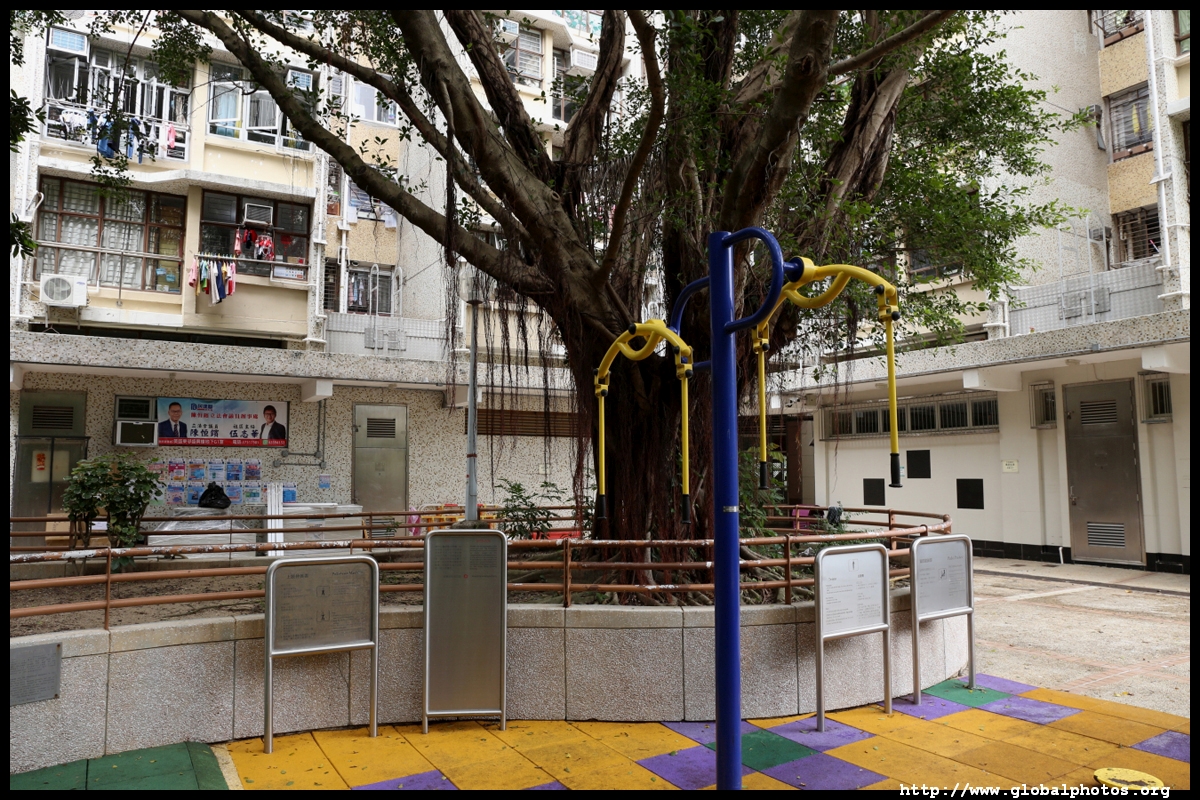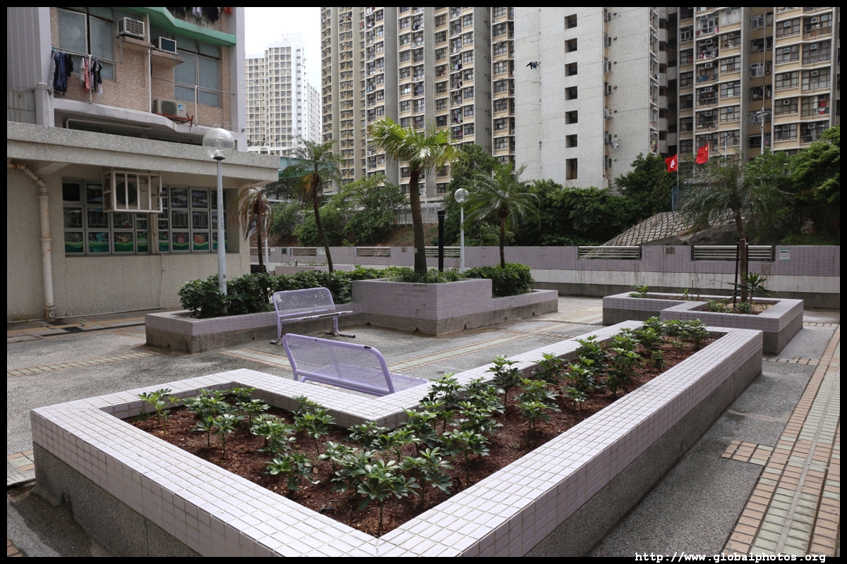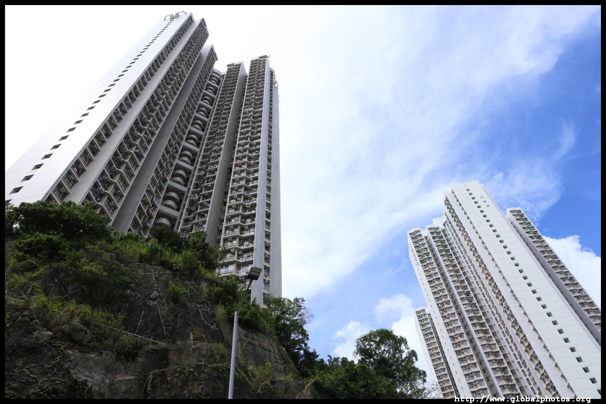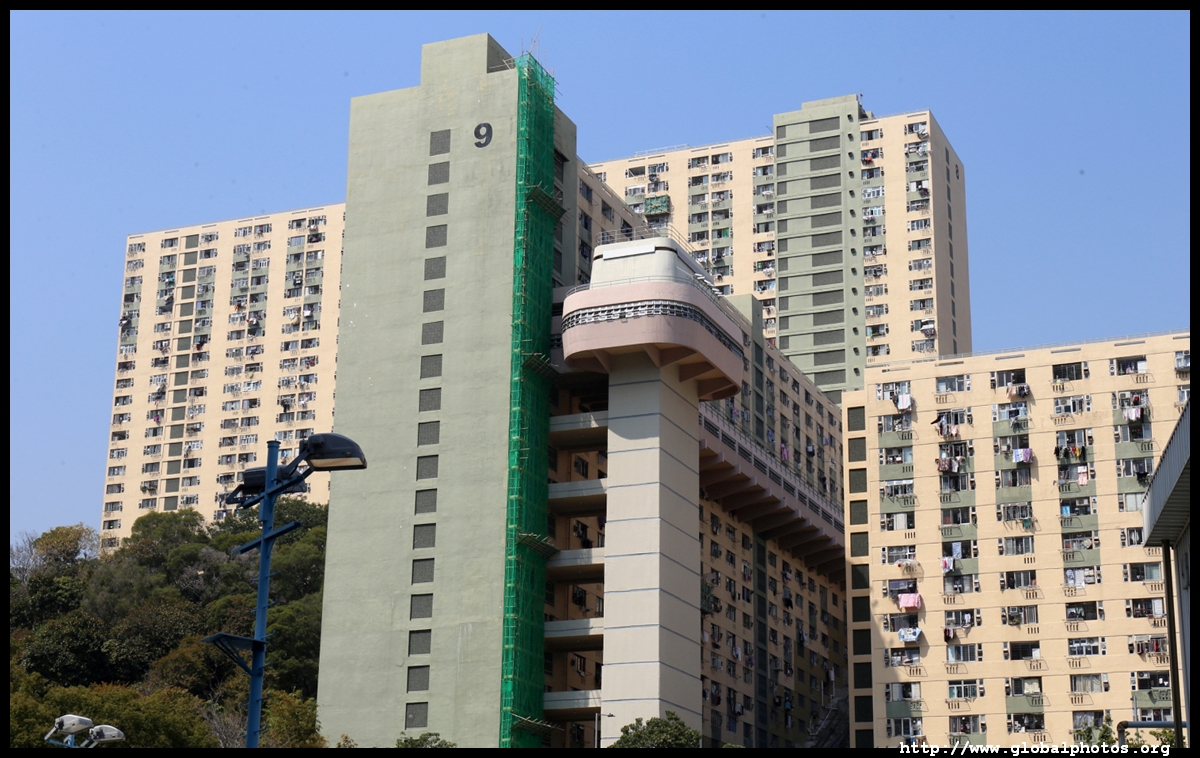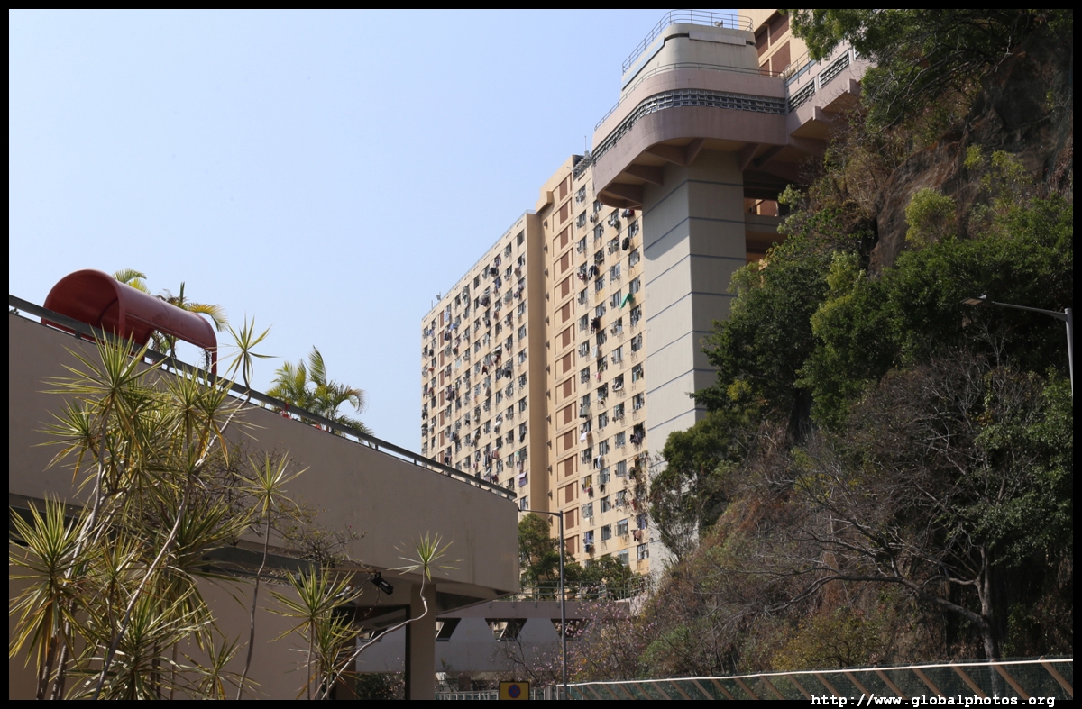 Parts of Kwai Shing East Estate are newer blocks, which are connected via elevators to its uphill counterparts.