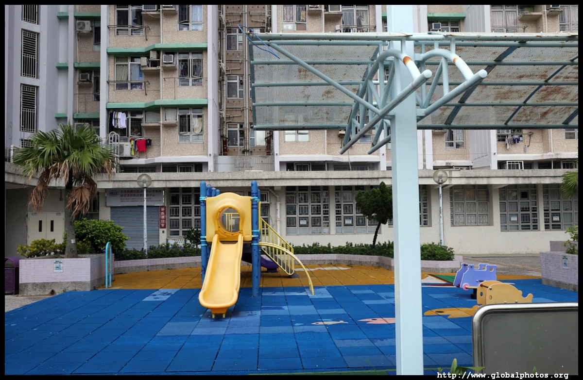 The podium level at Shing Keung and Shing Yat Houses sit on the roof of the mall structure with lots of public space and playground facilities.