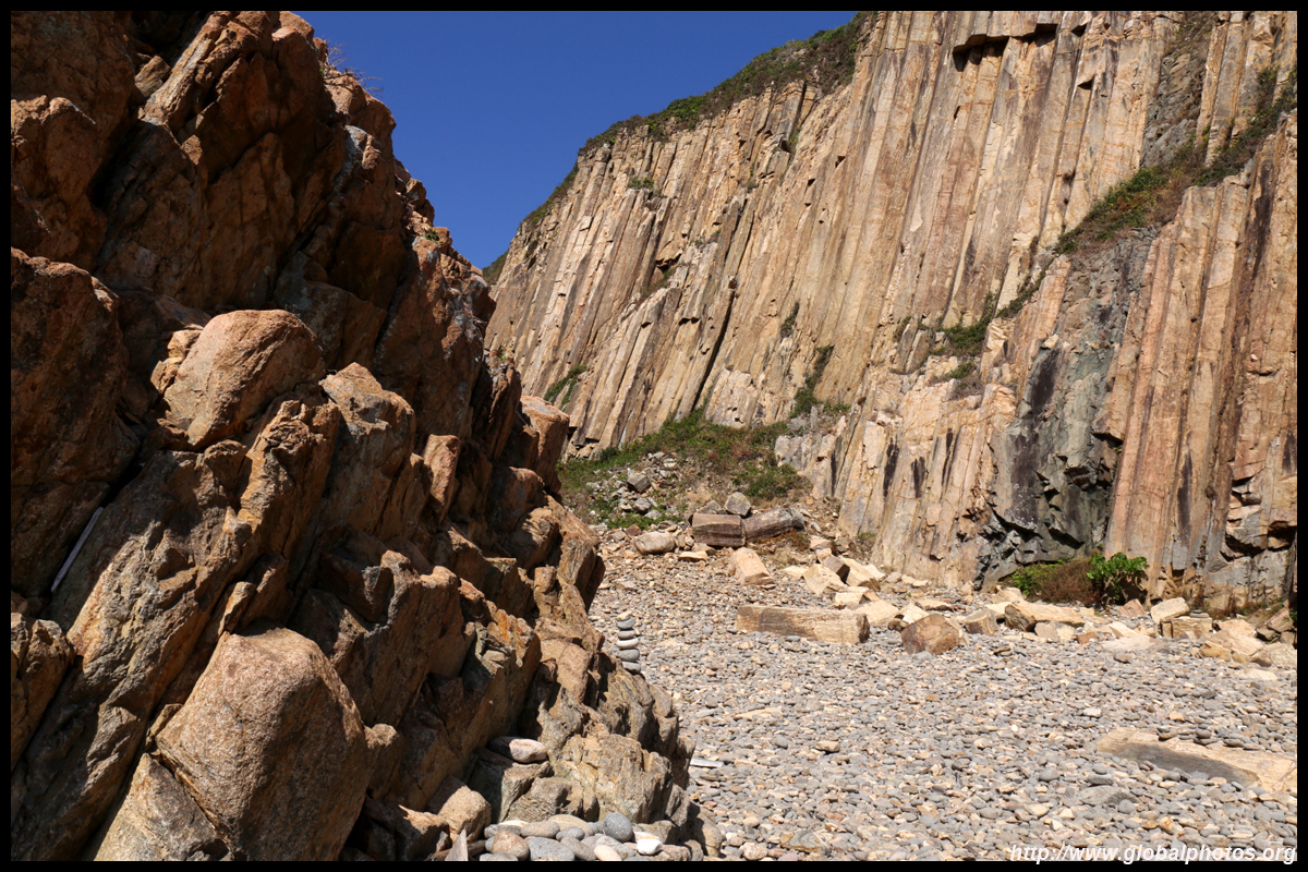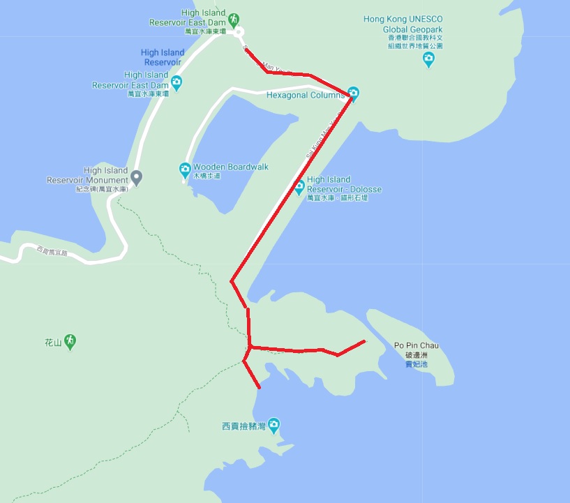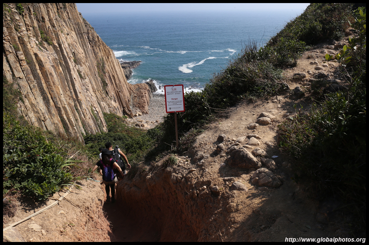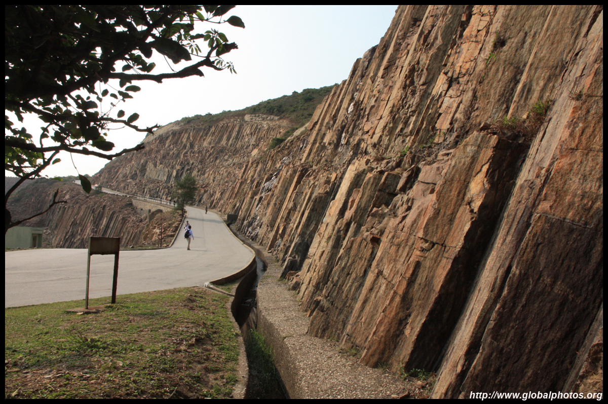 This section is part of the Hong Kong UNESCO Global Geopark that was created in 2015. 85% of Hong Kong's land was formed by volcanic eruptions, creating these spectacular settings that we enjoy today. While many come for the MacLehose Trail to Long Ke, don't forget to see some interesting hexagonal rock formations around the dam with some light hiking to a few offshoot sites that can easily take up a half day. Get off the taxi at the end of the dam, where there is a roundabout and public toilets. Walk downhill along the paved road to the sea barrier. You will see volcanic columns can reach as high as 30m tall that were formed 140 million years ago to your left.