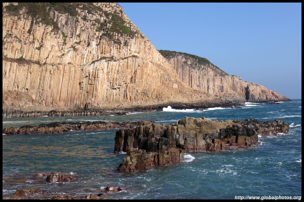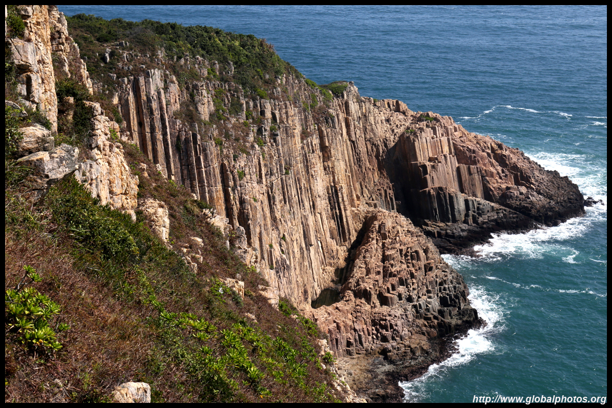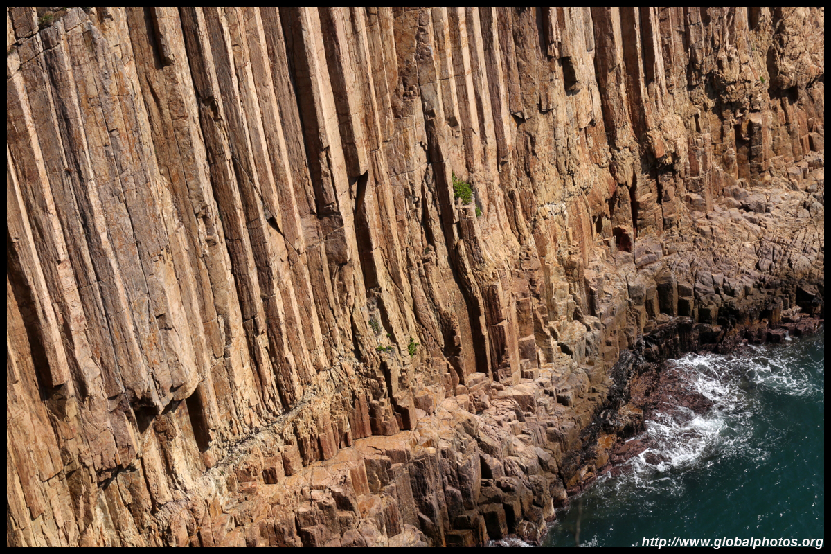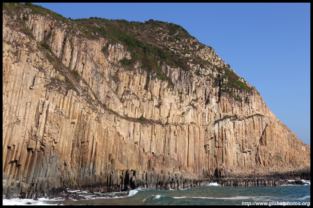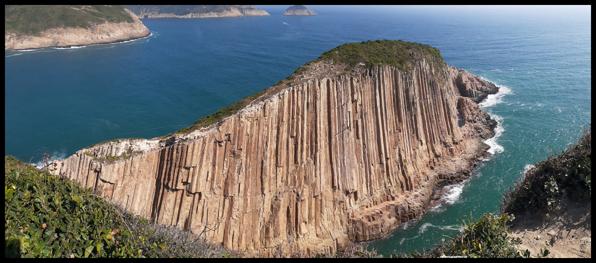 Po Pin Chau was once part of the mainland, but the sea's power separated it out and a giant pipe organ rockface emerged. The cut is almost vertical and is best seen from the mainland side.