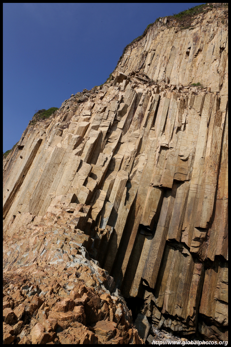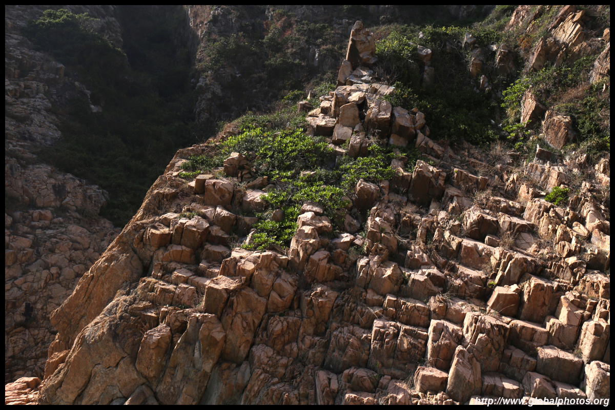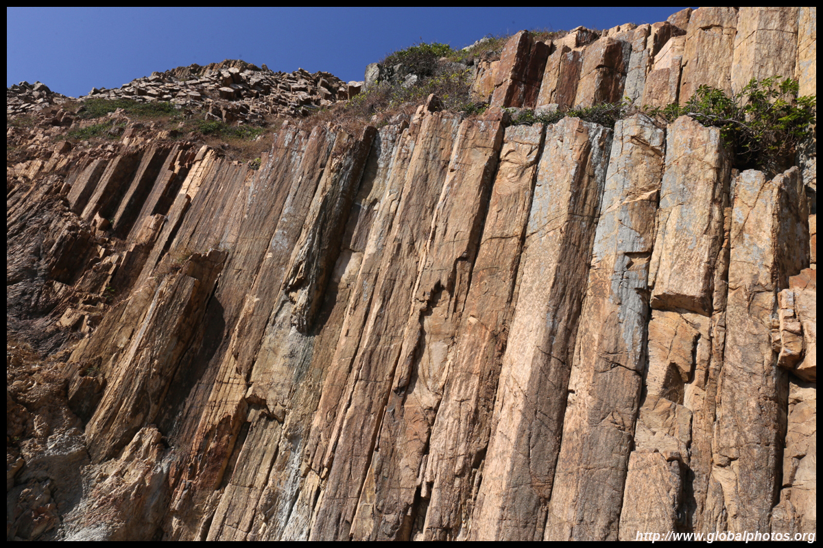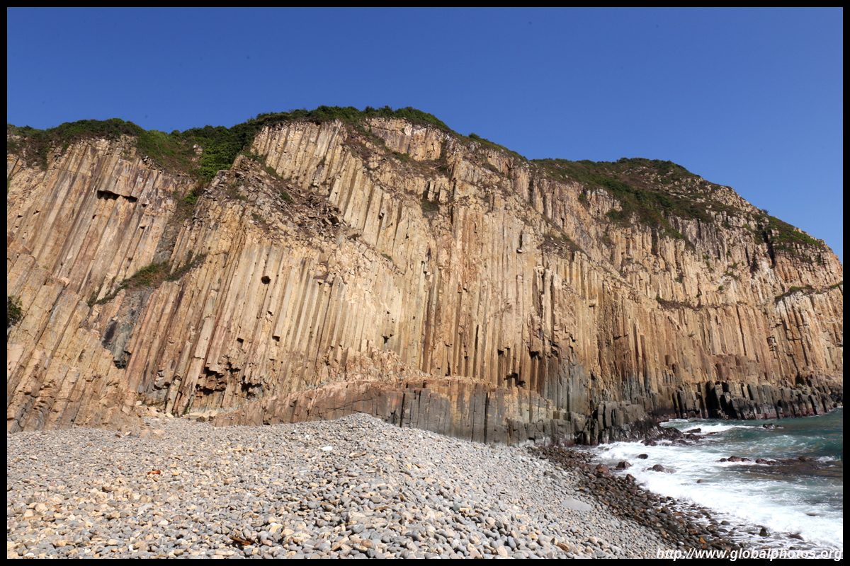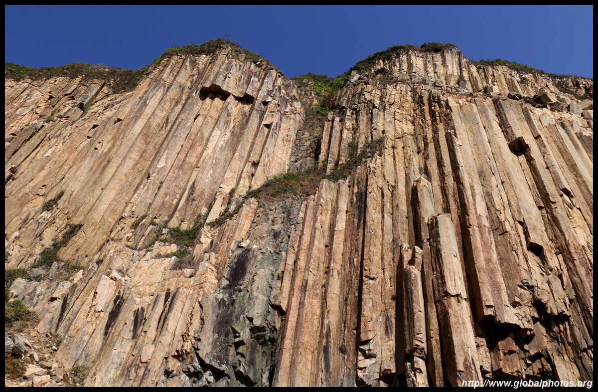Po Pin Chau was once part of the mainland, but the sea's power separated it out and a giant pipe organ rockface emerged. The cut is almost vertical and is best seen from the mainland side.