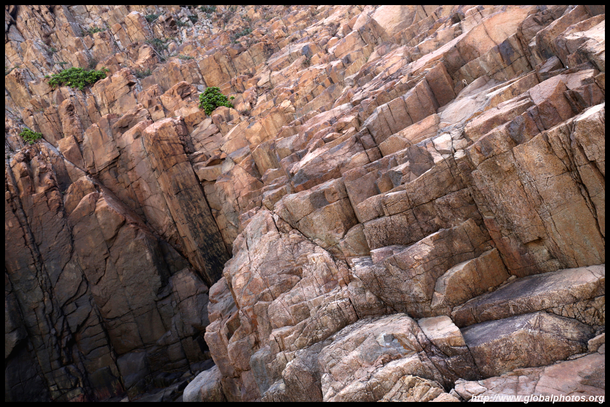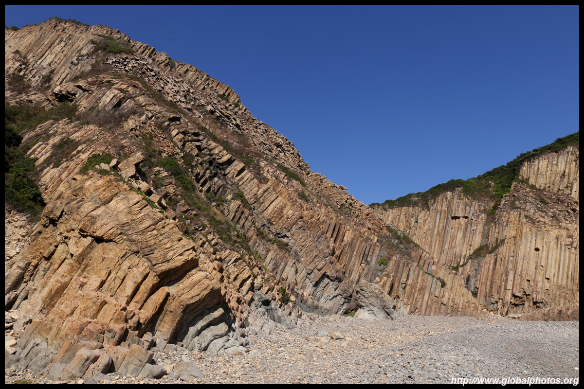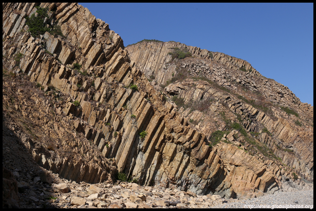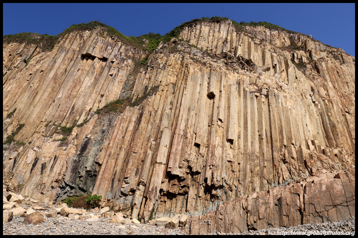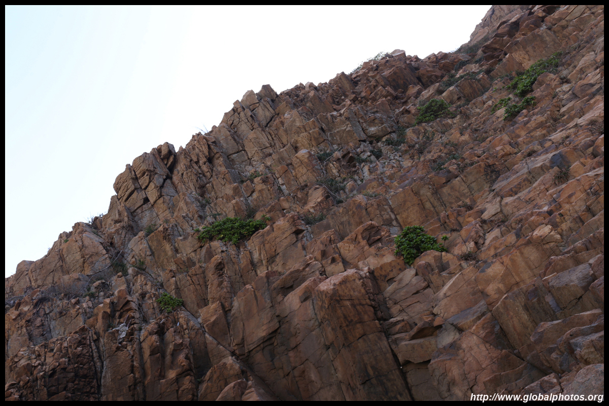 Po Pin Chau was once part of the mainland, but the sea's power separated it out and a giant pipe organ rockface emerged. The cut is almost vertical and is best seen from the mainland side.