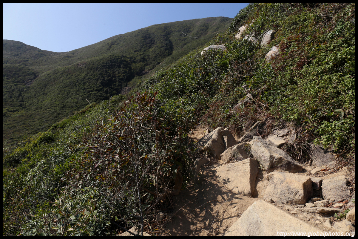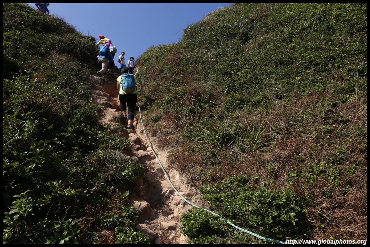 Heading back downhill a little, you will see a slippery path down to Kim Chu Wan, which is marked by a danger sign. There is a rope to manage the slide down, but only the start is difficult. Most of the descent is manageable but I suggest to wear gloves.