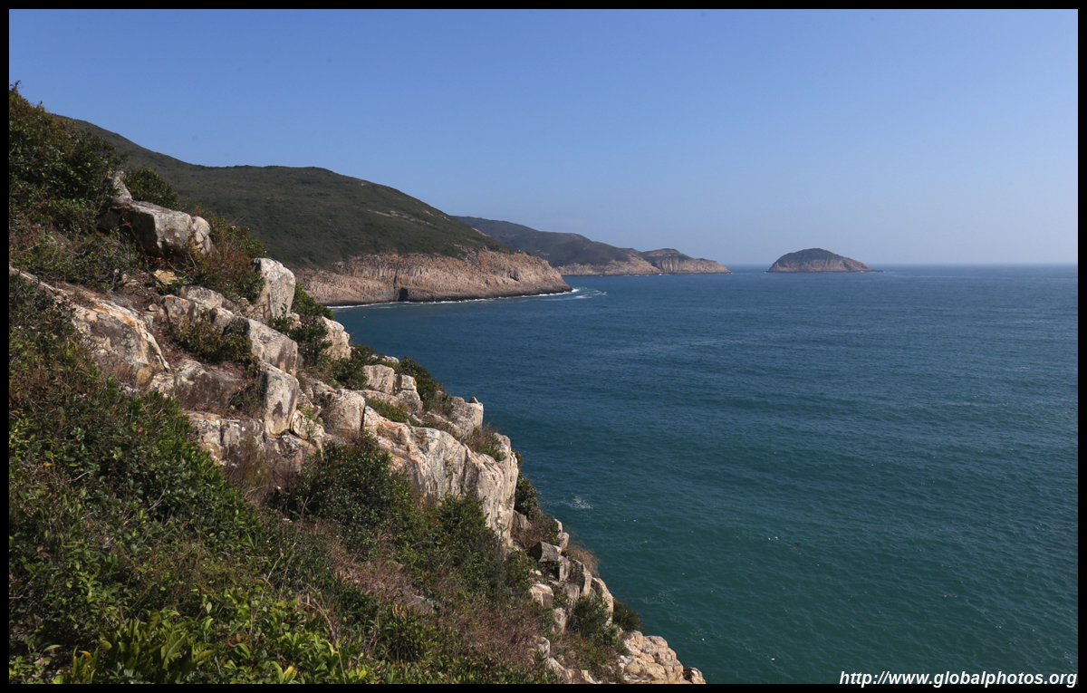 As you hike up to the cliff edge for a view of Po Pin Chau, you will see more interesting rocks to your right towards Kim Chu Wan.